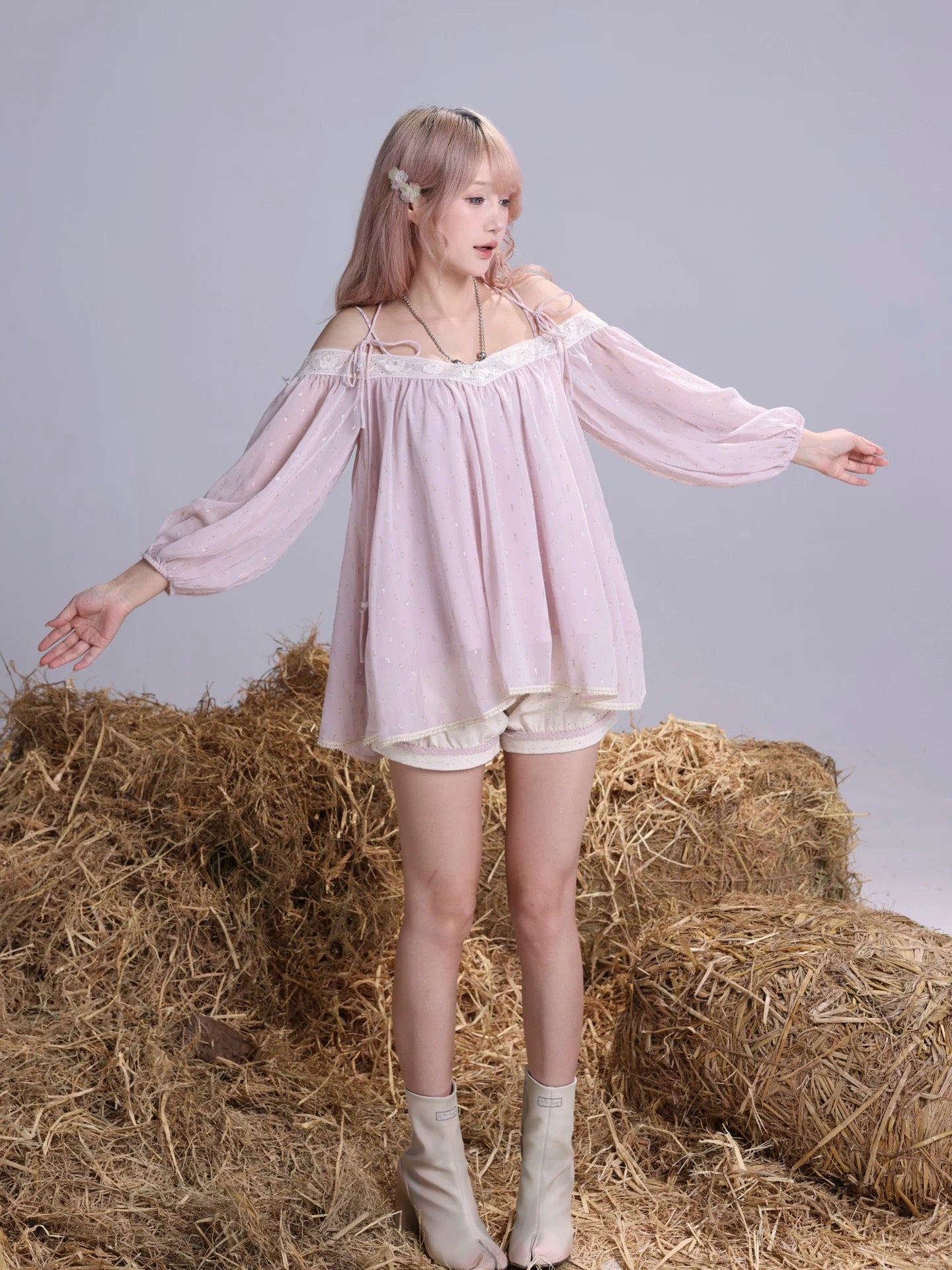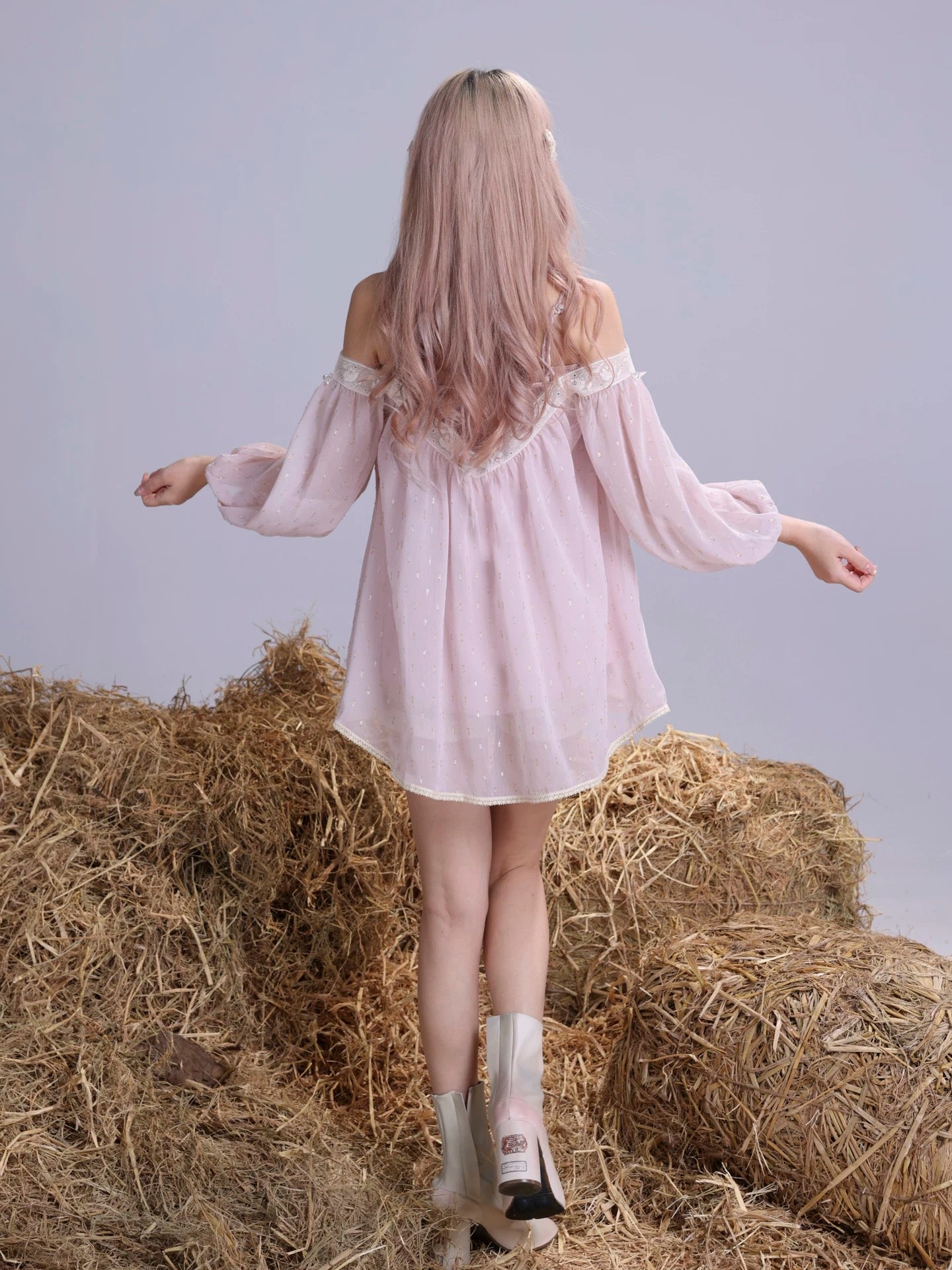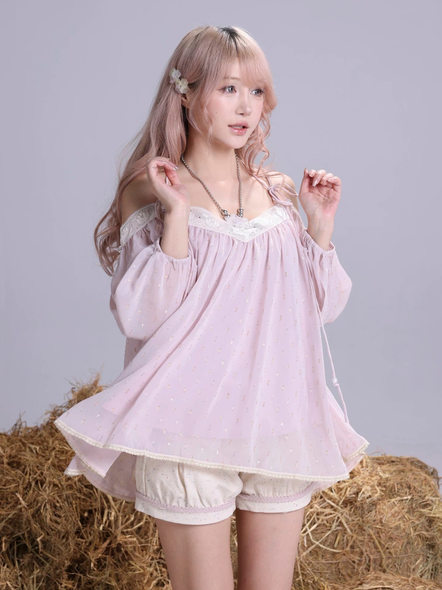Rose Island For Cassie Glitter Chiffon Babydoll Top