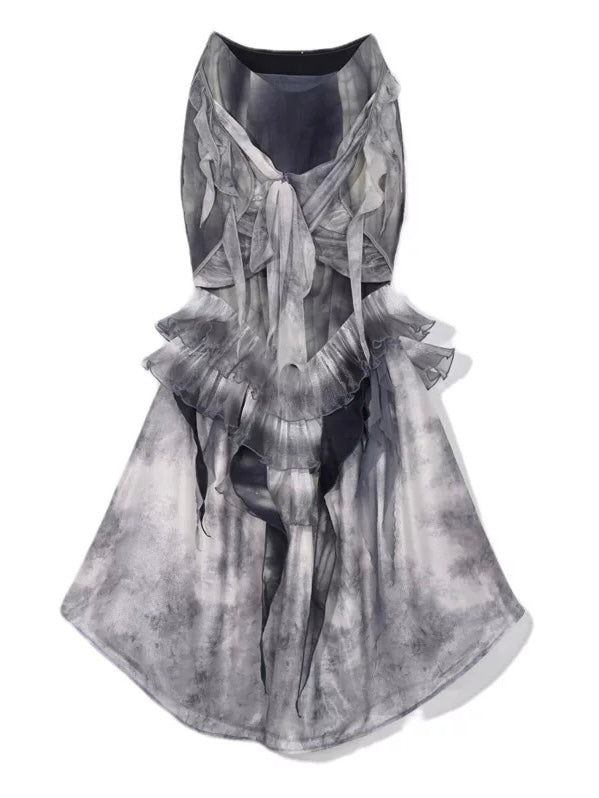 This ensemble embodies mystery and grace, like a Corpse Bride wandering through the night—beautiful, yet sorrowful.