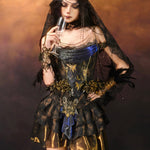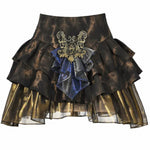 The three-tiered silhouette is both glamorous and playful, with built-in shorts for comfort and ease of wear. Every movement reflects the golden shimmer of twilight, making this skirt a statement of gothic luxury and timeless allure.
