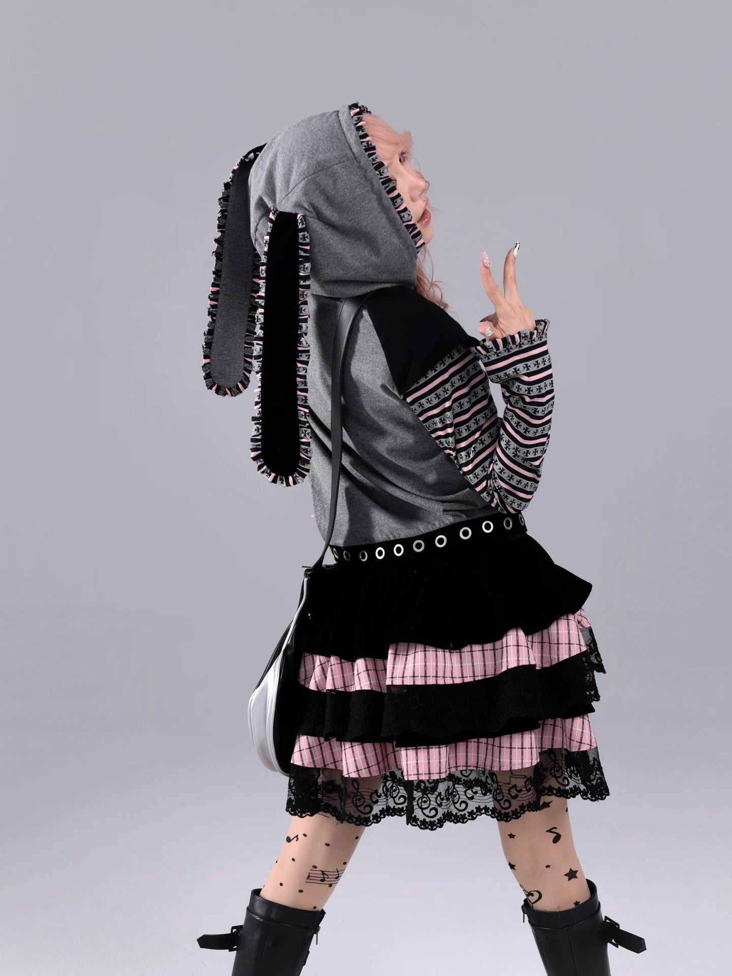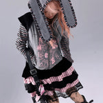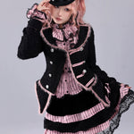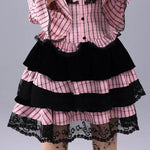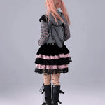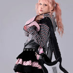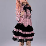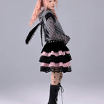 Evil Tooth – “Velvet Quartet Symphony Skirt” (Pink × Black Multi-Layer Edition