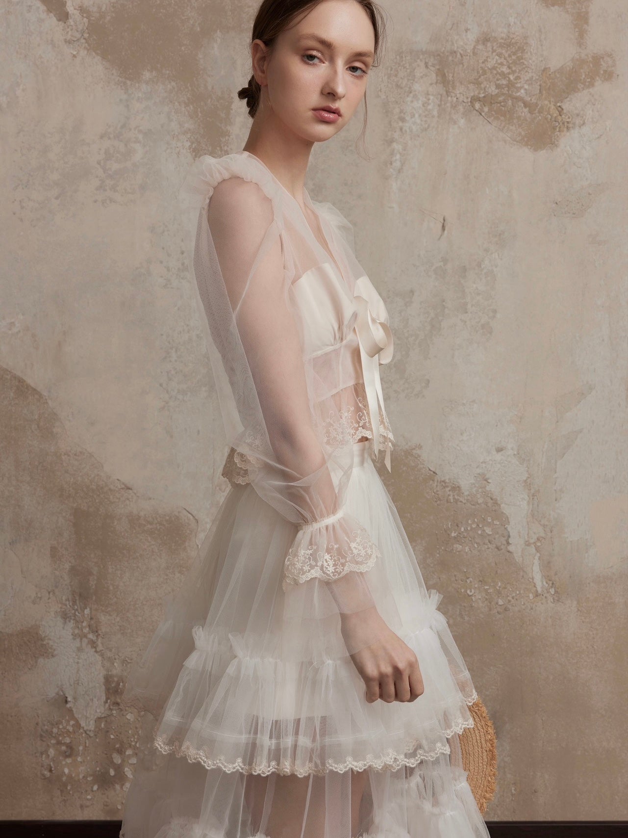 Crafted with exquisite lace and refined stitching, this skirt embodies timeless romance in the most delicate form. Whether under the soft glow of twilight or the radiance of the moon, it captures the beauty of fleeting moments, transforming French-inspired elegance into an everlasting art.