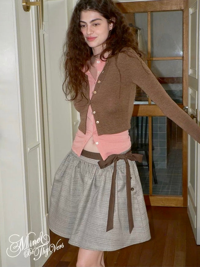 MineBeThyVers Murmure d’Amour plaid A-line midi skirt with ribbon