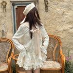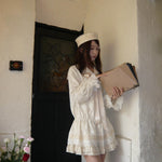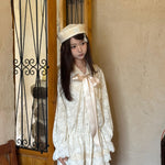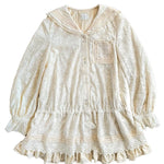 Soft as a memory, glowing like moonlight over quiet fields 🌙 The Moonlight in the Meadow dress is a dreamy vintage-inspired piece with delicate lace textures, a wide sailor collar, and fluttery layered cuffs. Crafted in a muted cream-yellow tone, it radiates a gentle warmth—like sun-faded flowers in a pressed letter from the past.