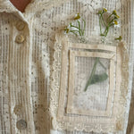 Details like the sheer framed pocket, natural shell buttons, and scalloped ruffle hem add timeless charm. The piece can be worn buttoned as a romantic dress or open as a lightweight coat, perfect for styling across seasons.