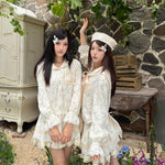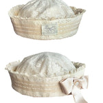 Complete the look with the matching sailor lace hat, crafted from the same soft floral lace and cotton blend, adorned with a classic grosgrain ribbon bow and pearl button. The hat adds a gentle, nostalgic touch to the overall outfit—like a postcard from a seaside village.
