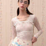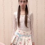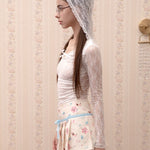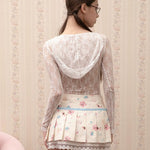 This dreamy outfit is made for soft mornings and vintage hearts. The delicate lace hoodie top is light as a whisper, featuring ribbon bow accents and a romantic hood that gives a fairytale touch. Paired with a pleated cream skirt decorated with nostalgic pastel animals and tiny flowers, this look is straight out of a dollhouse.