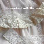 Step into a storybook summer with Souffle de Rêve — a doll core daydream stitched in layers of delicate lace and soft, moonlit chiffon. Inspired by antique heirloom dresses and handcrafted with couture-level detail, this dress is a celebration of timeless femininity and quiet elegance.