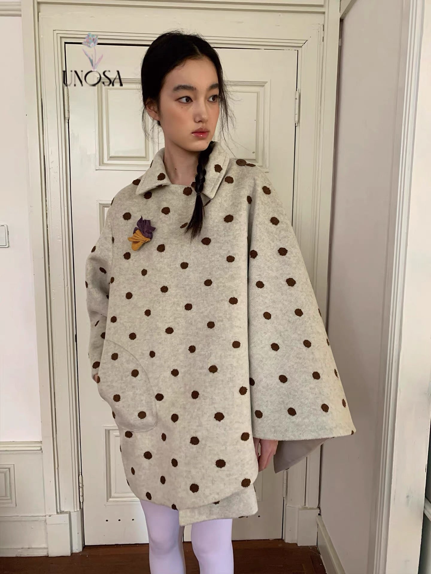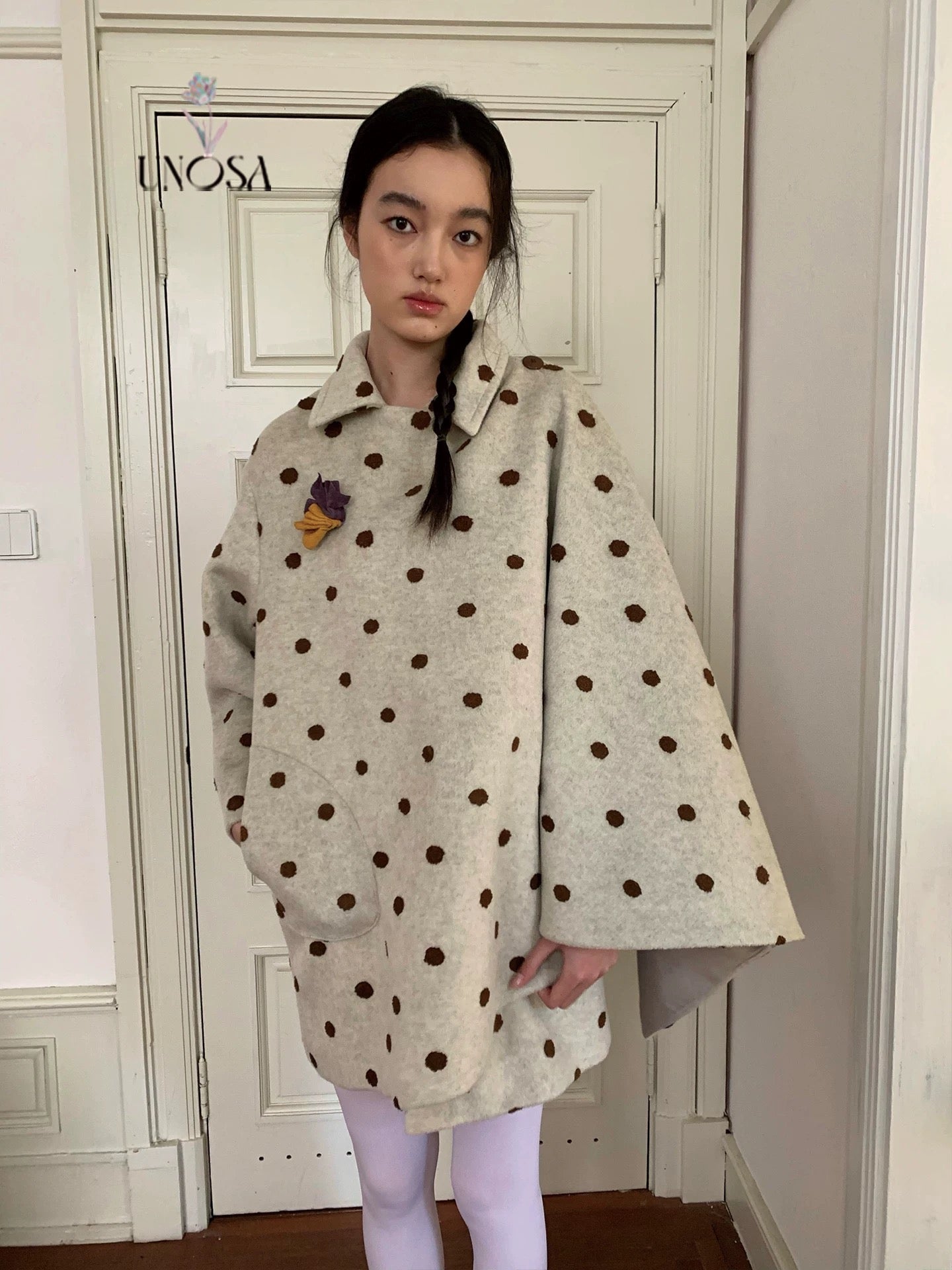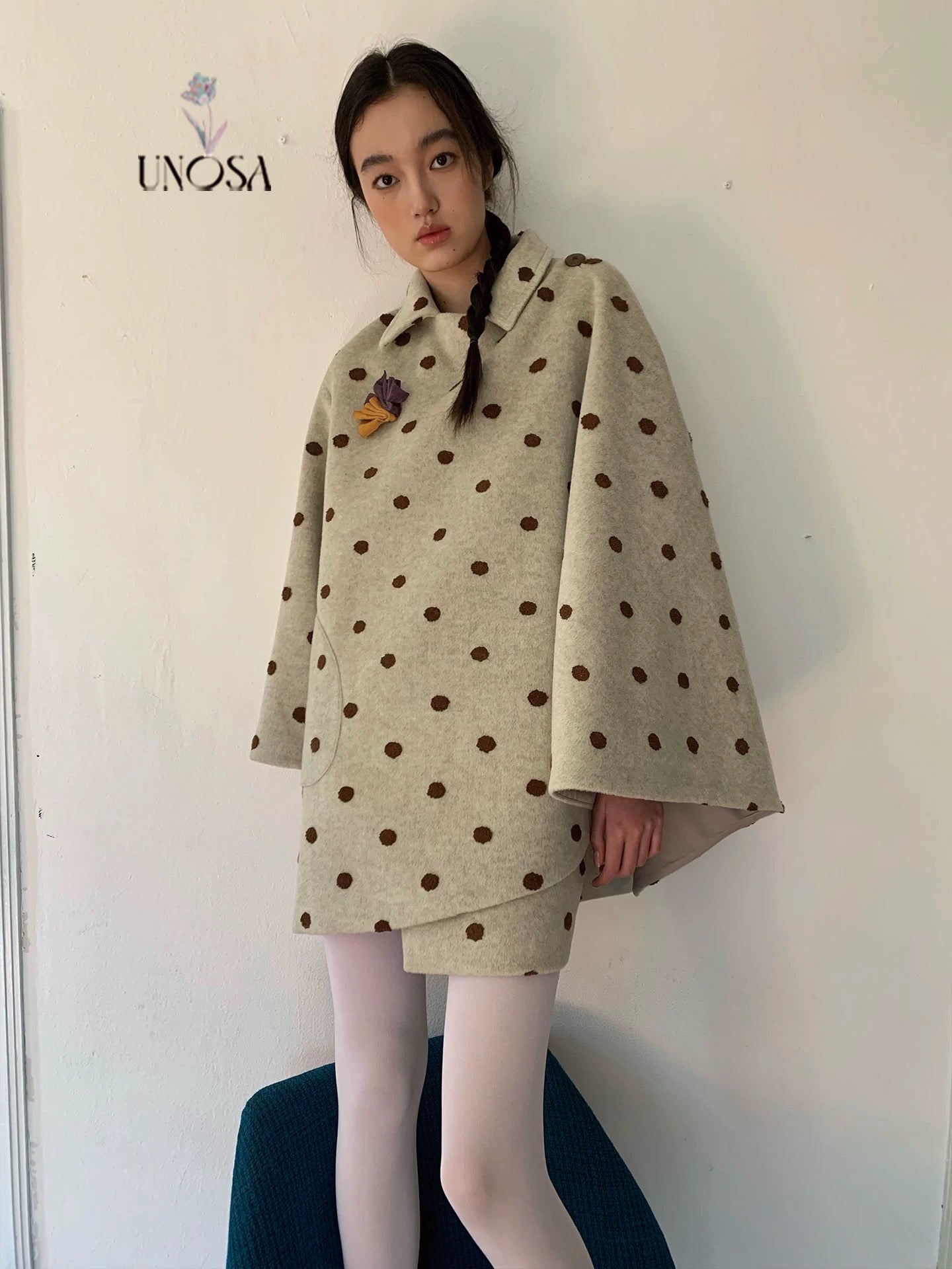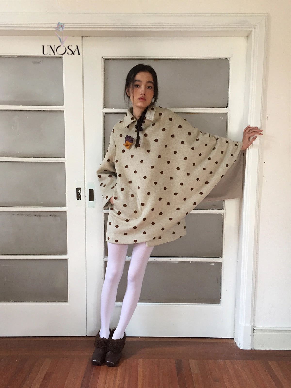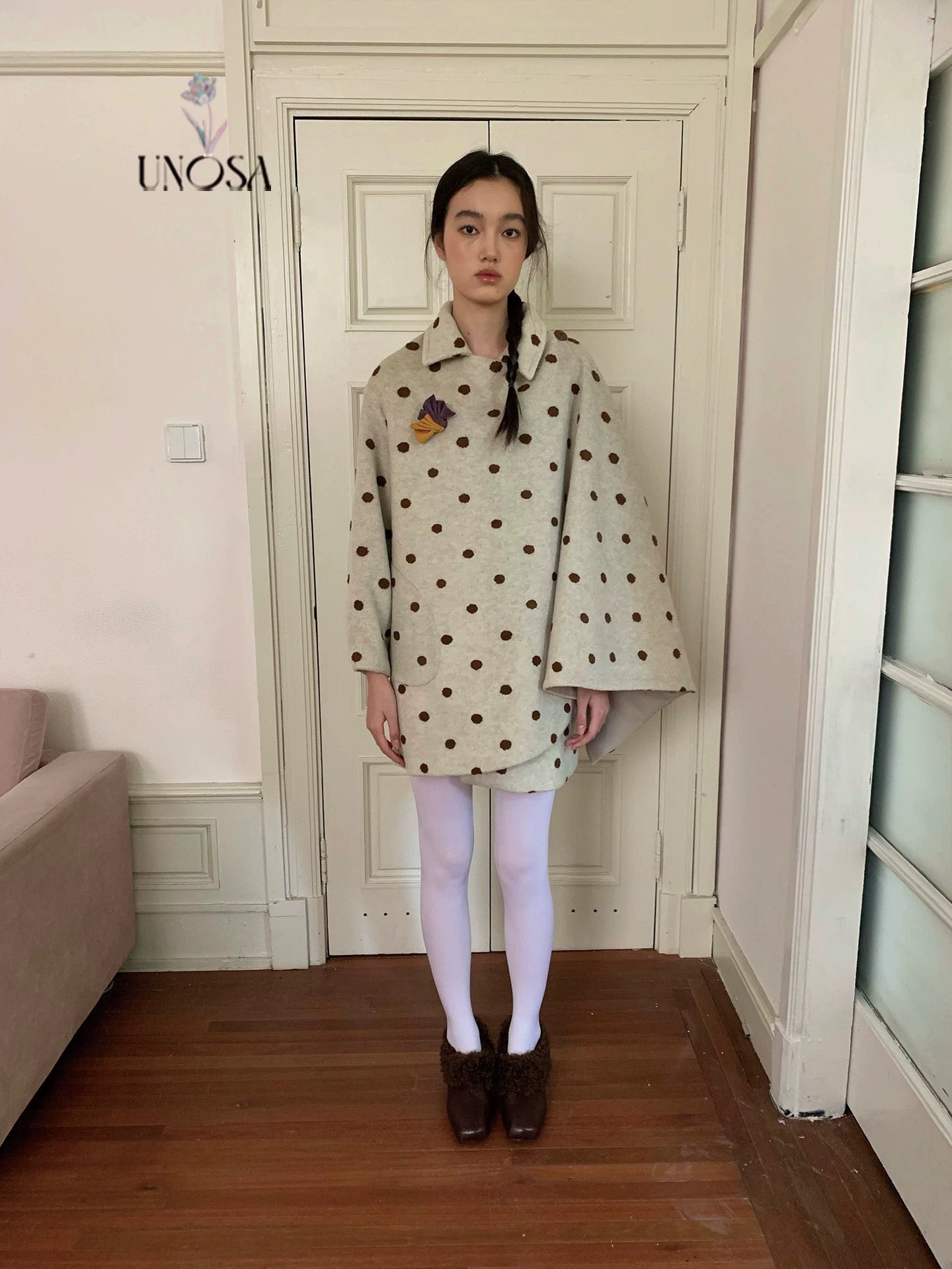 [15% Off Pre-order] UNOSA Boba Tea Polka DotWool Blended Cape
