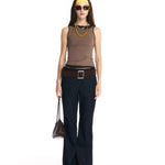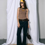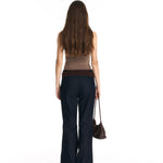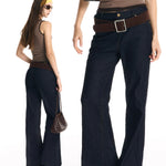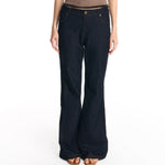 These deep navy denim pants feature a dramatic flare and a slouchy low-rise fit that screams effortless attitude. Styled best with chunky belts, mesh layers, and bold accessories for that 地雷系 or e-girl aesthetic.