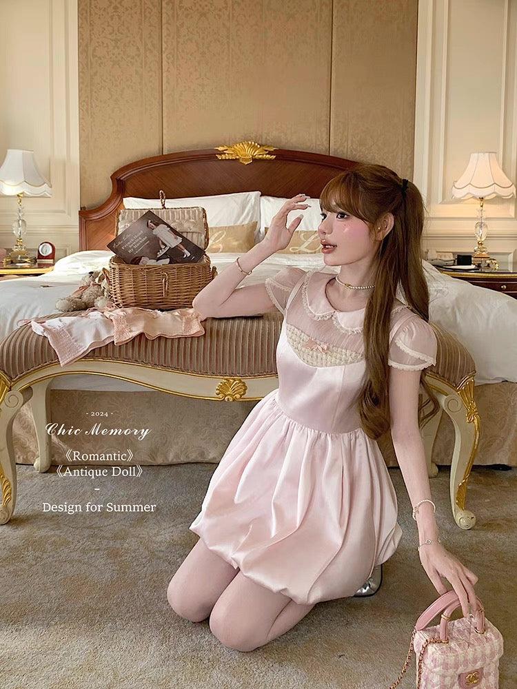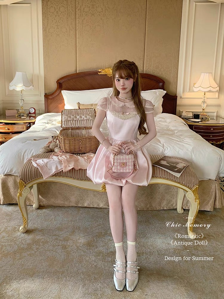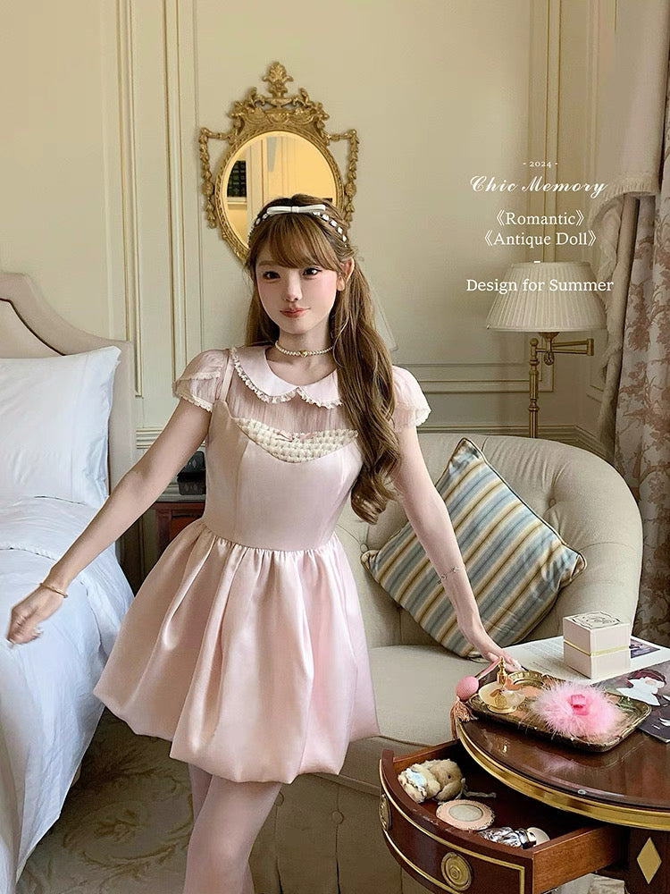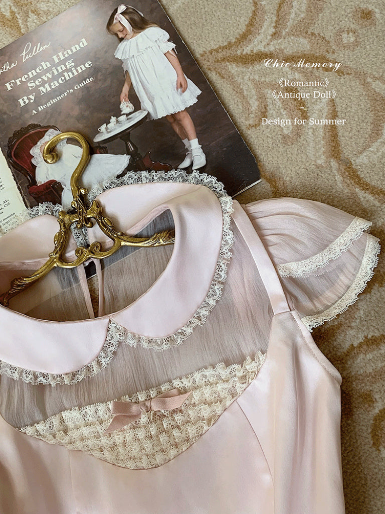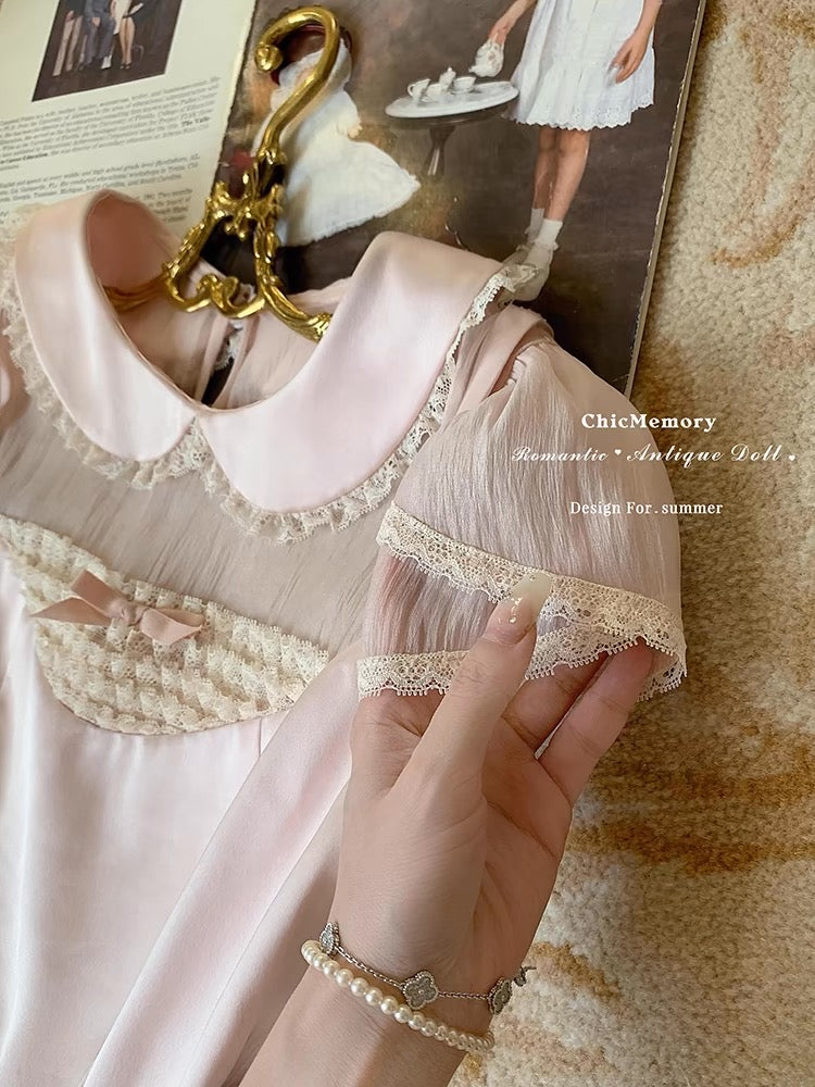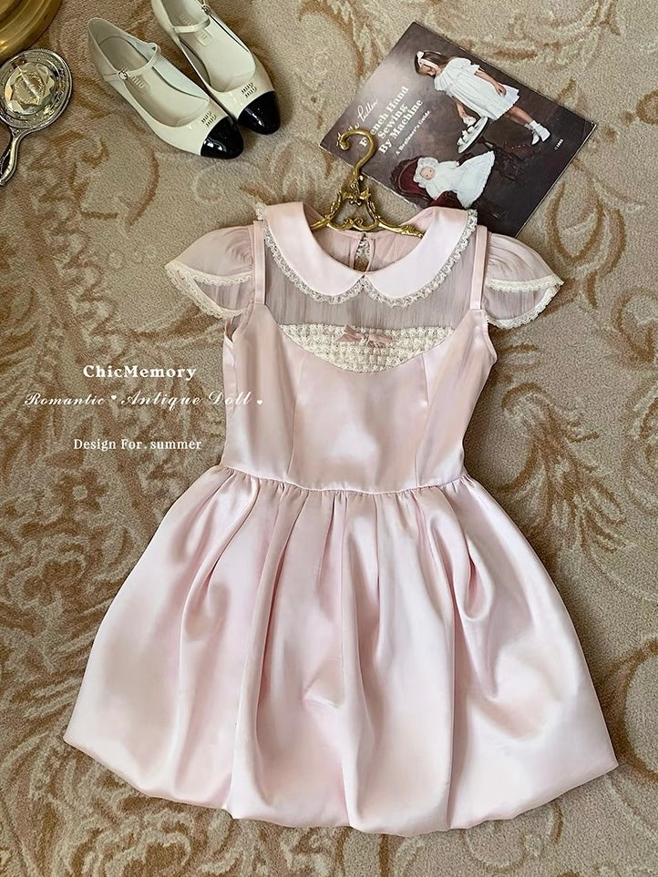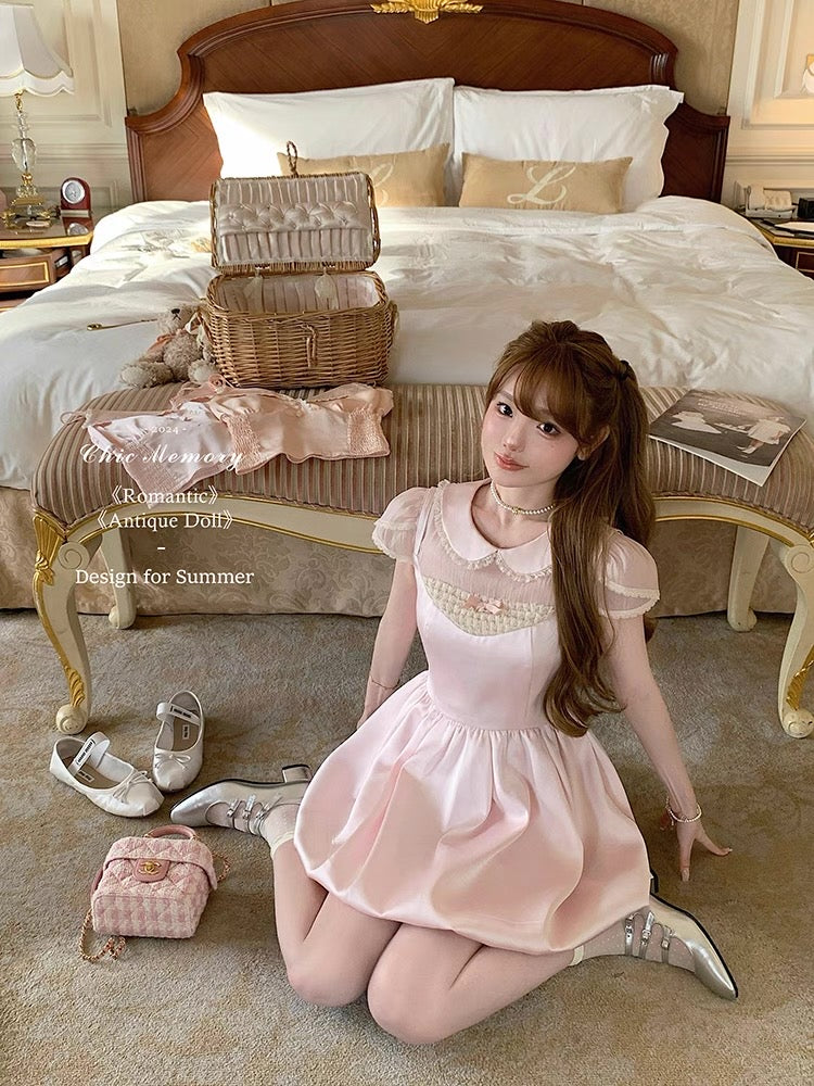 This vintage-inspired baby doll dress is a delicate balance of elegance and cuteness, embodying the charm of coquette core with a soft pastel pink hue. Inspired by classical tea party dresses, it captures the refined grace of Victorian romance while feeling light and effortless.