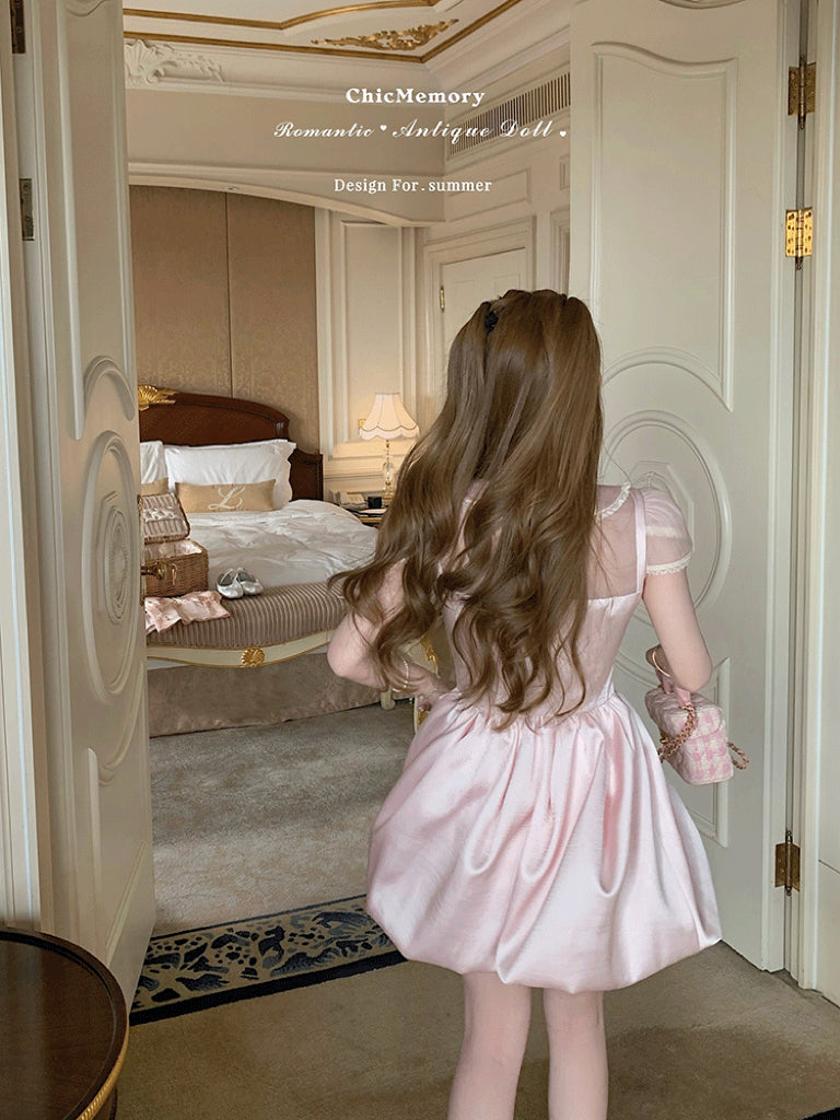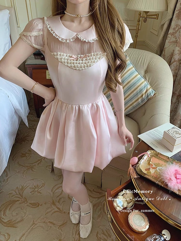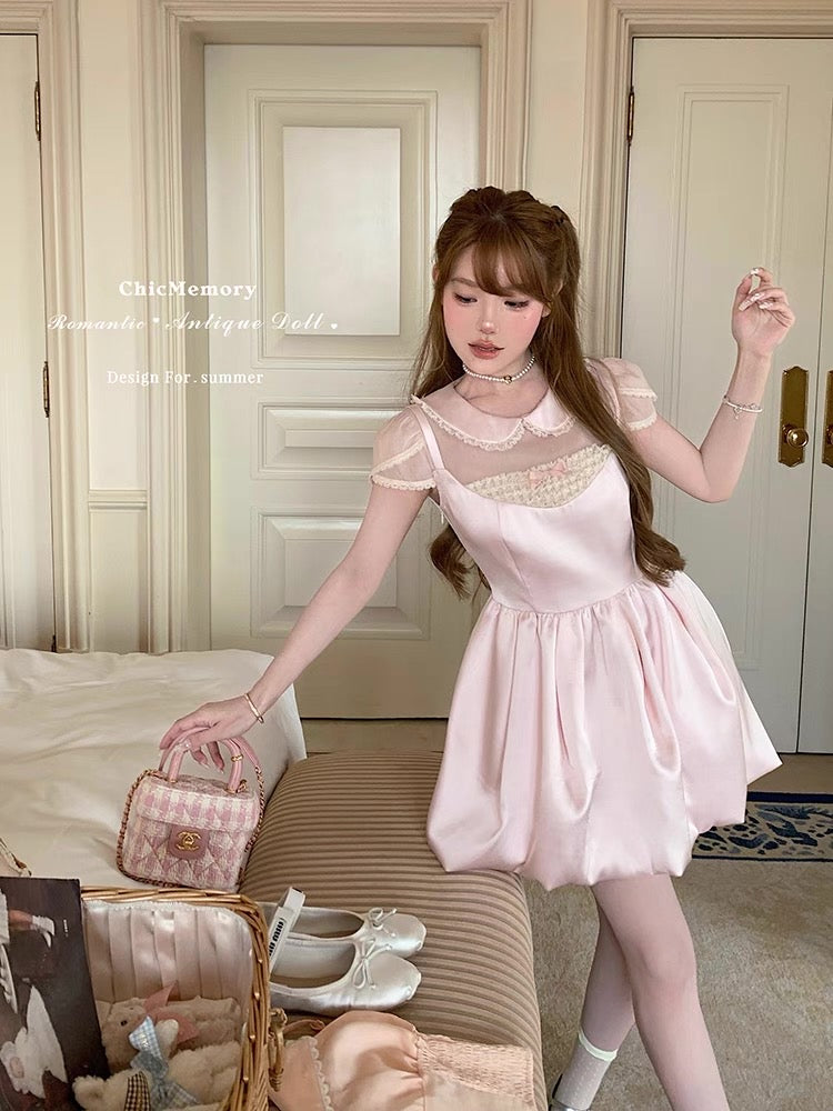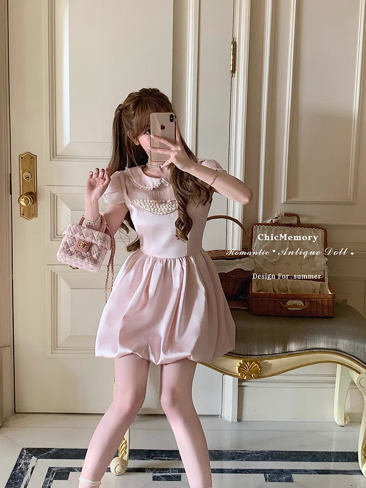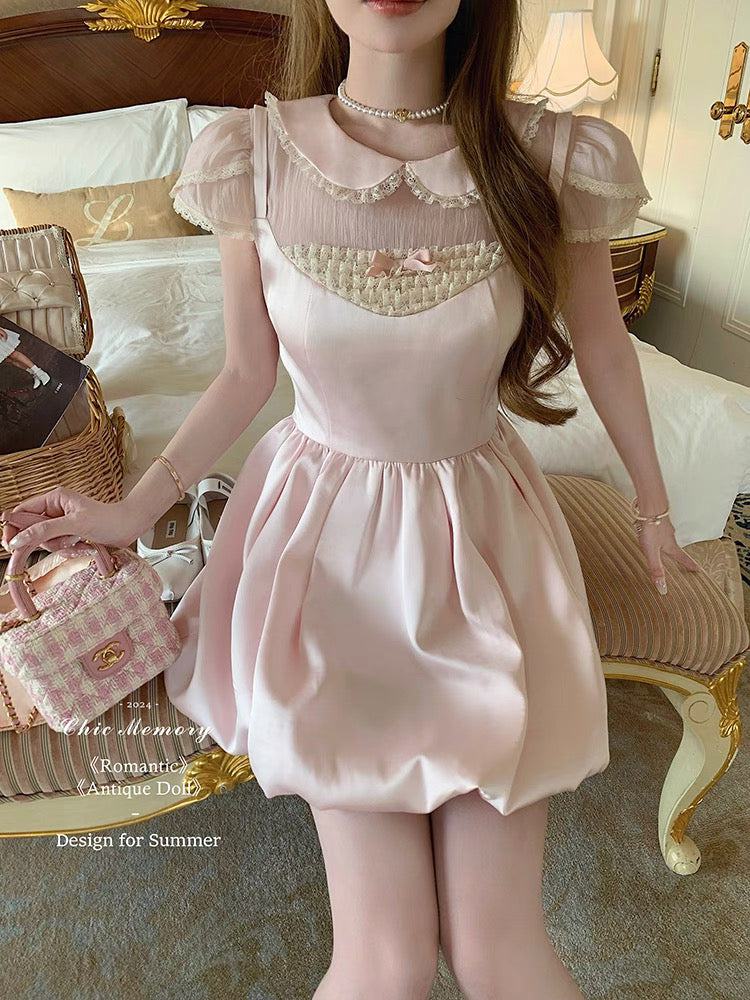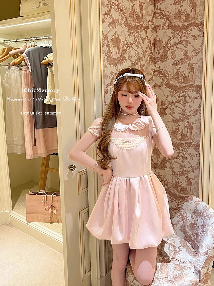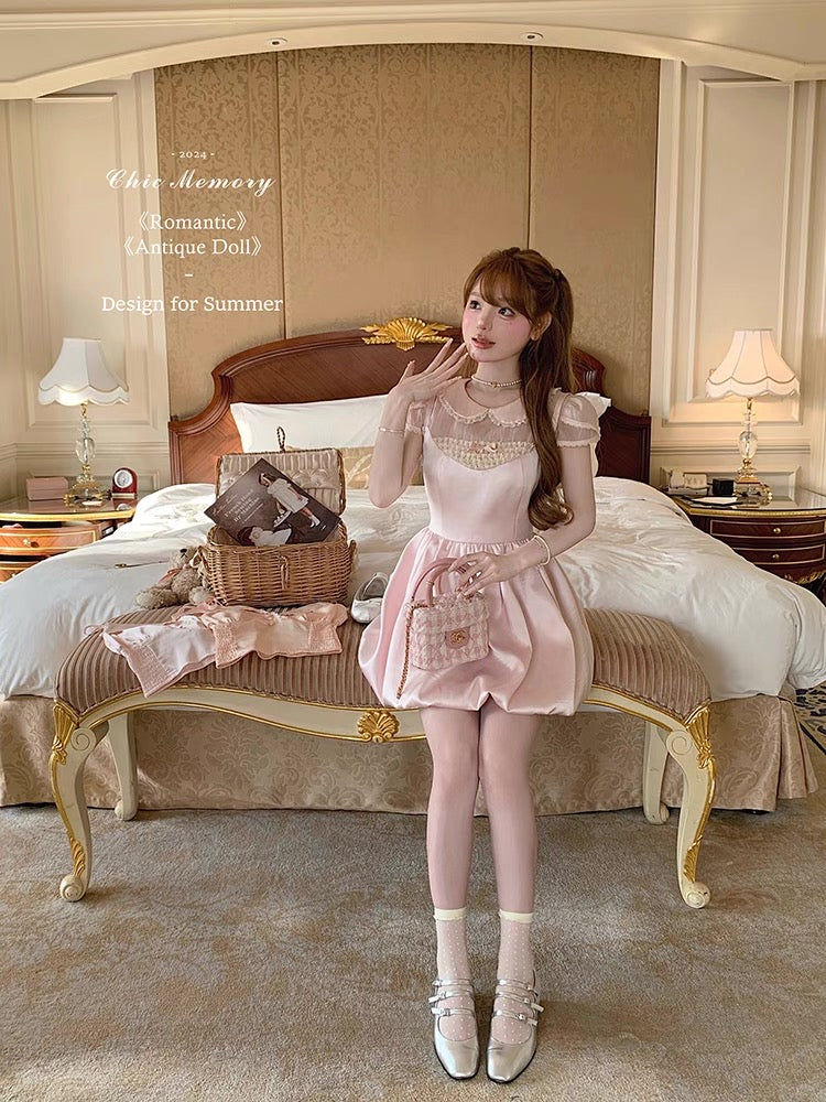 This vintage-inspired baby doll dress is a delicate balance of elegance and cuteness, embodying the charm of coquette core with a soft pastel pink hue. Inspired by classical tea party dresses, it captures the refined grace of Victorian romance while feeling light and effortless.