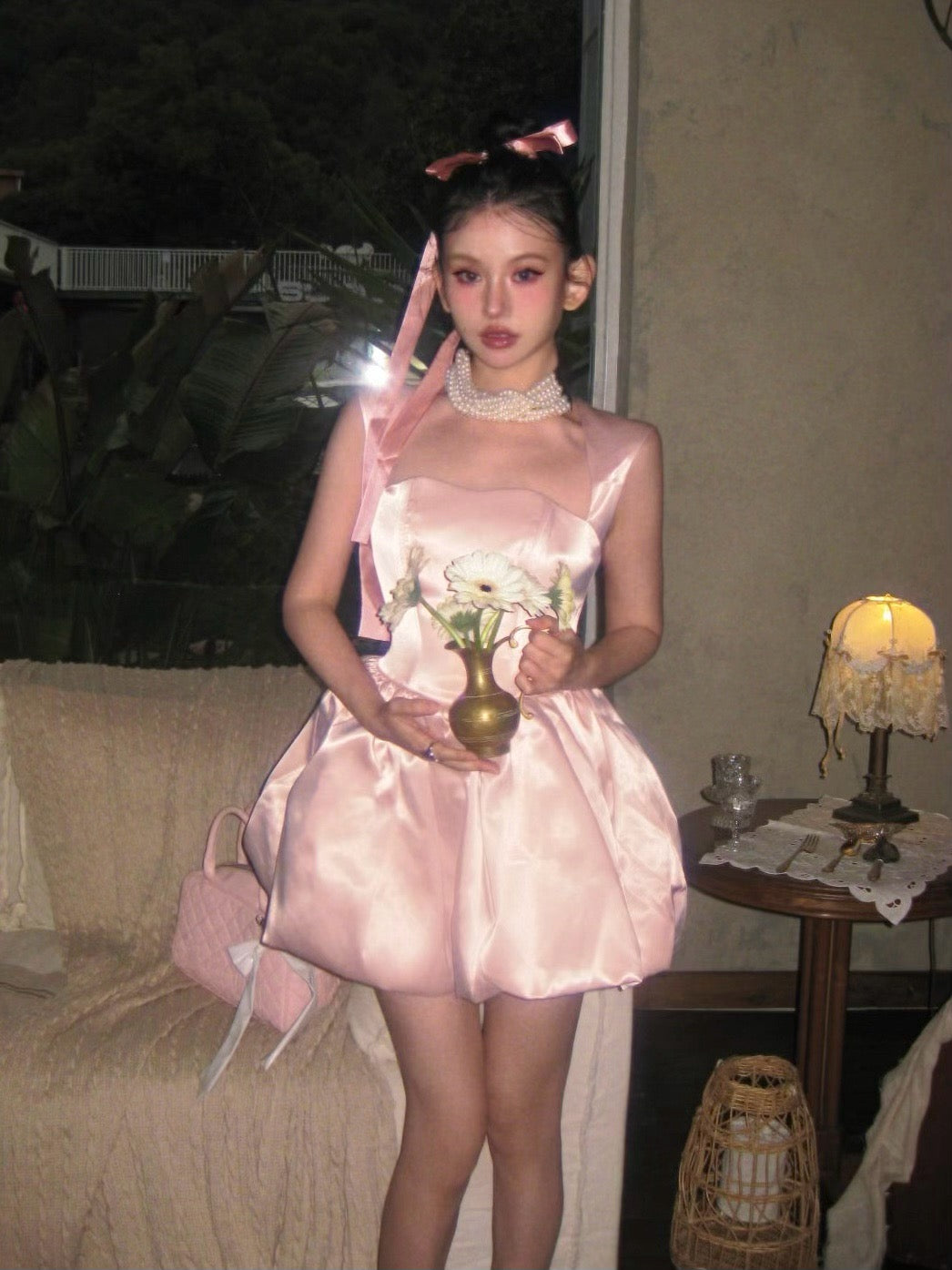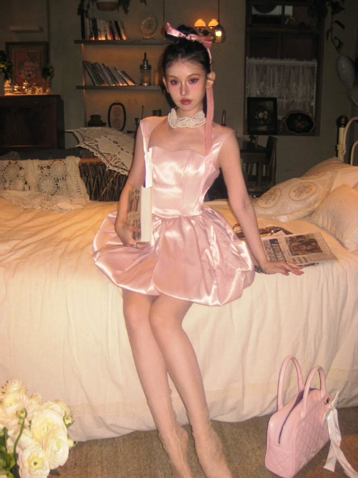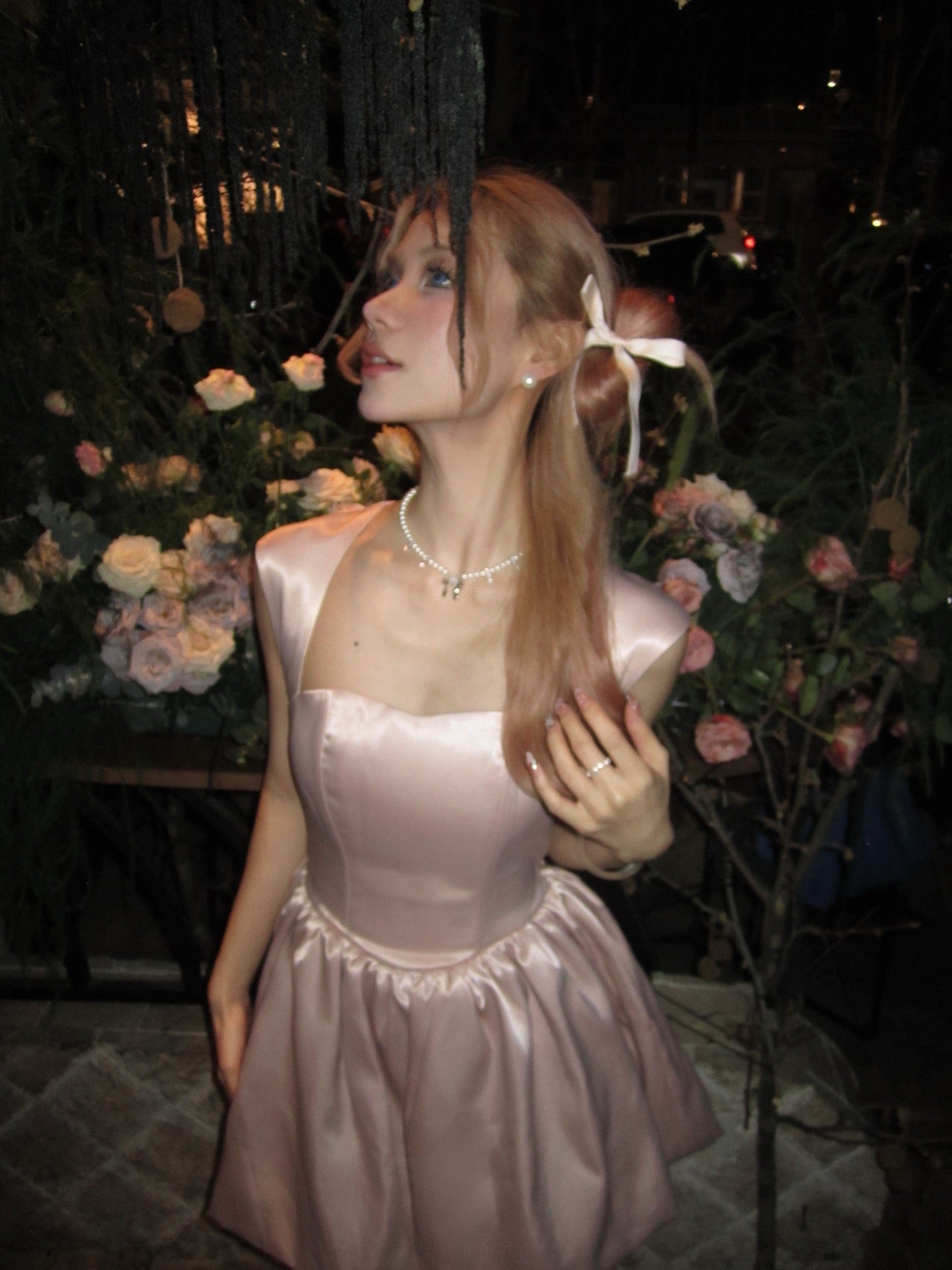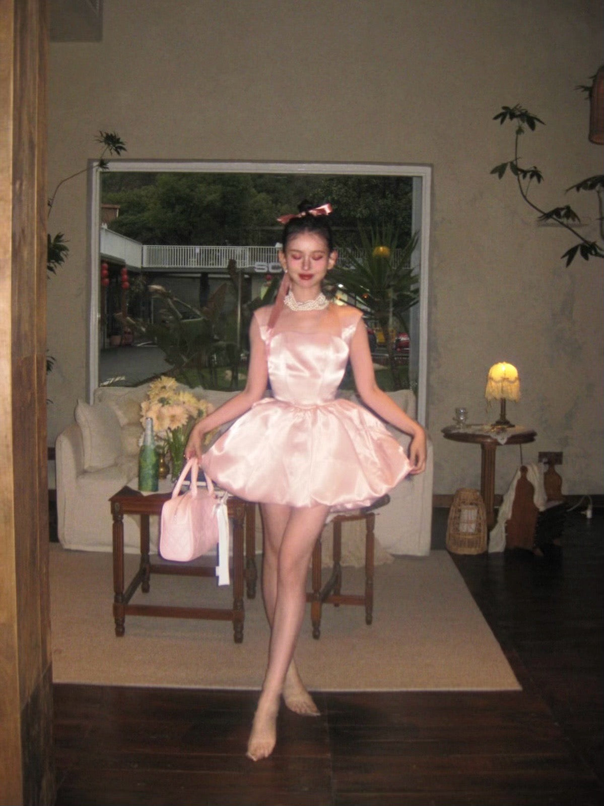 A dreamy, fairytale-inspired dress that flows like a delicate melody, reminiscent of an enchanted ballet performance. Featuring soft layers of shimmering tulle, elegant lace trims, and a romantic ribbon tie, this dress is perfect for those who love a touch of magic in their wardrobe.