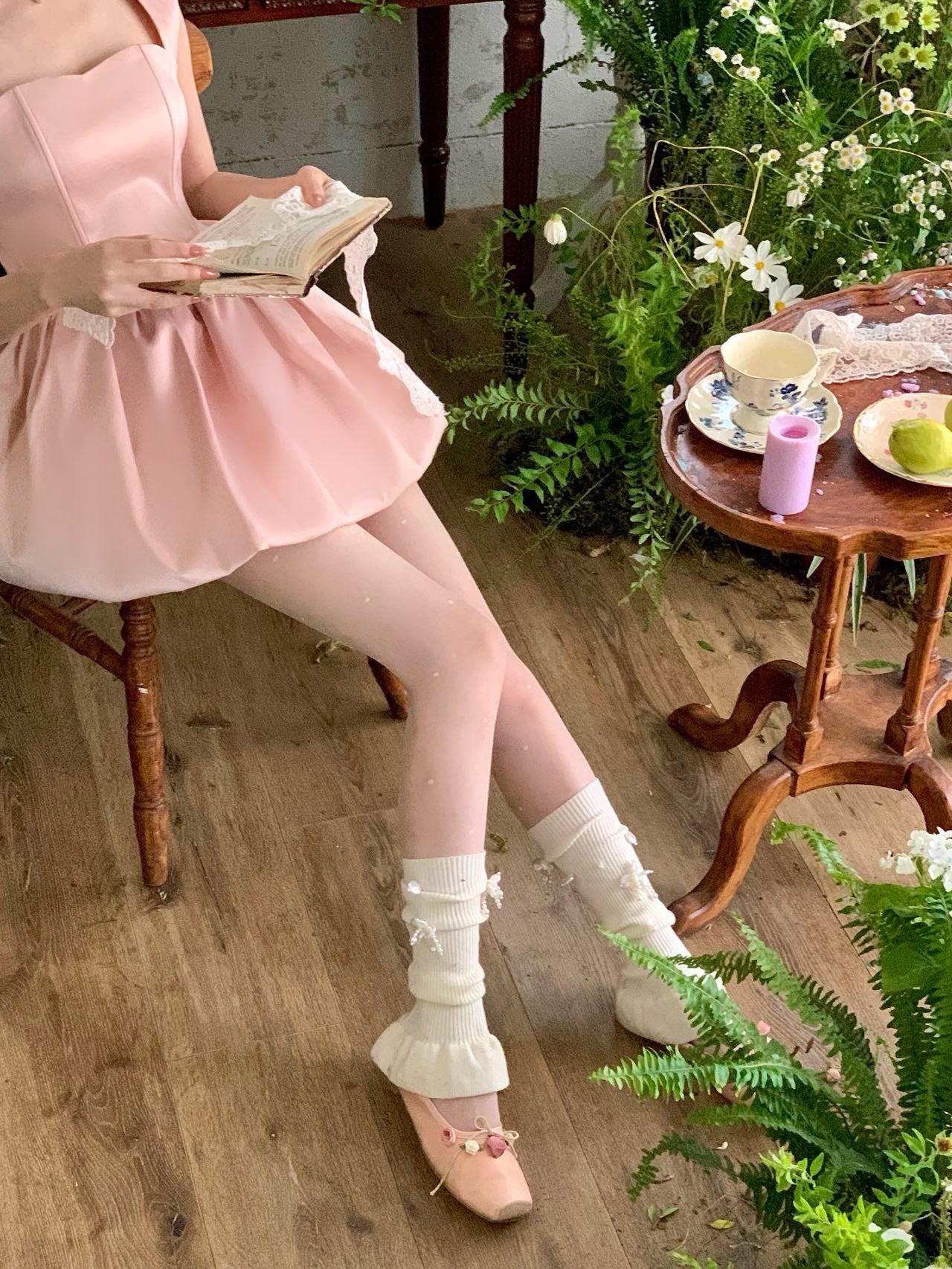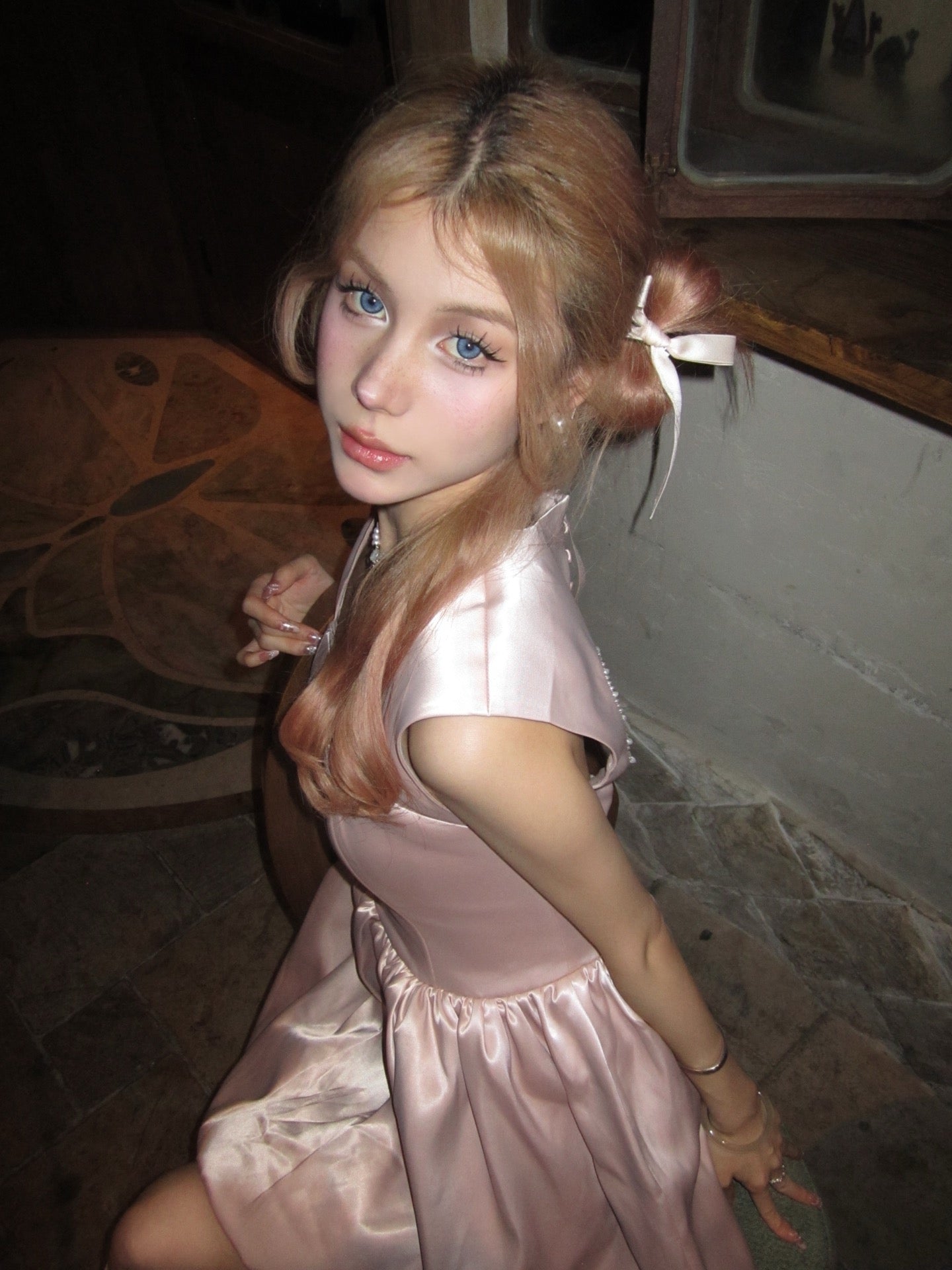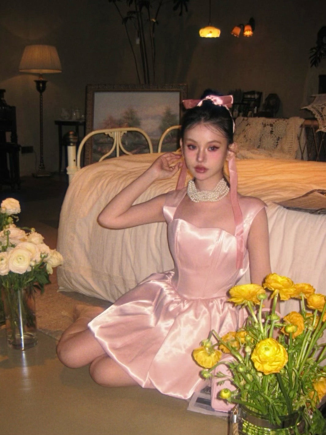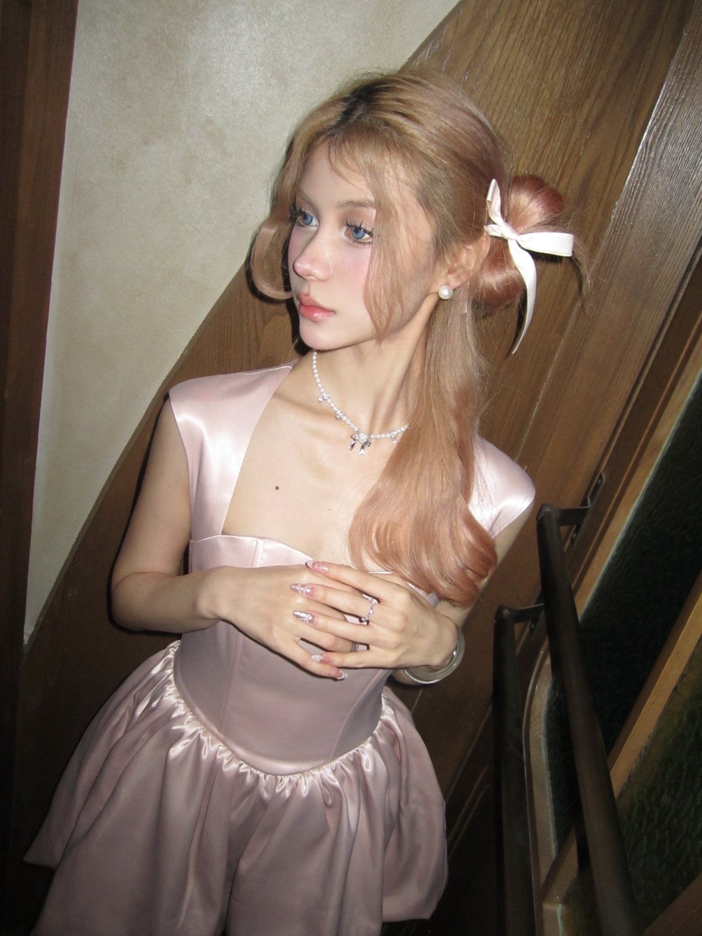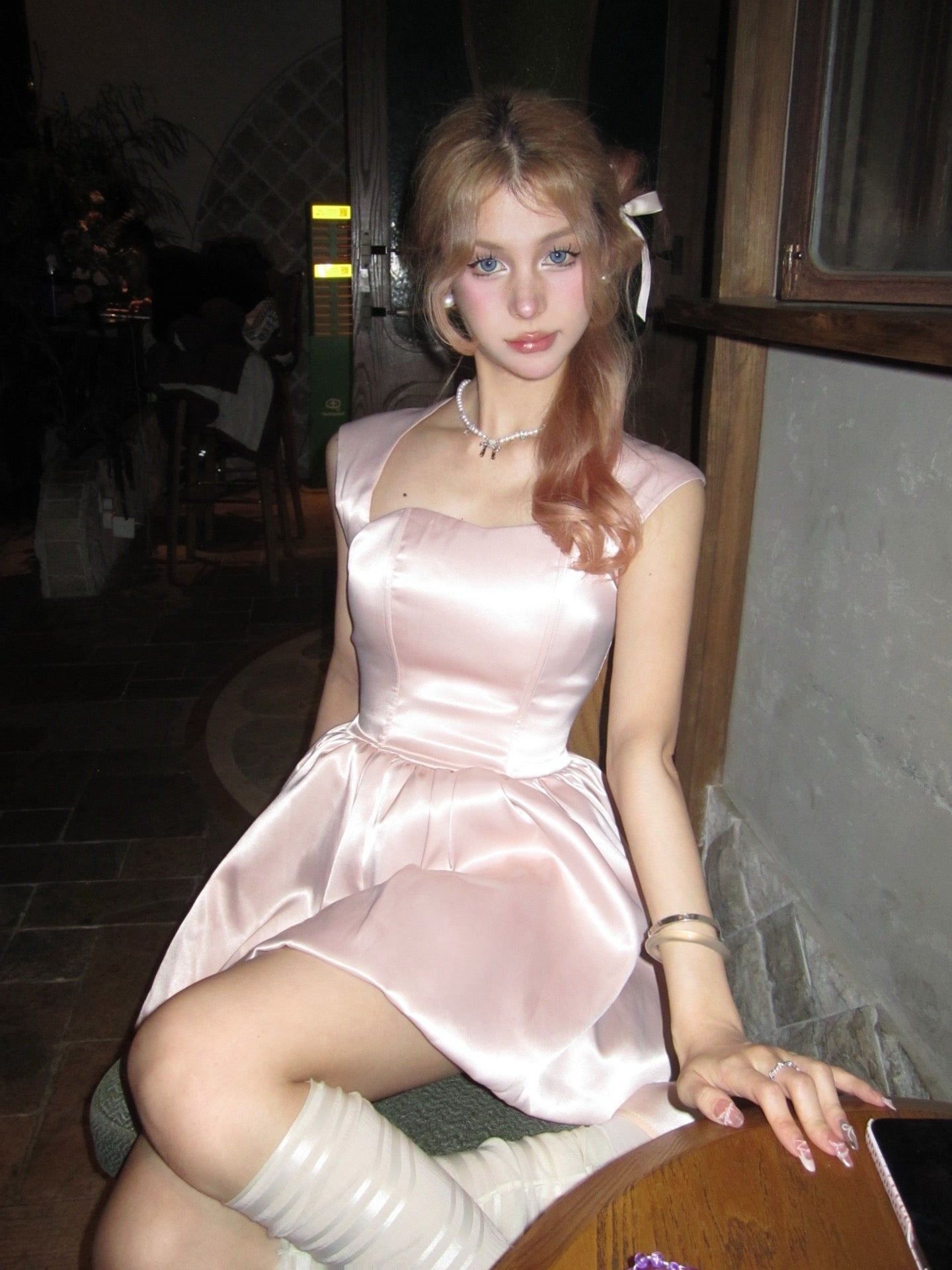 A dreamy, fairytale-inspired dress that flows like a delicate melody, reminiscent of an enchanted ballet performance. Featuring soft layers of shimmering tulle, elegant lace trims, and a romantic ribbon tie, this dress is perfect for those who love a touch of magic in their wardrobe.
