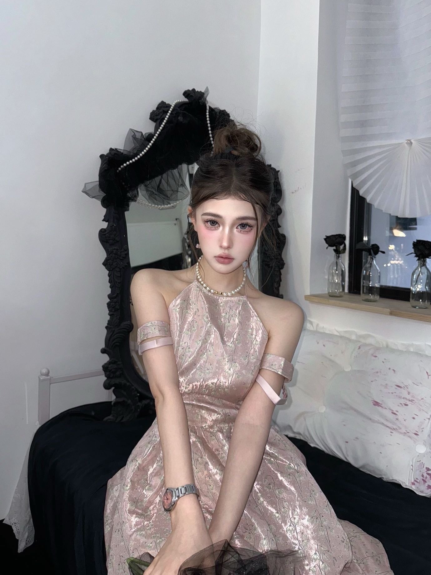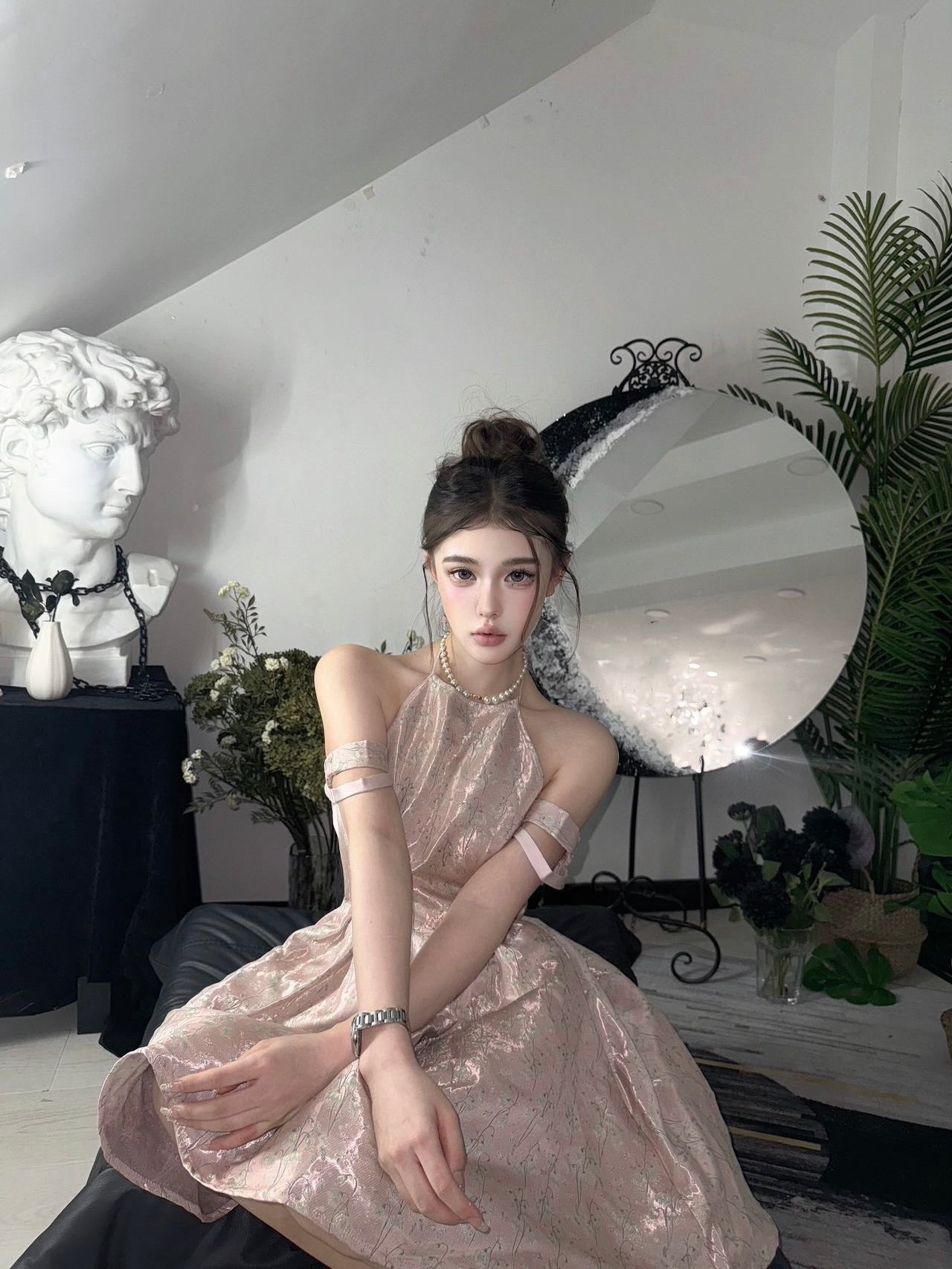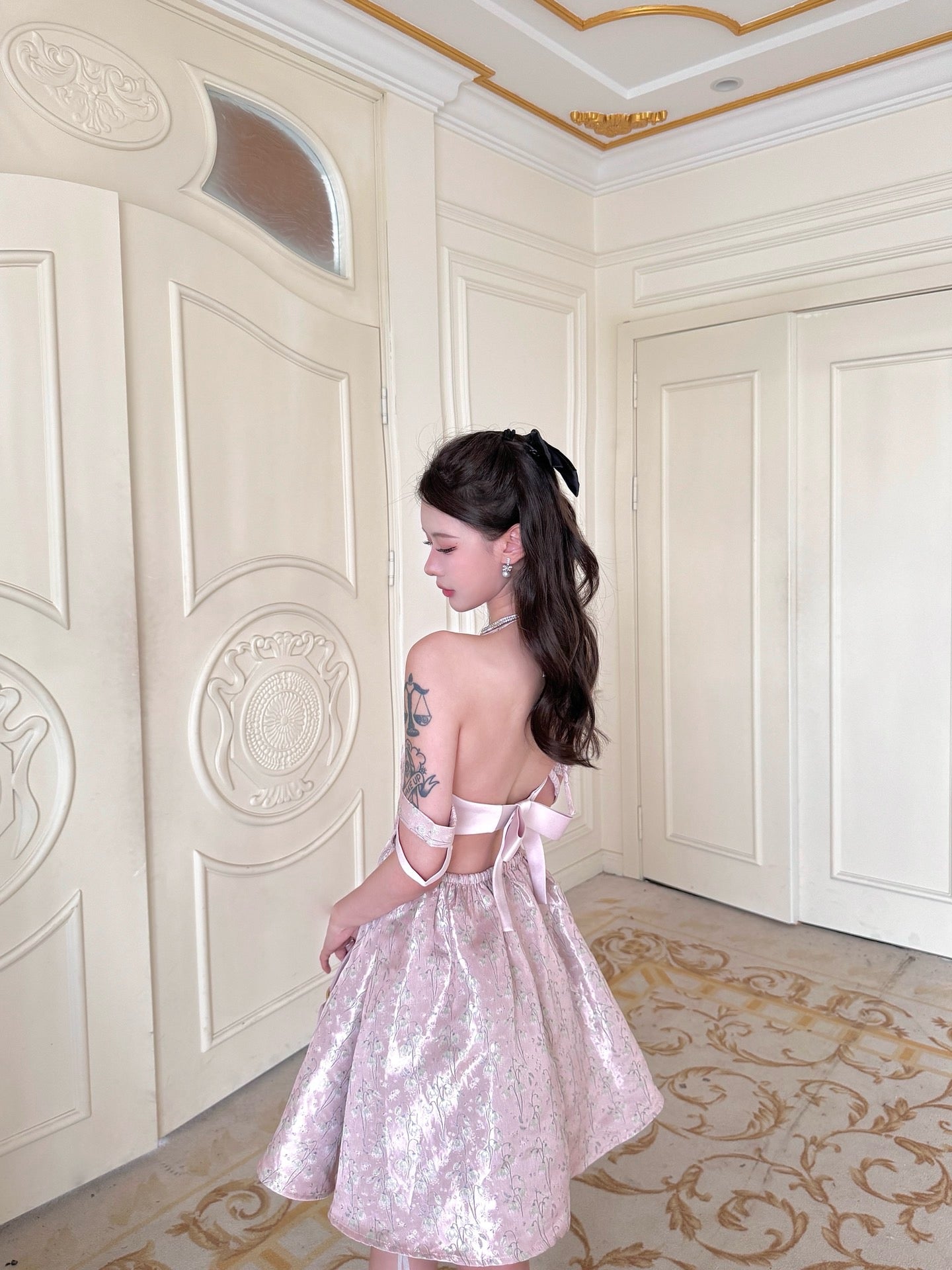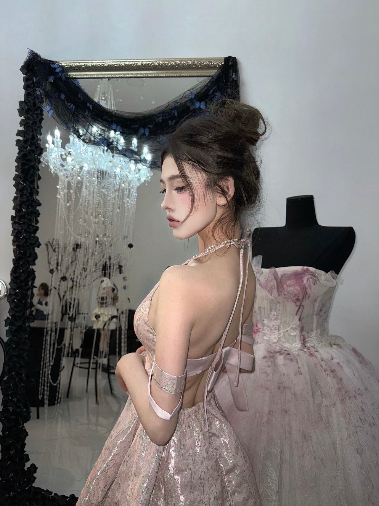 A dreamy, fairytale-inspired dress that flows like a delicate melody, reminiscent of an enchanted ballet performance. Featuring soft layers of shimmering tulle, elegant lace trims, and a romantic ribbon tie, this dress is perfect for those who love a touch of magic in their wardrobe.