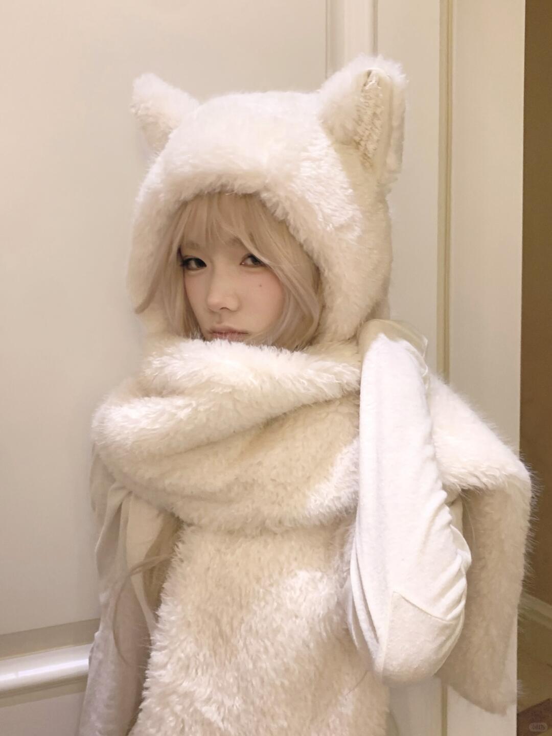 KittenClaw Soft Mist Furry Cat Kitty Ear Hood Scarf