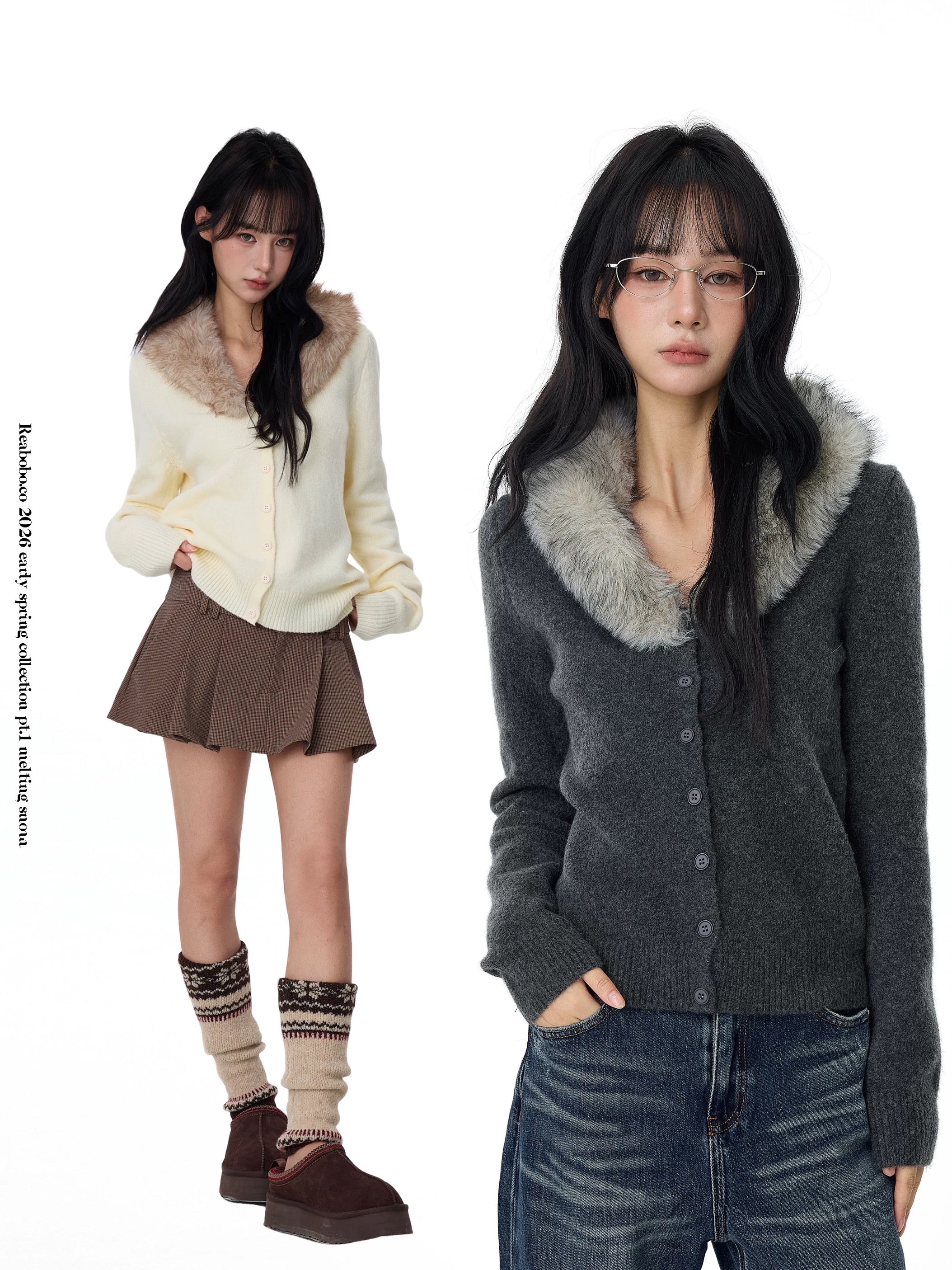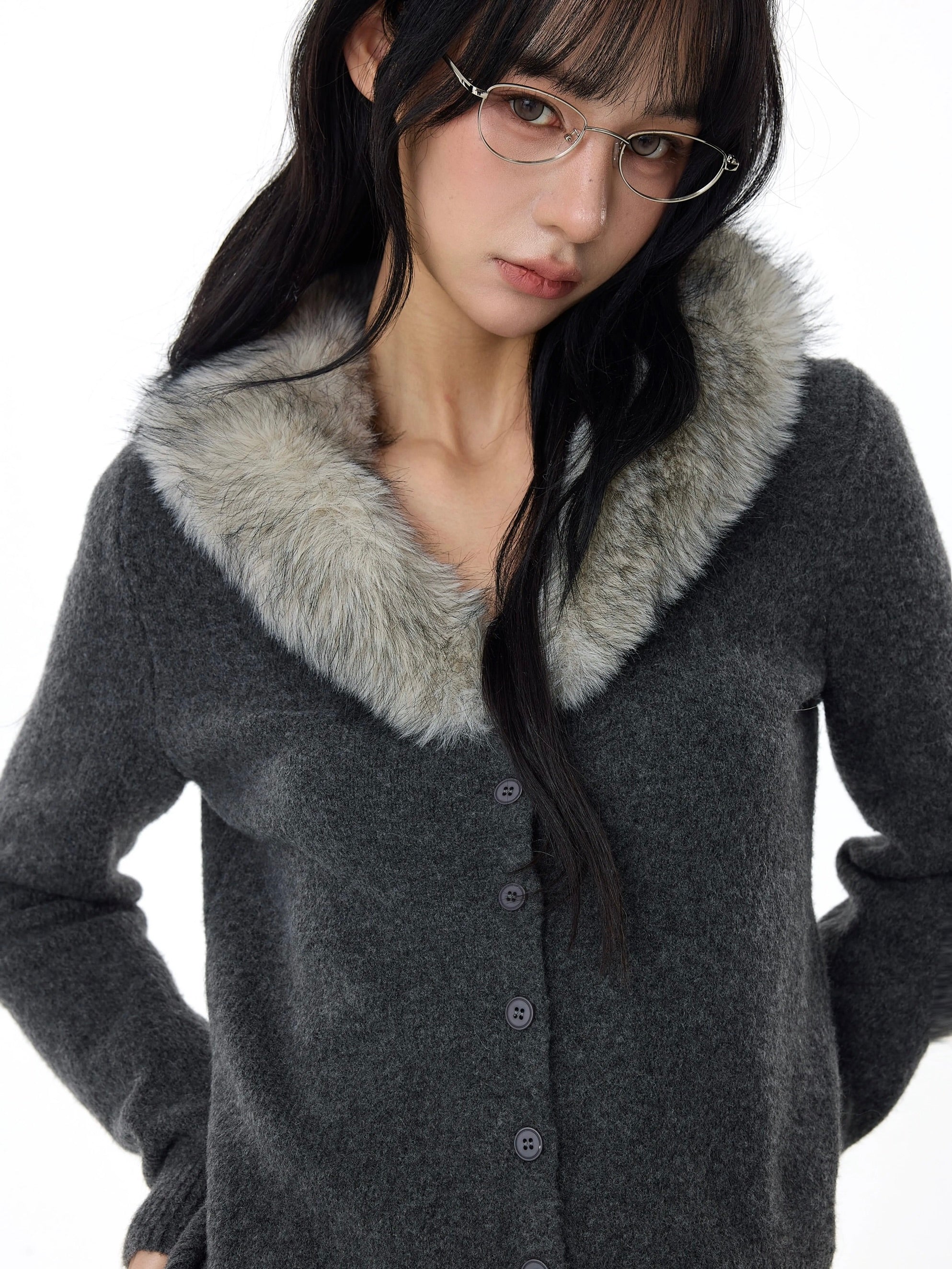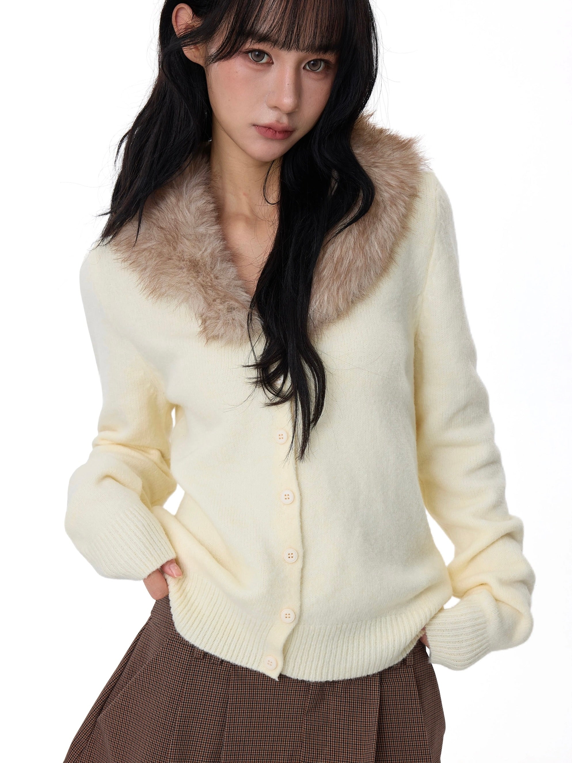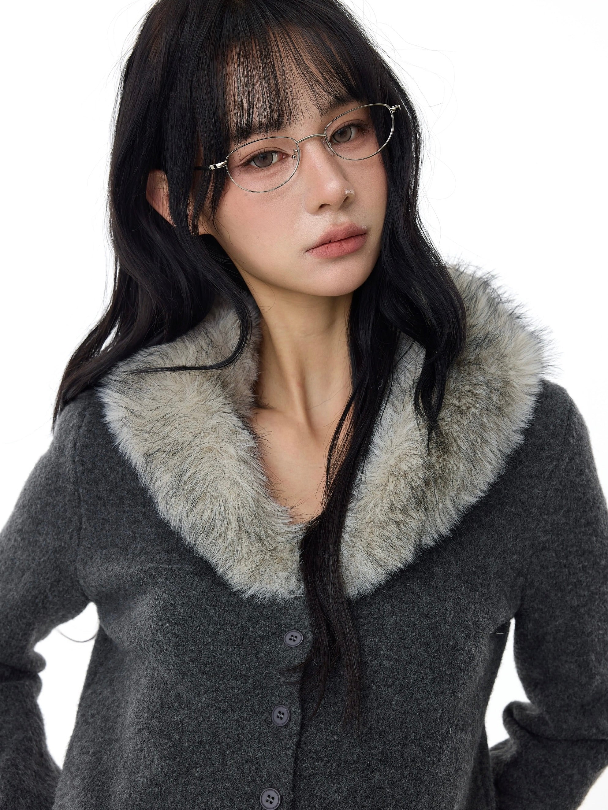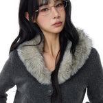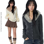 [12% Off Pre-order at Checkout] Reabobo Detachable Faux-Fur Collar Cardigan