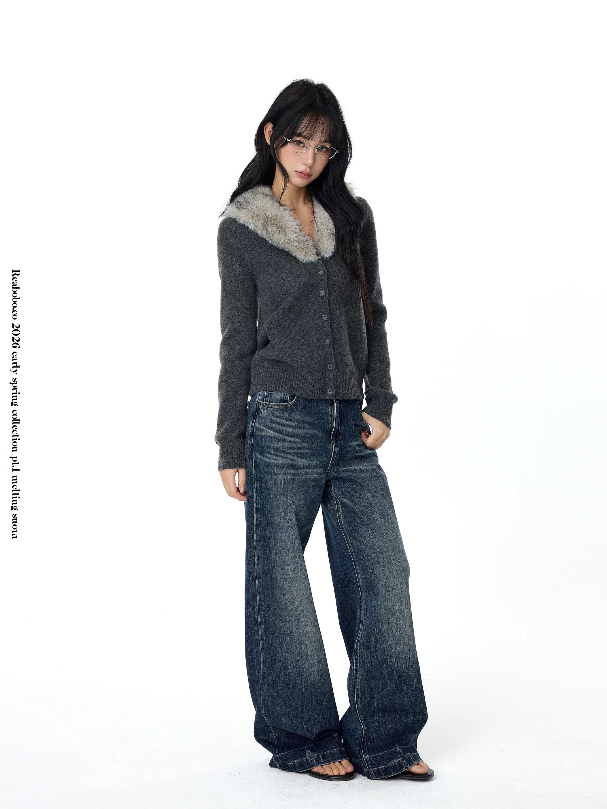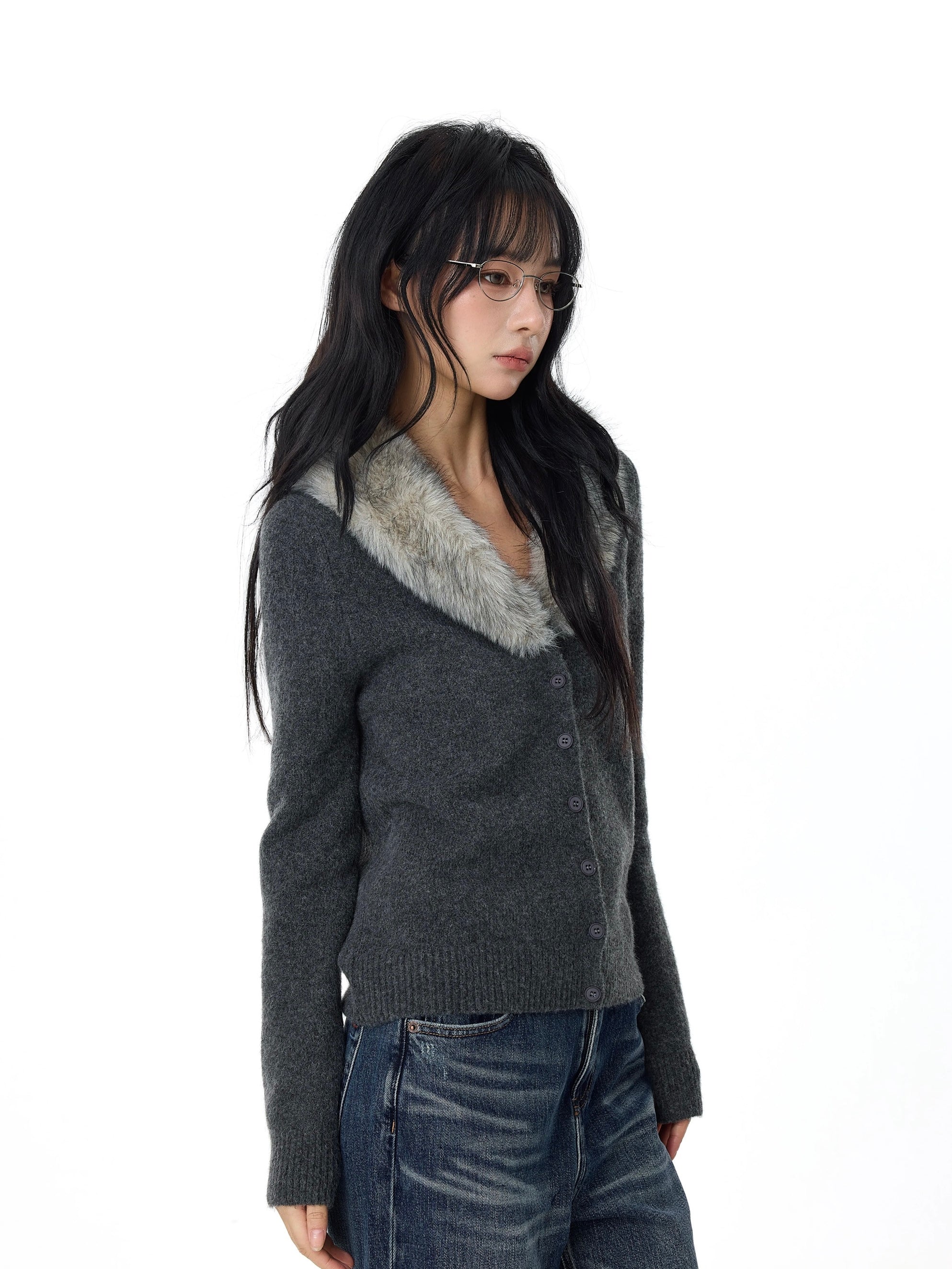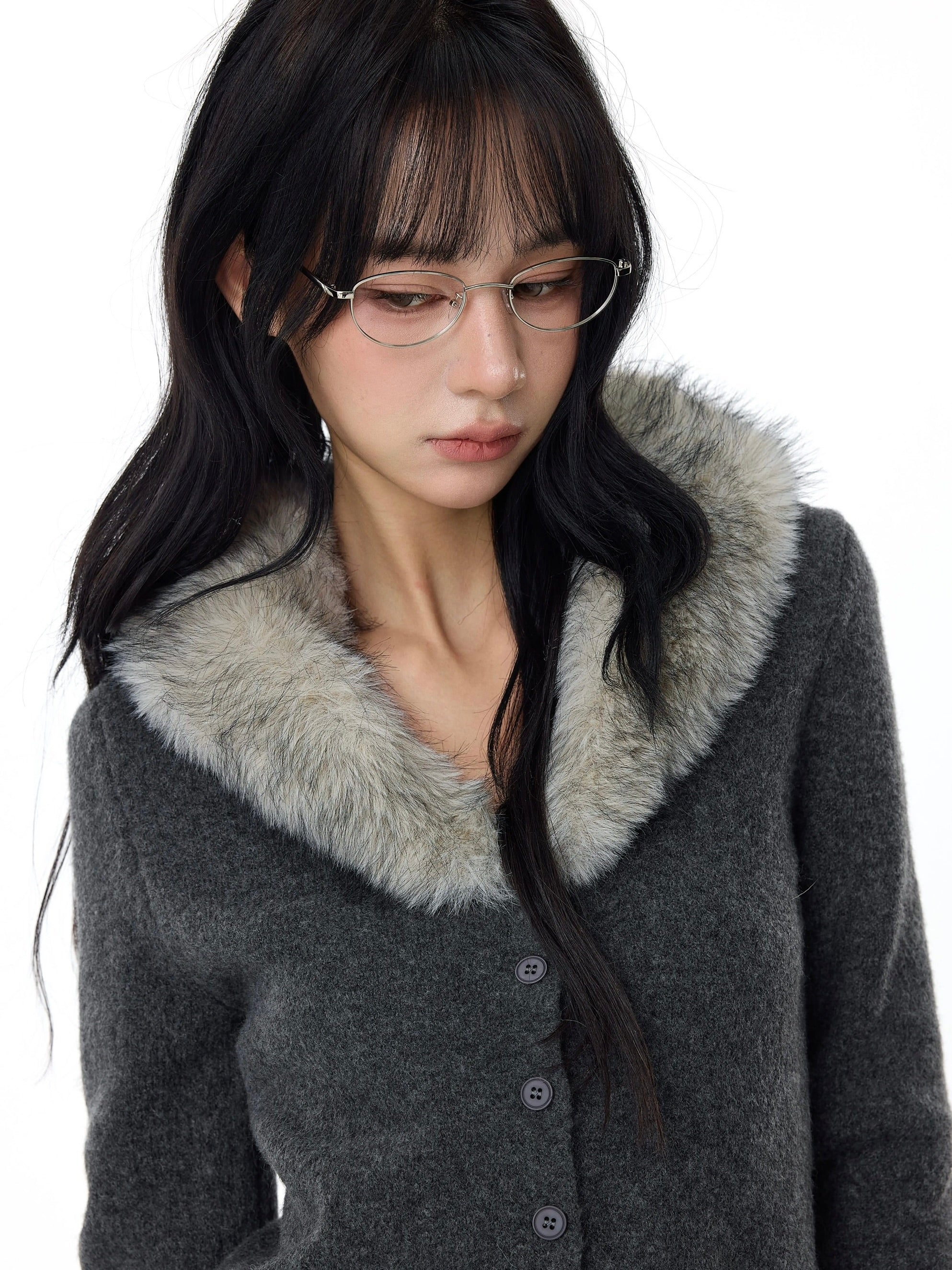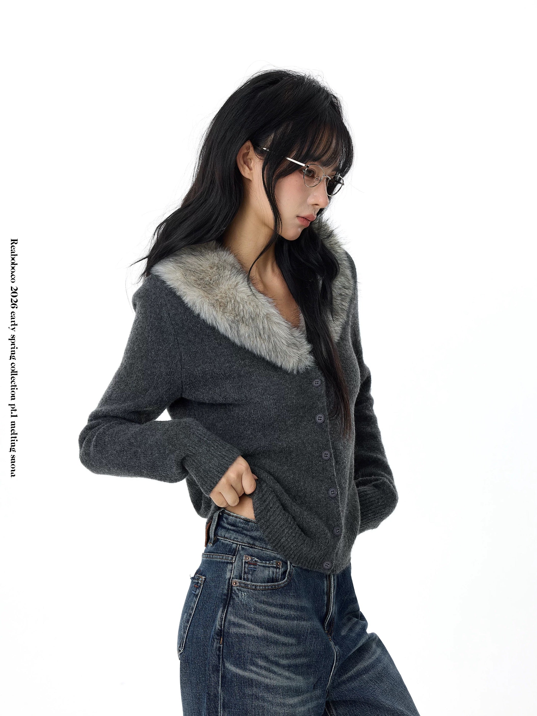 [12% Off Pre-order at Checkout] Reabobo Detachable Faux-Fur Collar Cardigan