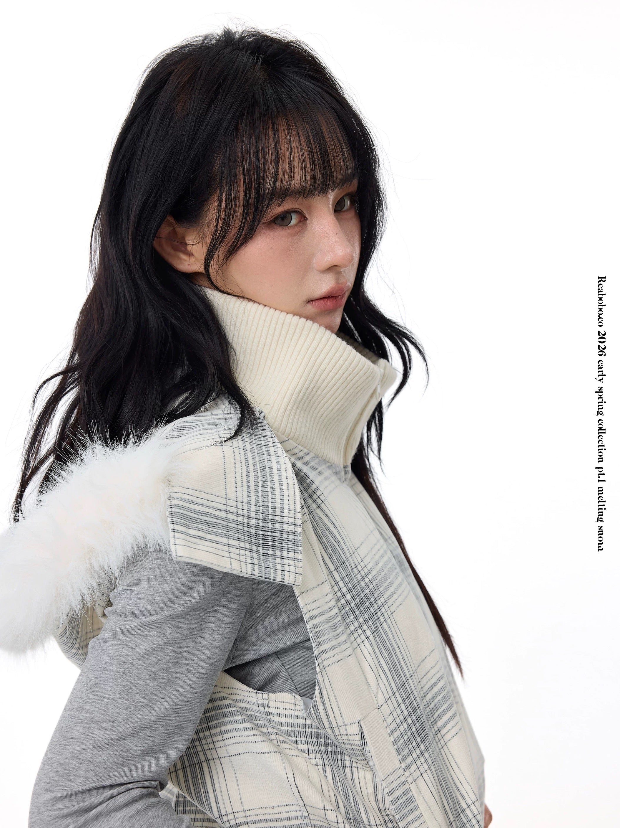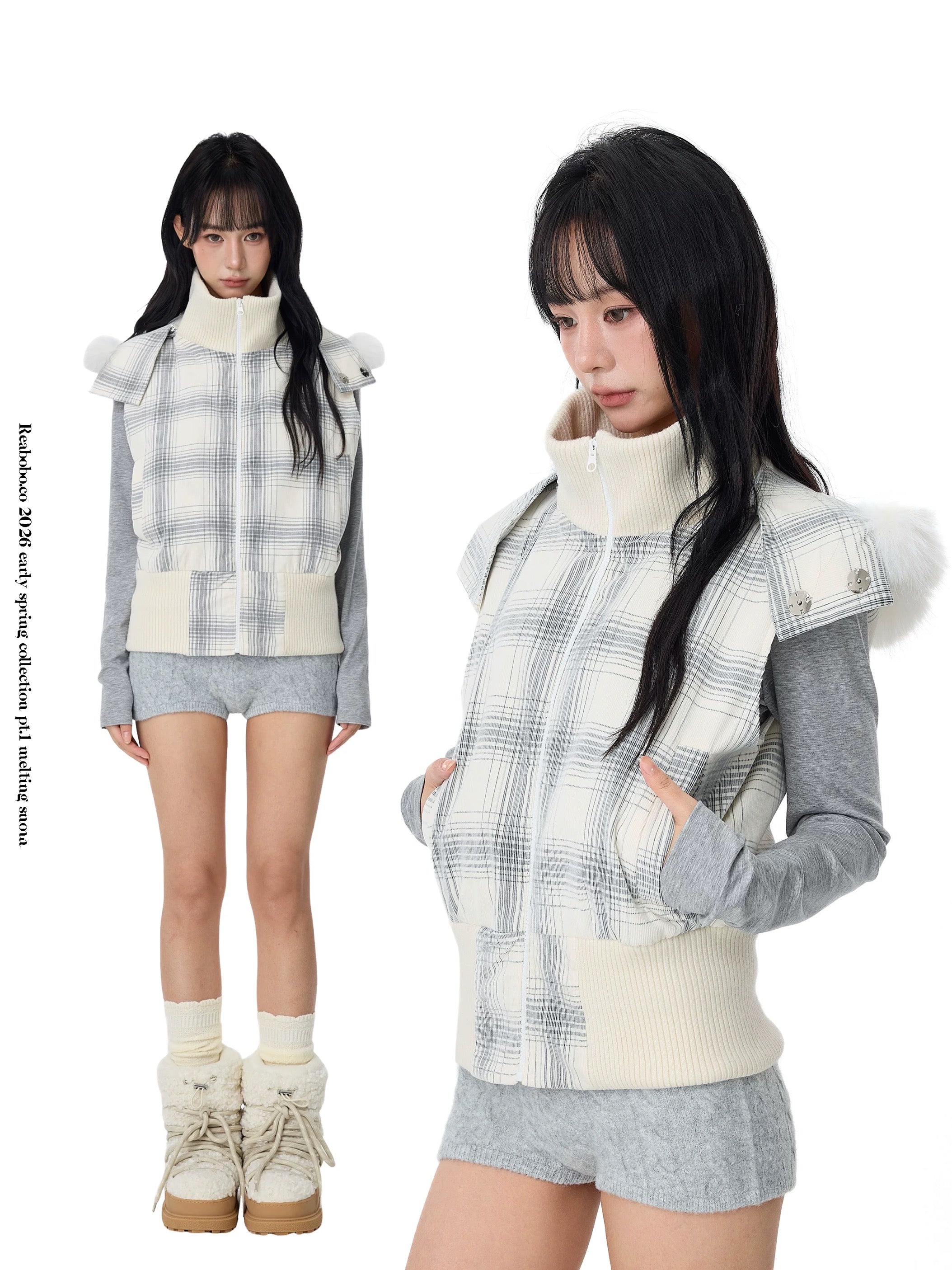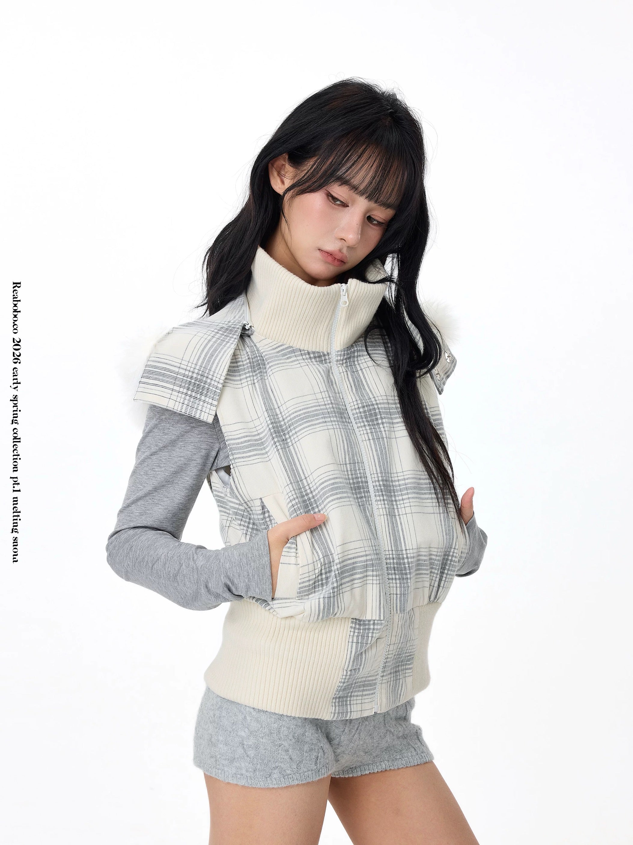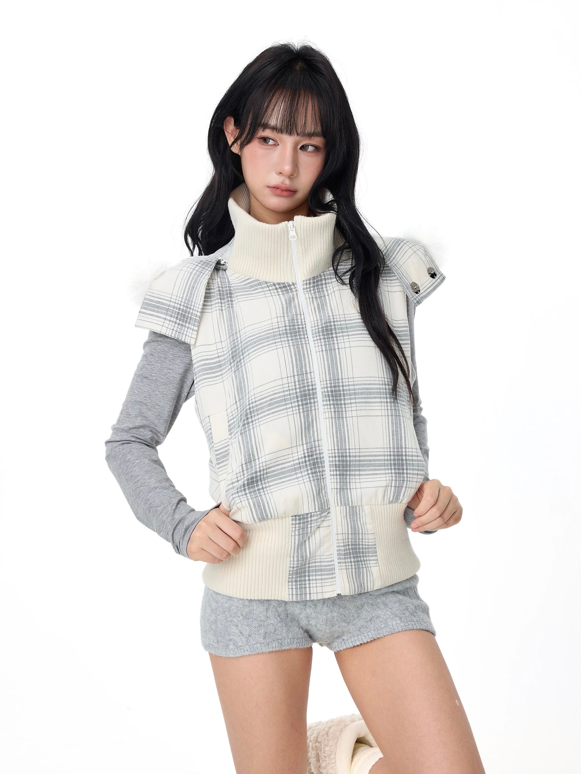[12% Off Pre-order at Checkout] Reabobo Detachable Faux-Fur Padded Plaid Vest