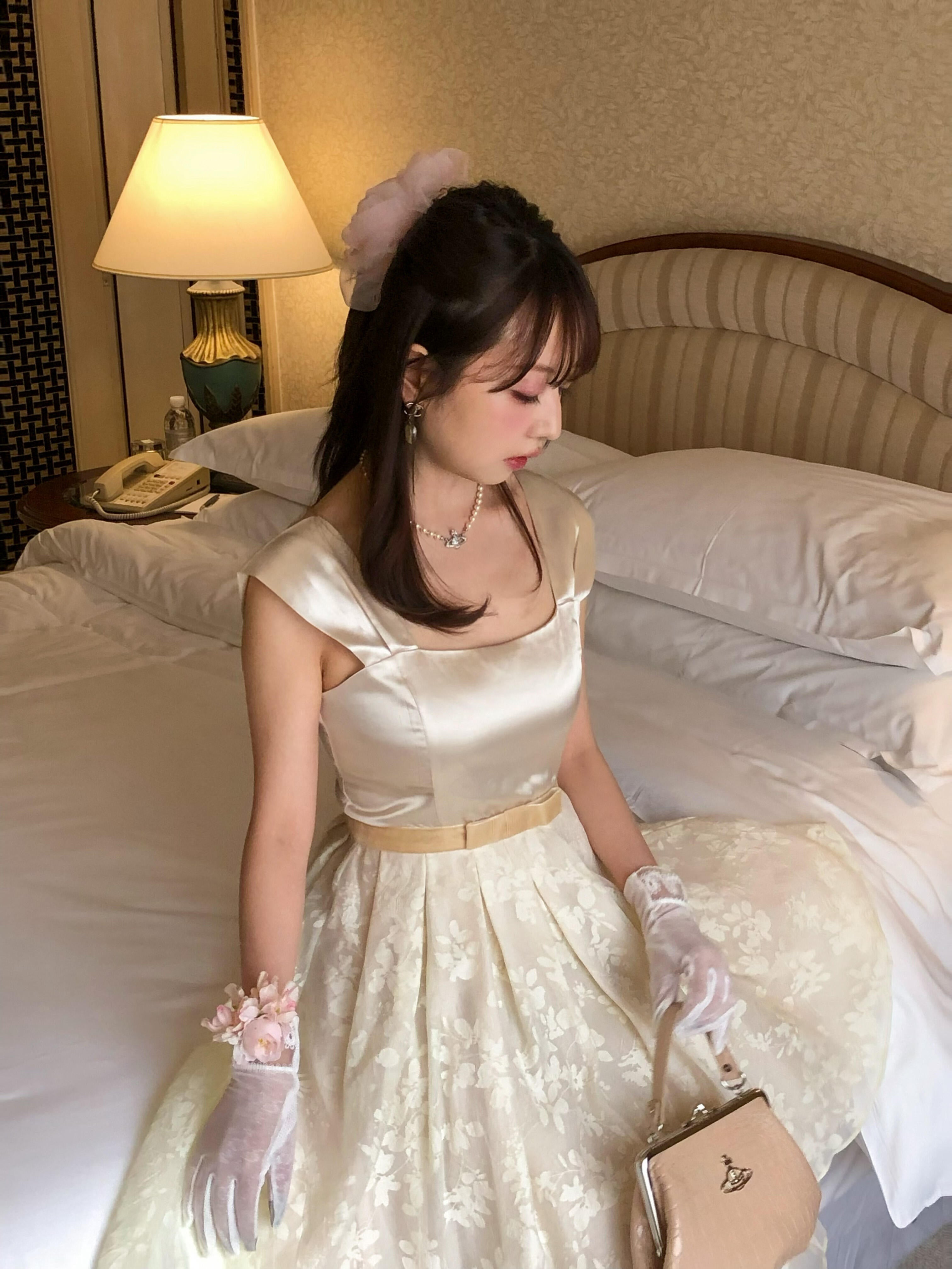 肌馴染みの良い上品なシャンパンカラーが印象的で、纏うだけで高級感と儚さを演出してくれます。