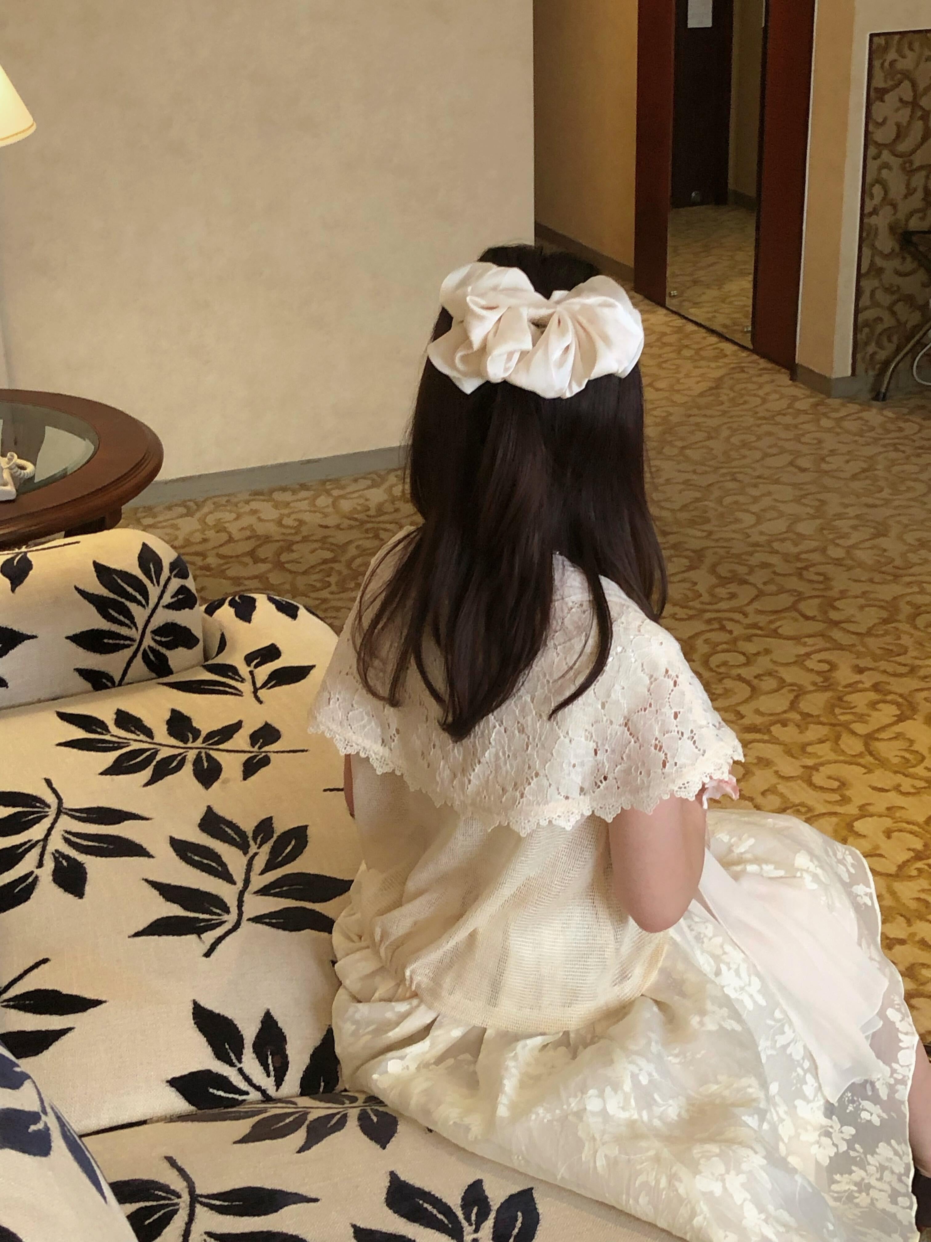 サテン部分のカラーもとても美しく、光沢がありながら柔らかい印象で、お誕生日や少しフォーマルなシーンにもぴったりの一枚です。
