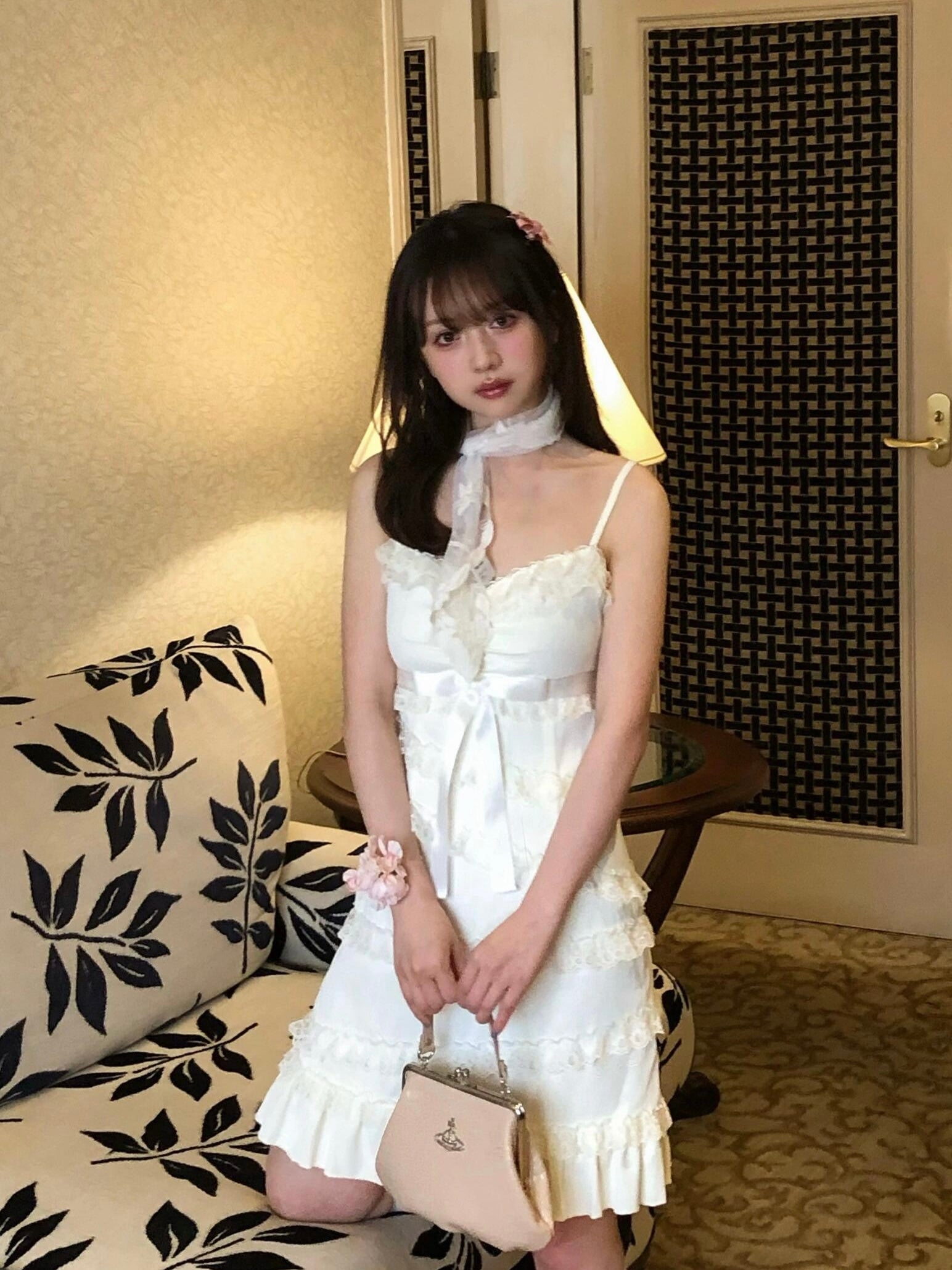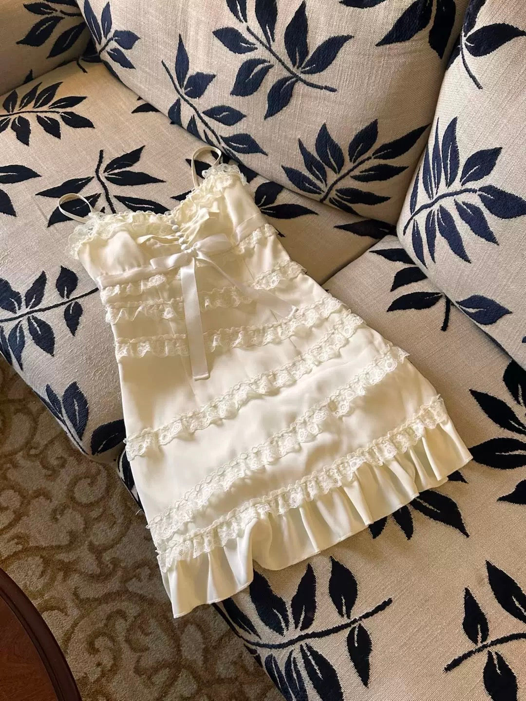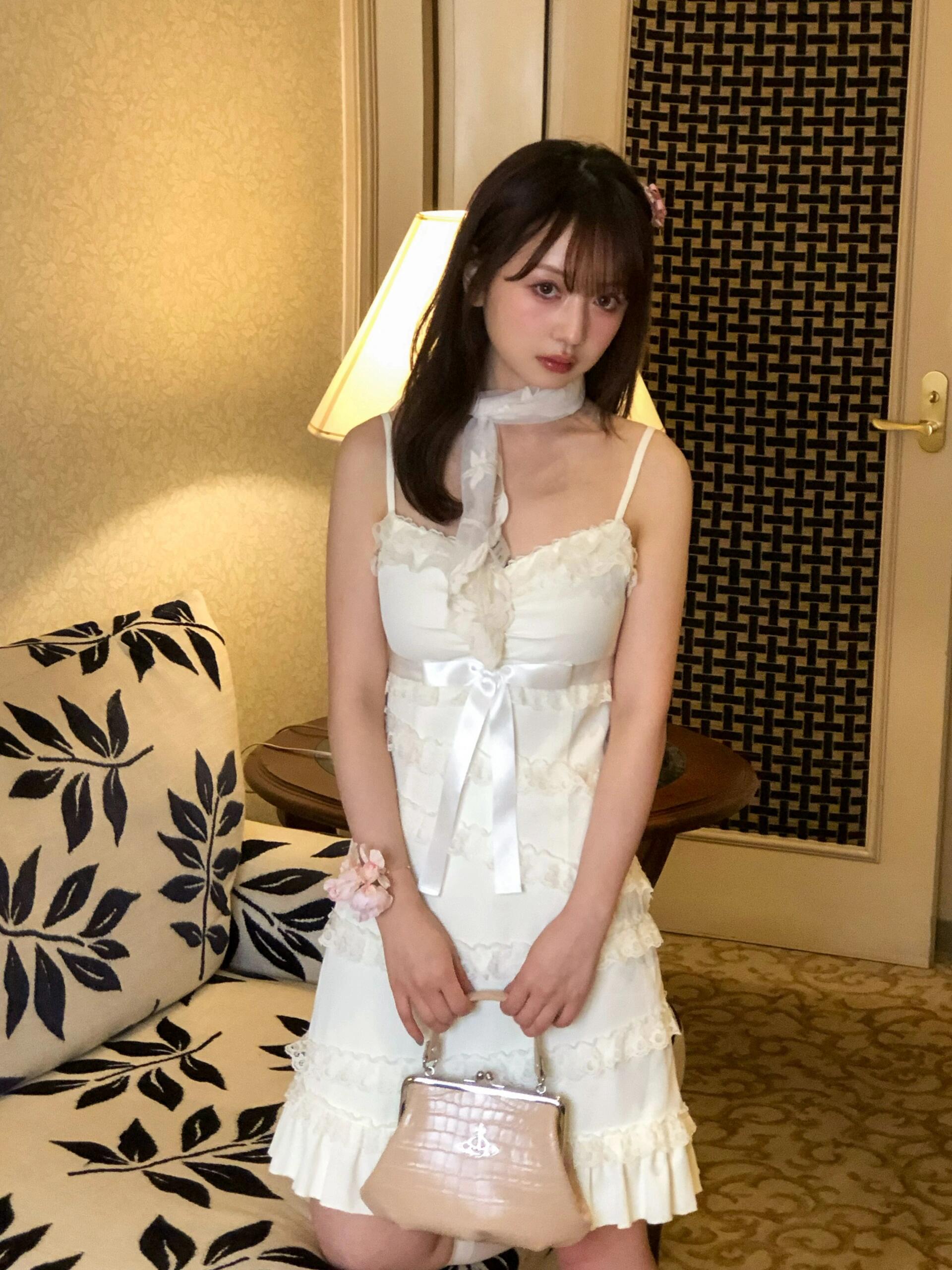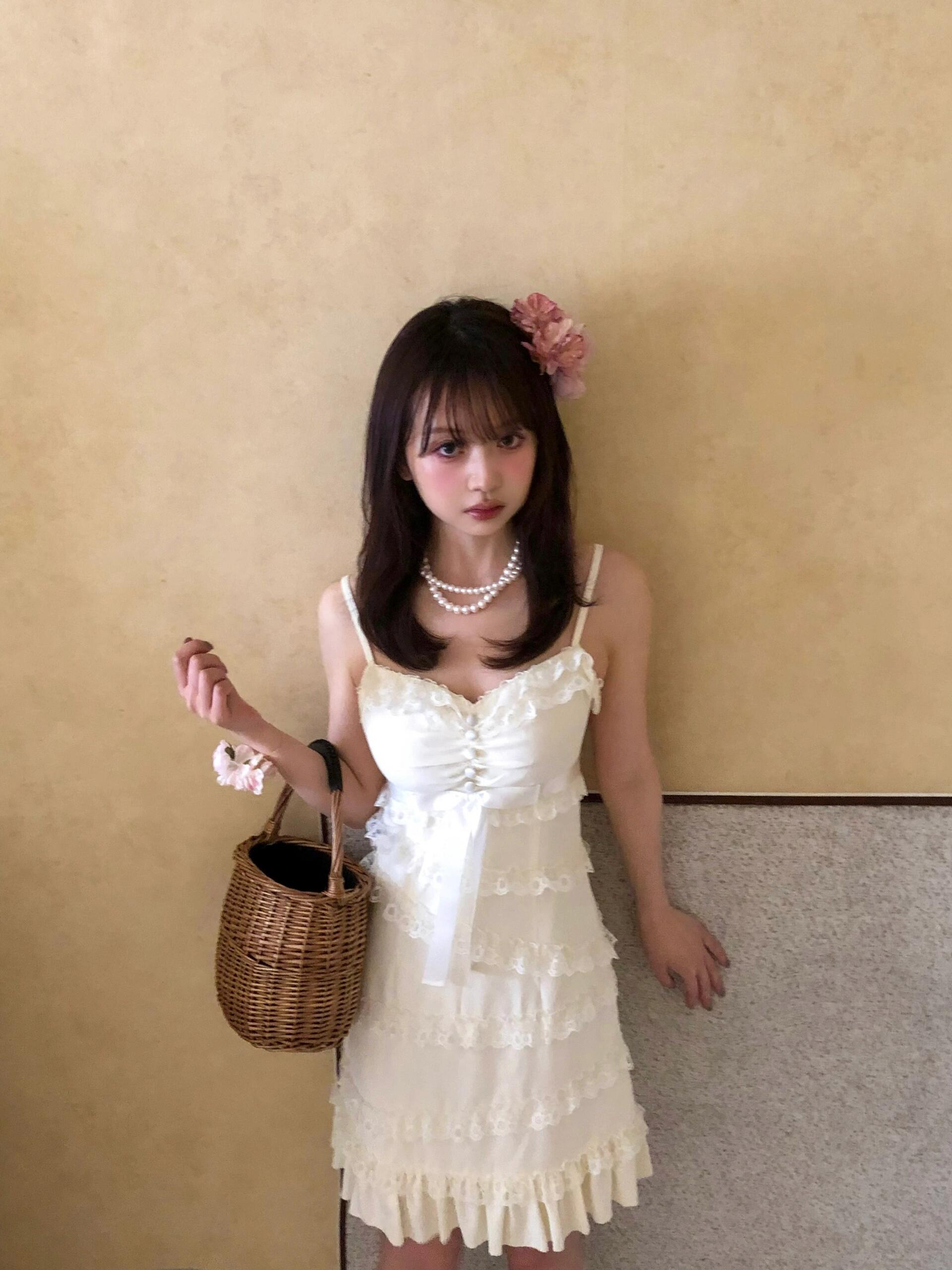 The asymmetrical lace detailing at the skirt is the perfect finishing touch, giving the dress a “cute little cake” vibe. Paired with a vintage lace shawl, this dress exudes even a princess vibes, effortlessly capturing that nostalgic, romantic charm.