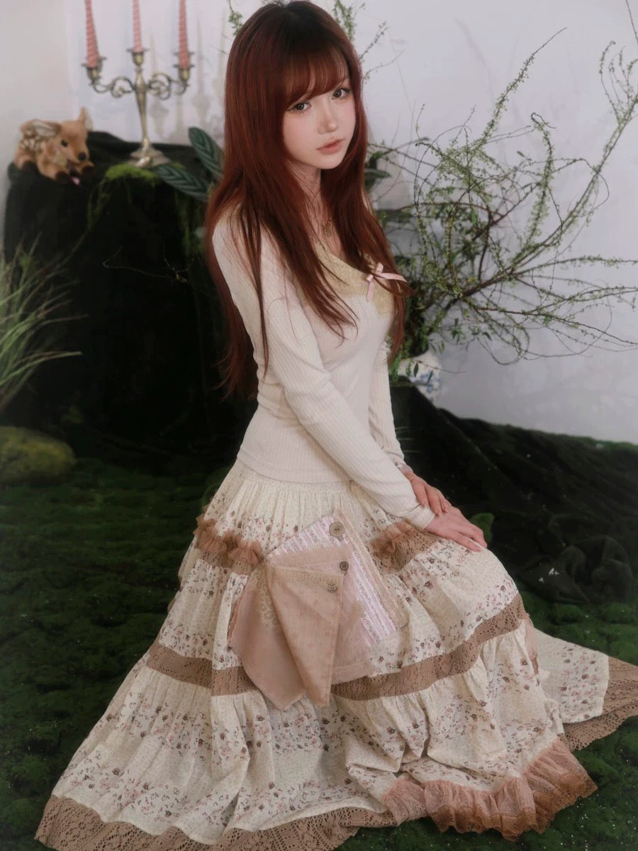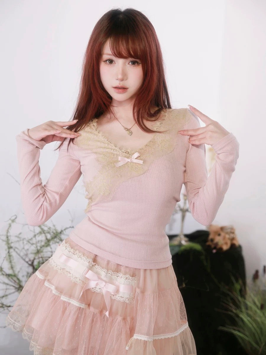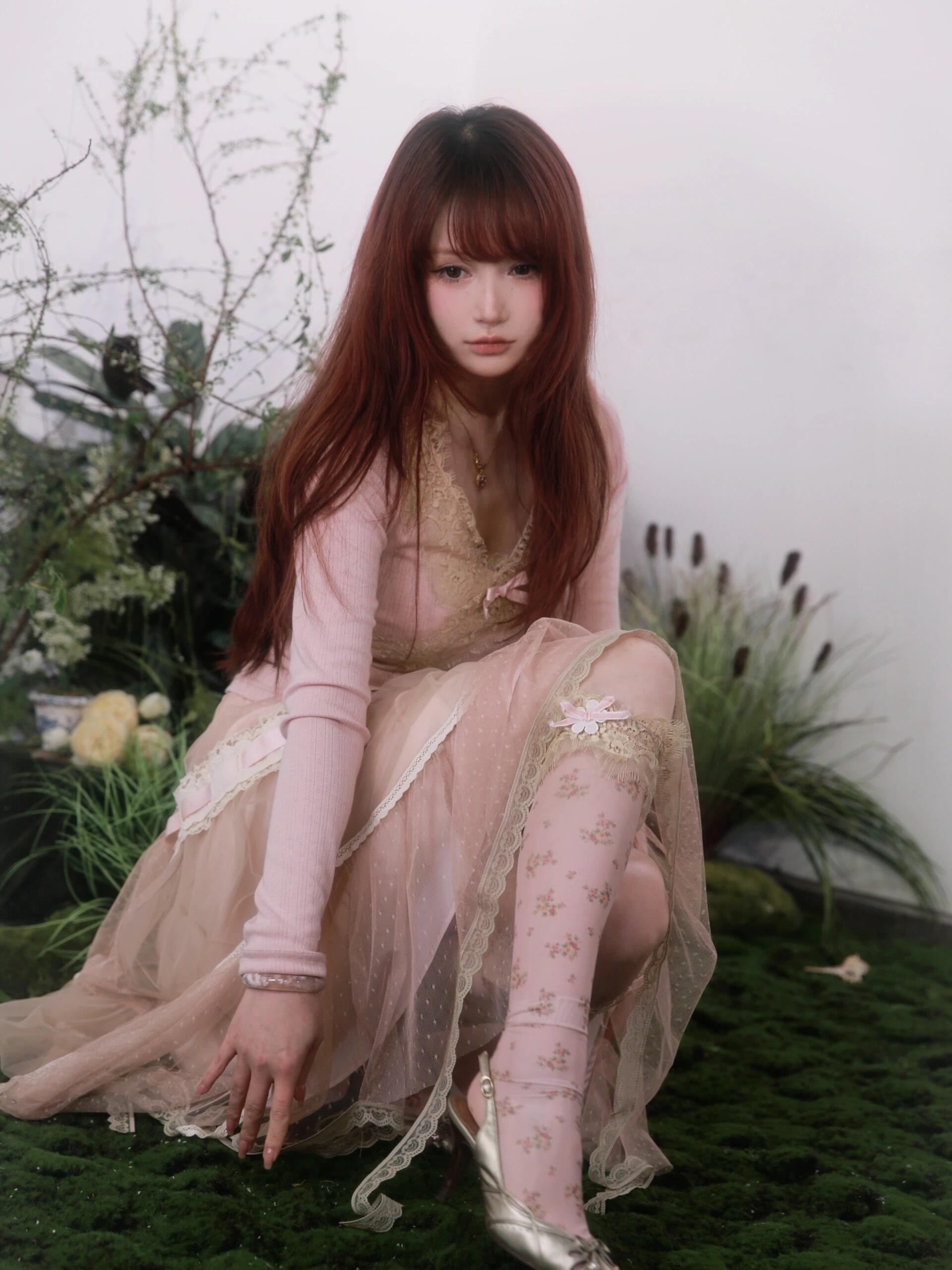 不規則にドレープされたレースは、まだ編みかけられているかのように、未完成で夢見心地な雰囲気を醸し出し、フェアリーコアの幻想的な世界観とコケットコアの優雅さを融合させています。