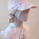 Game, set, style! This pink gingham visor with lace trim and heart-shaped buttons is your perfect match for sunny days on and off the court 💗