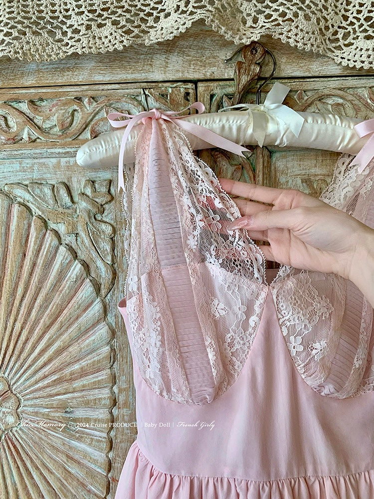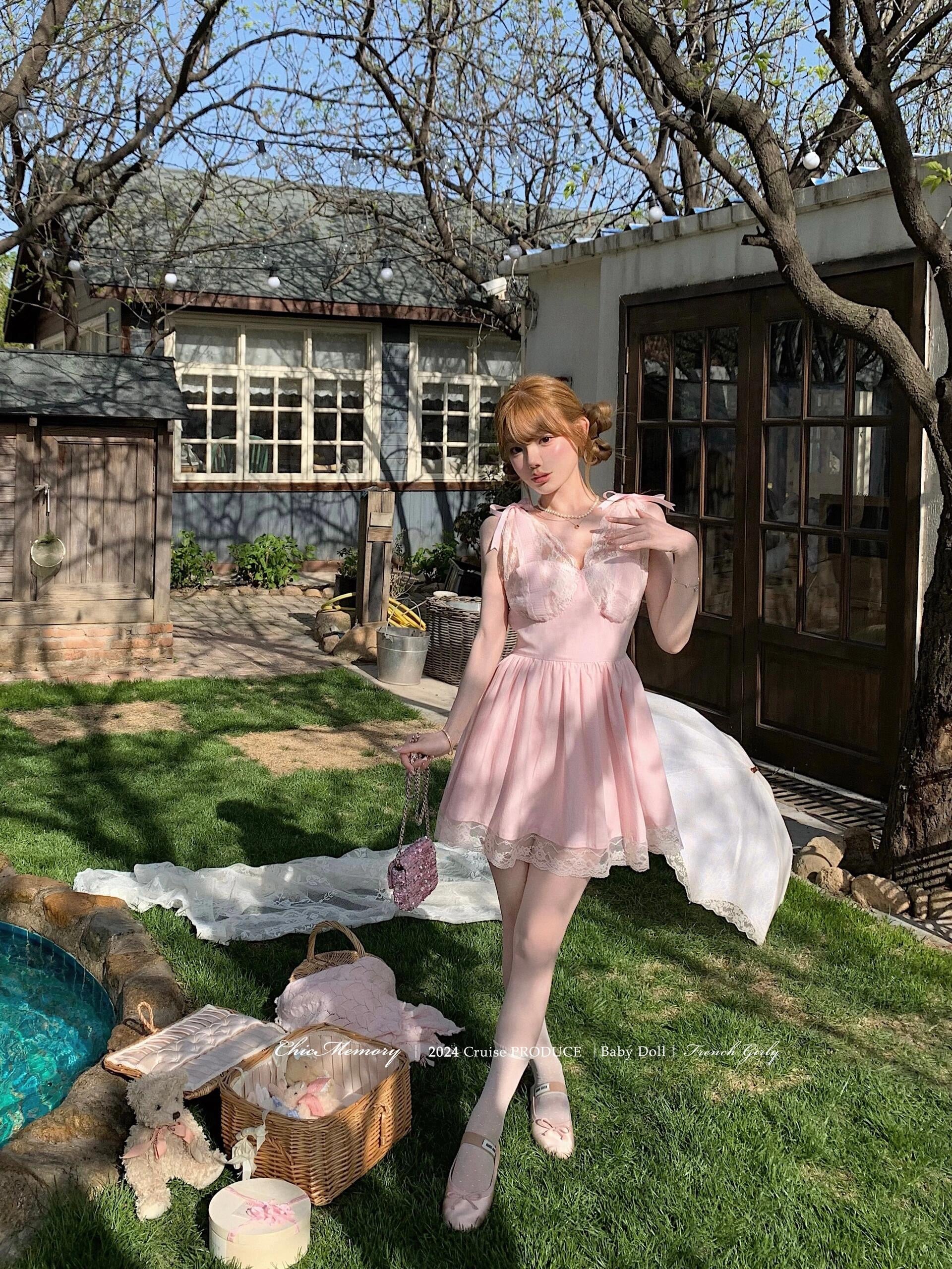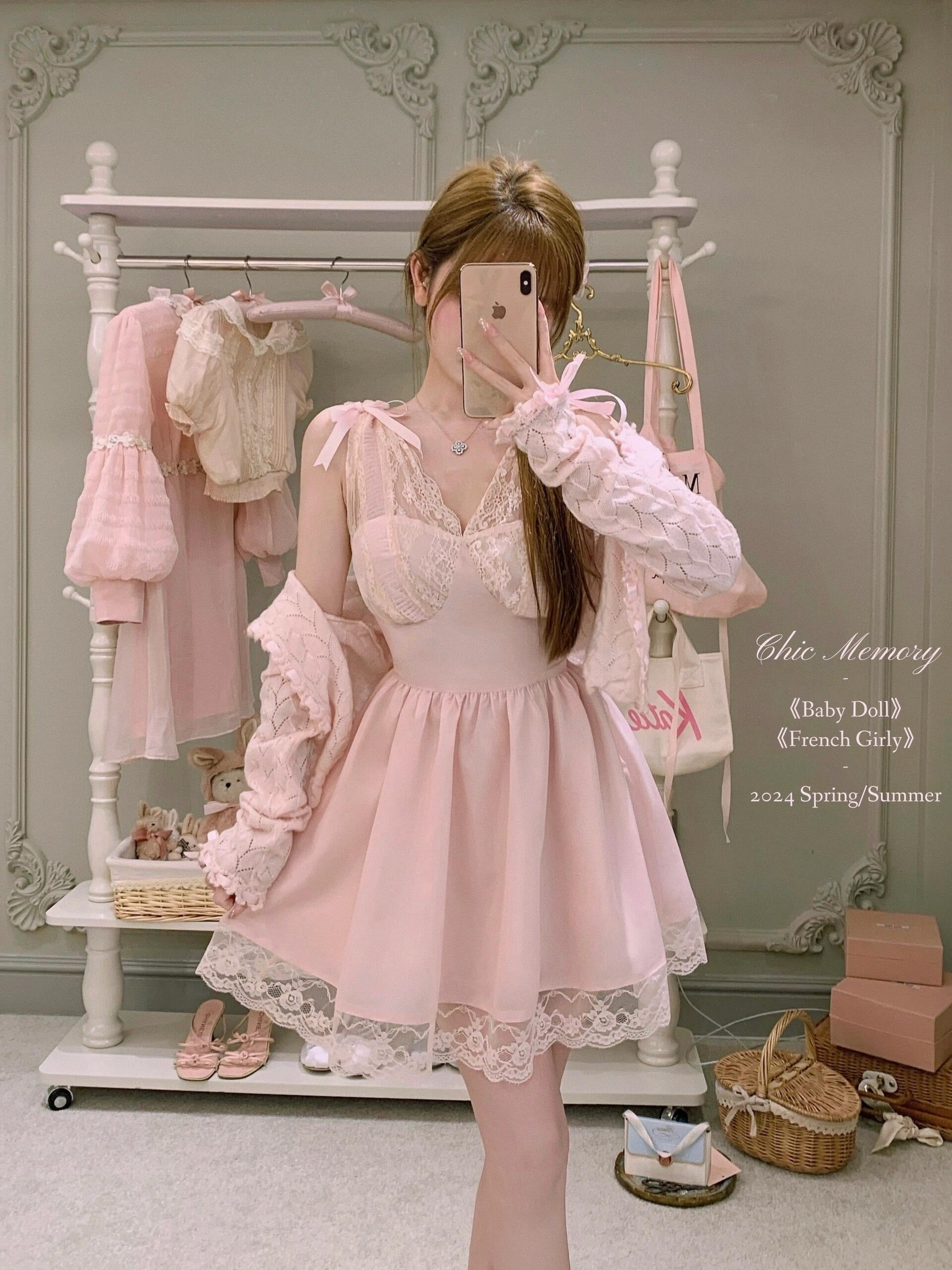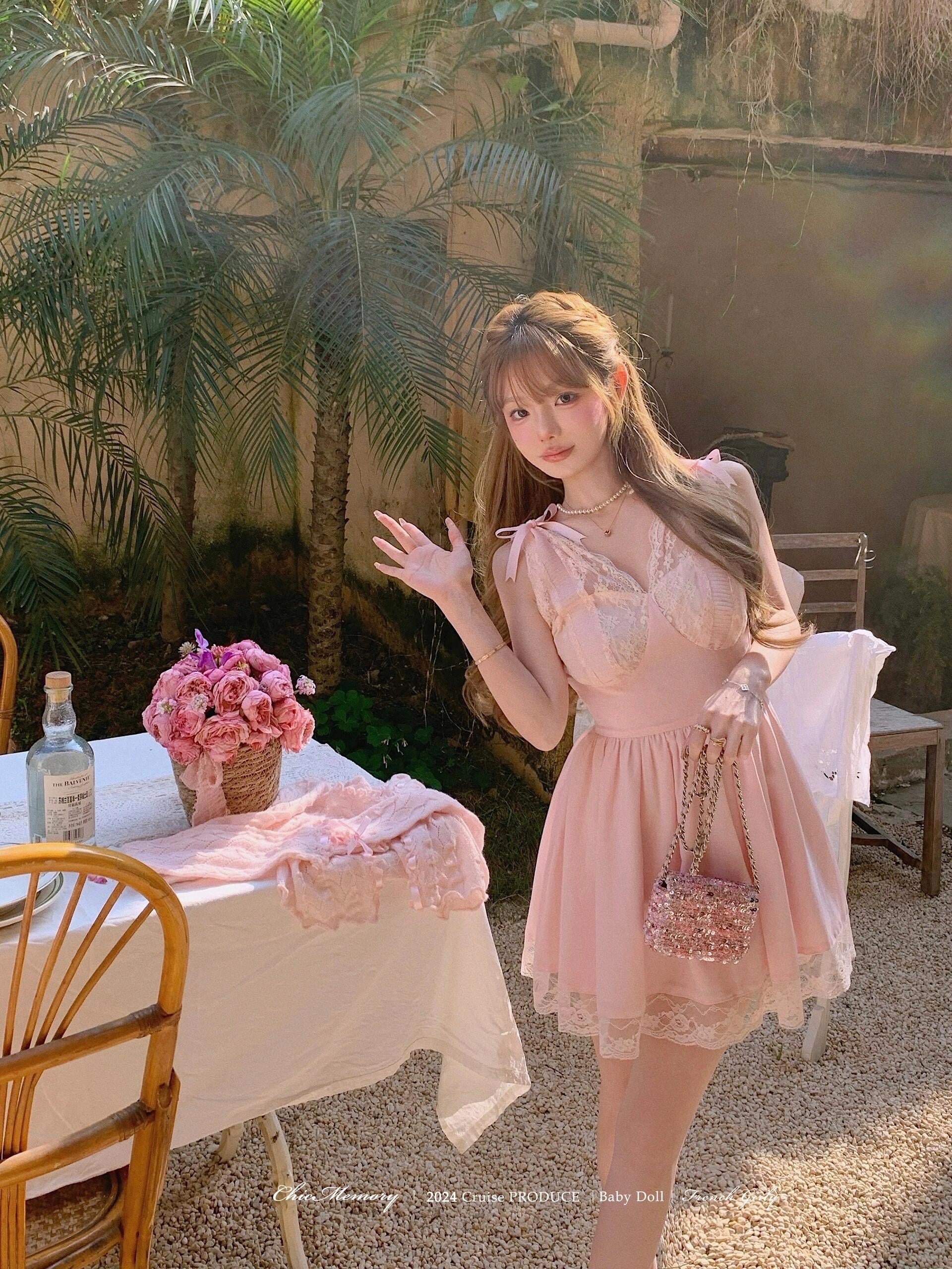 This vintage-inspired baby doll dress is a delicate balance of elegance and cuteness, embodying the charm of coquette core with a soft pastel pink hue. Inspired by classical tea party dresses, it captures the refined grace of Victorian romance while feeling light and effortless.