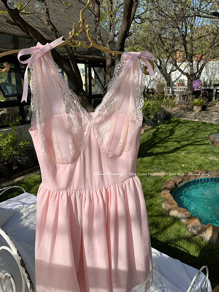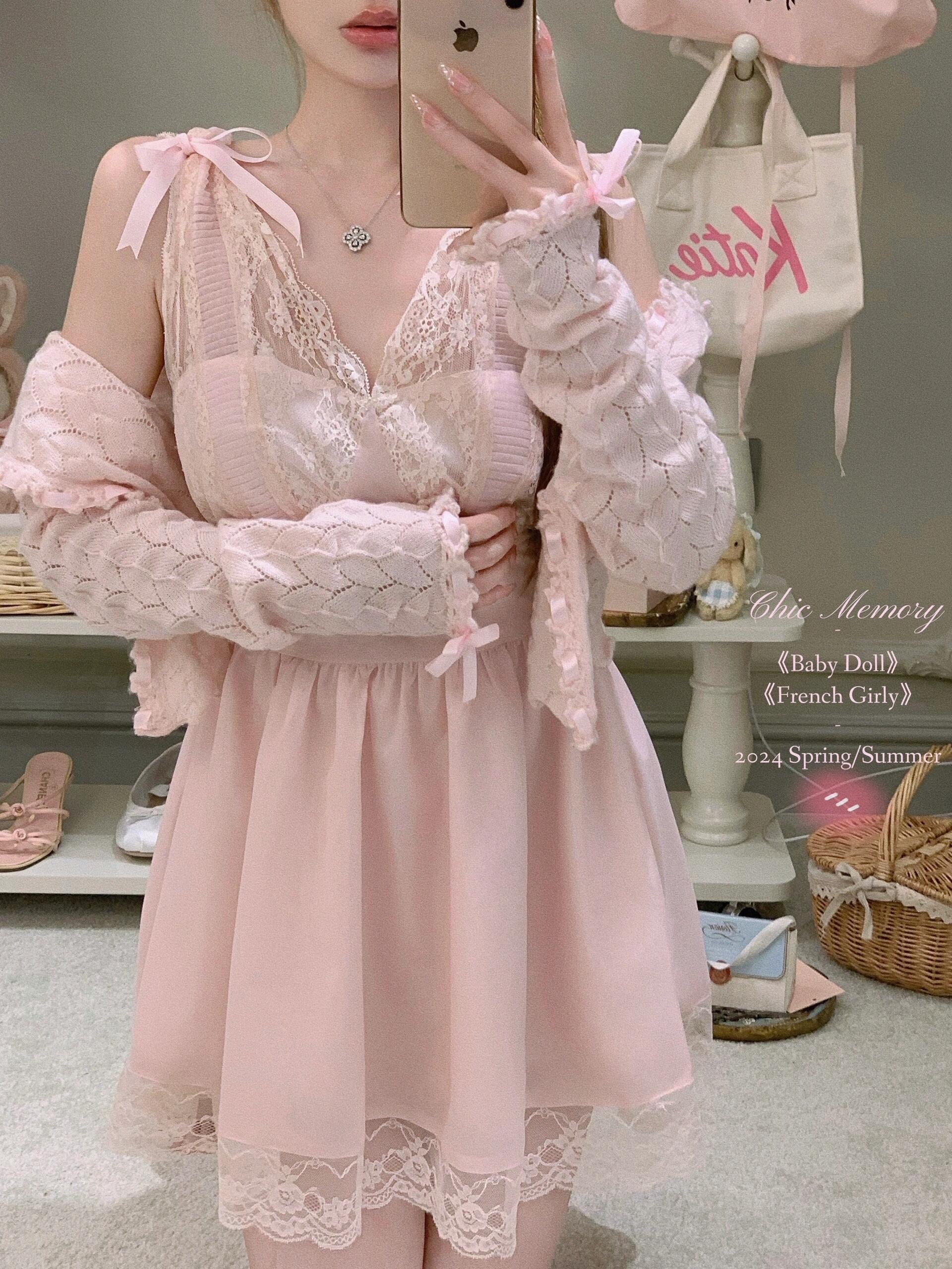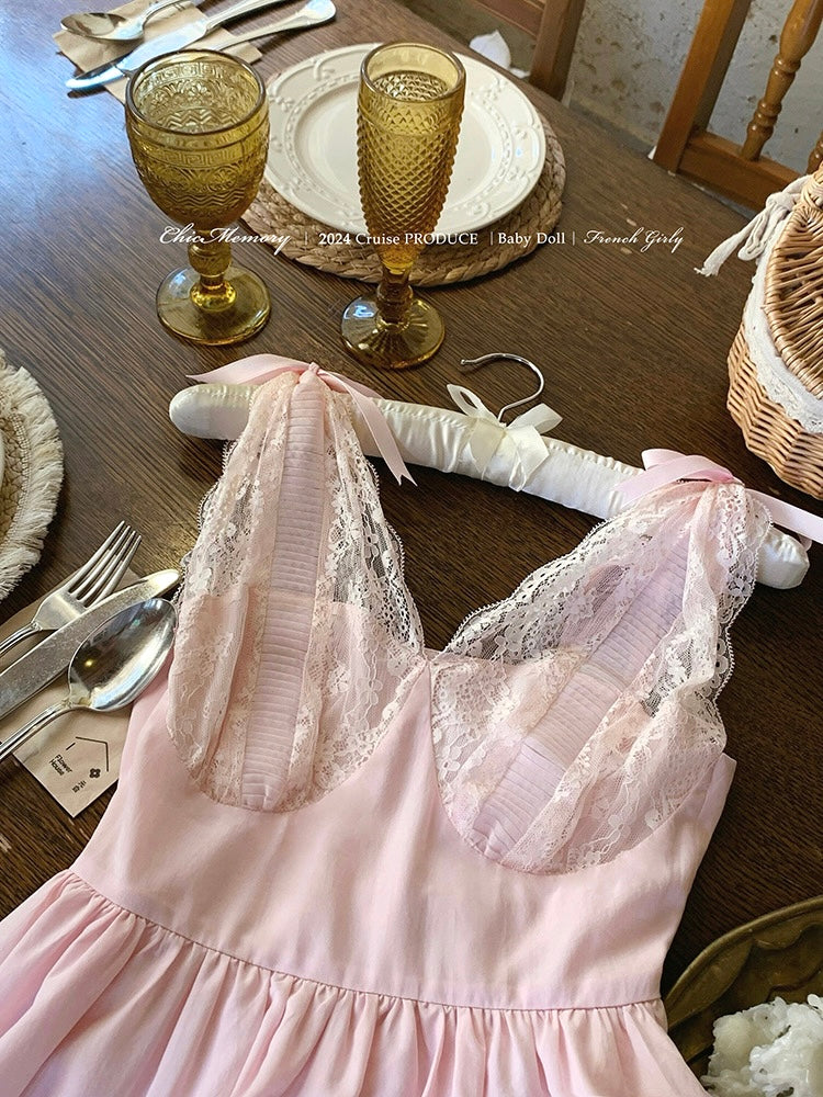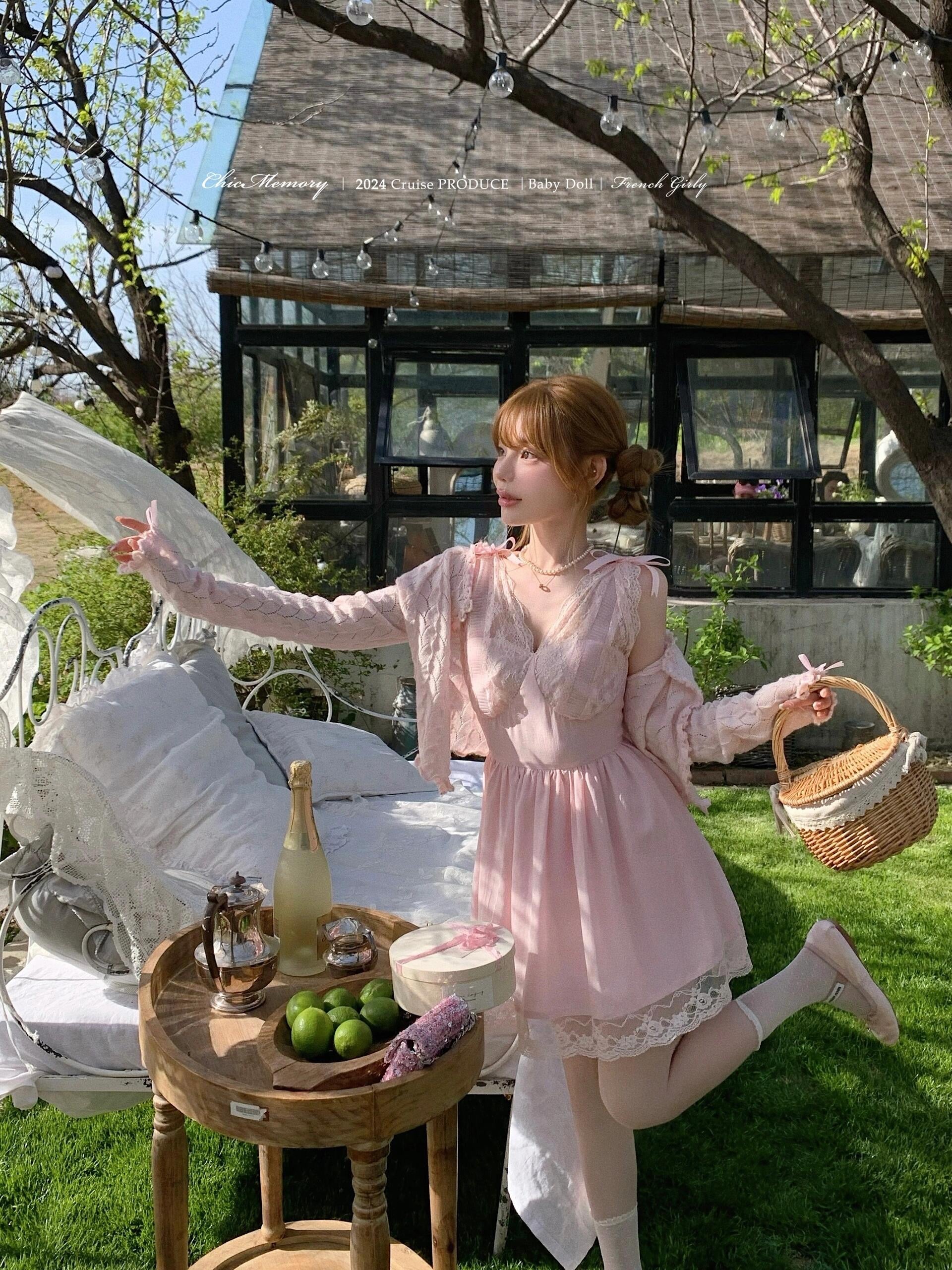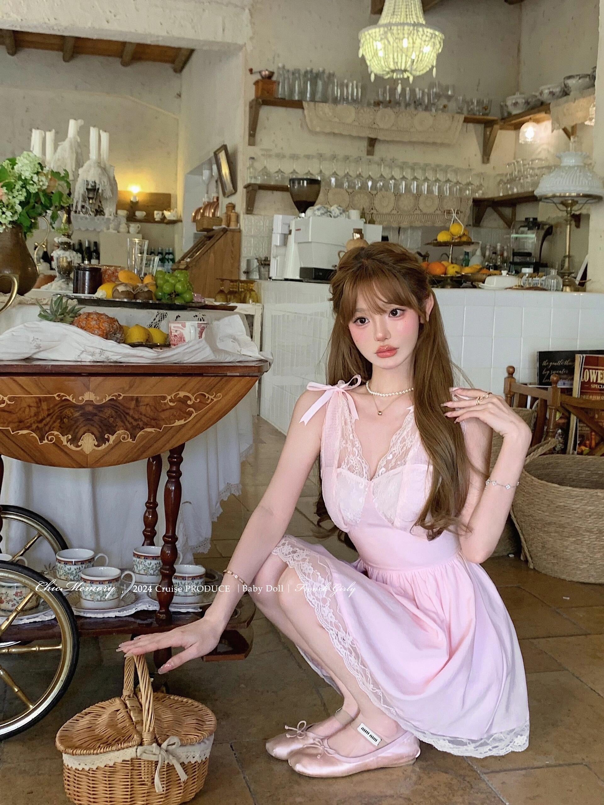 This vintage-inspired baby doll dress is a delicate balance of elegance and cuteness, embodying the charm of coquette core with a soft pastel pink hue. Inspired by classical tea party dresses, it captures the refined grace of Victorian romance while feeling light and effortless.