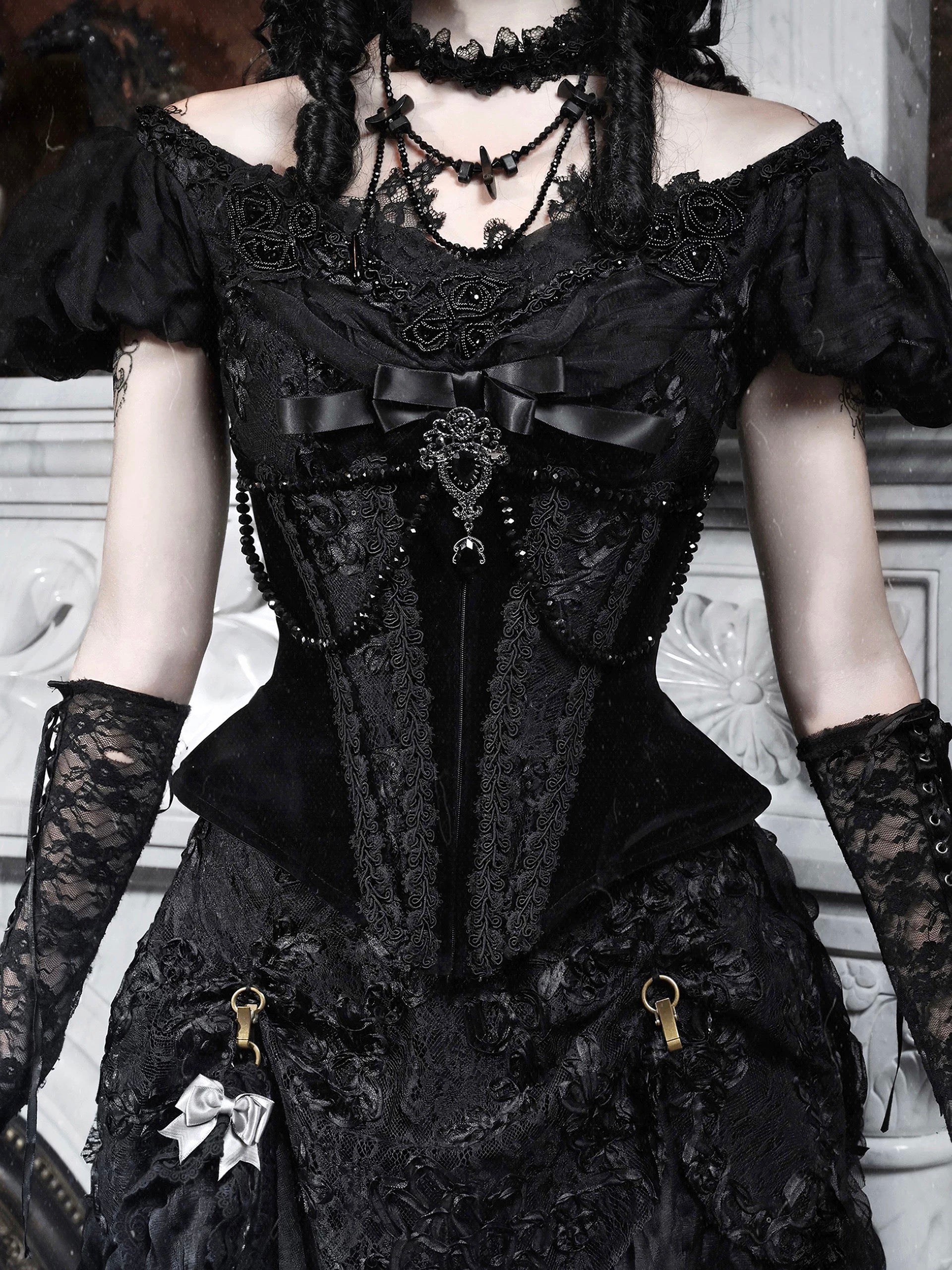 Perfect for styling alone or layered, this corset embodies the timeless allure of gothic couture — elegant, mysterious, and unforgettable.