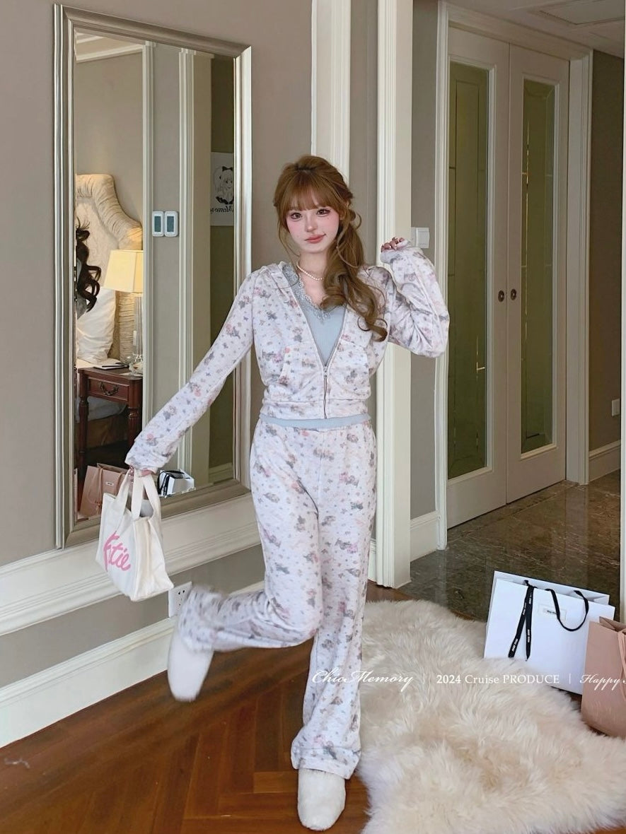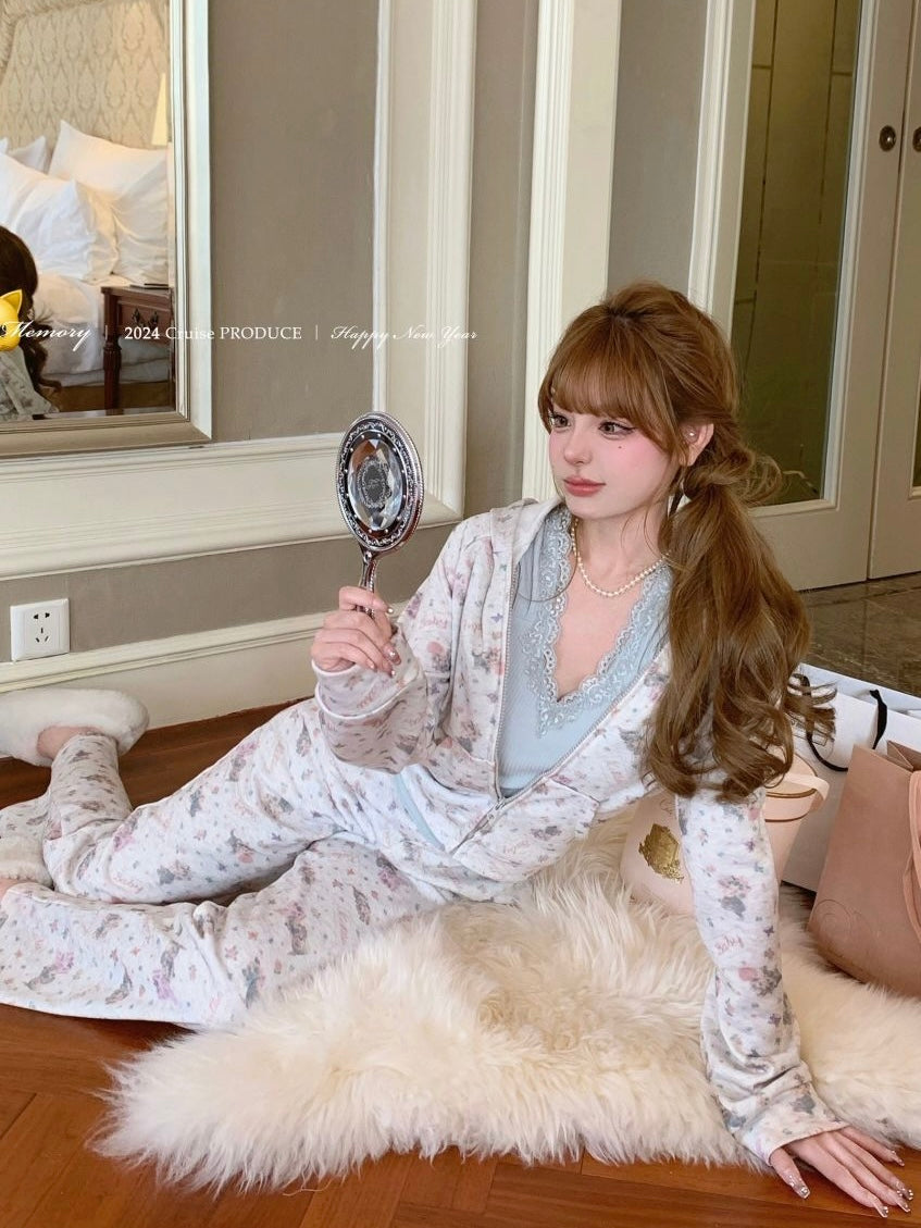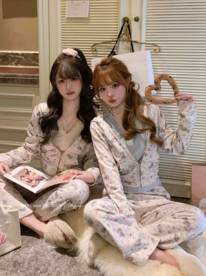 For the soft girl who loves comfort but never sacrifices charm, this adorable cat-print hoodie and sweatpants set is the perfect mix of cozy loungewear and delicate coquette style. Inspired by vintage Japanese prints, the soft gray base color features a subtle textured effect for a more refined, dreamy aesthetic.