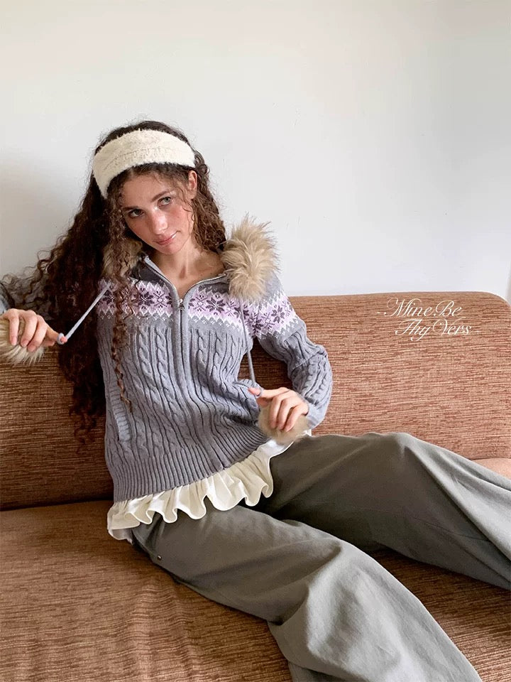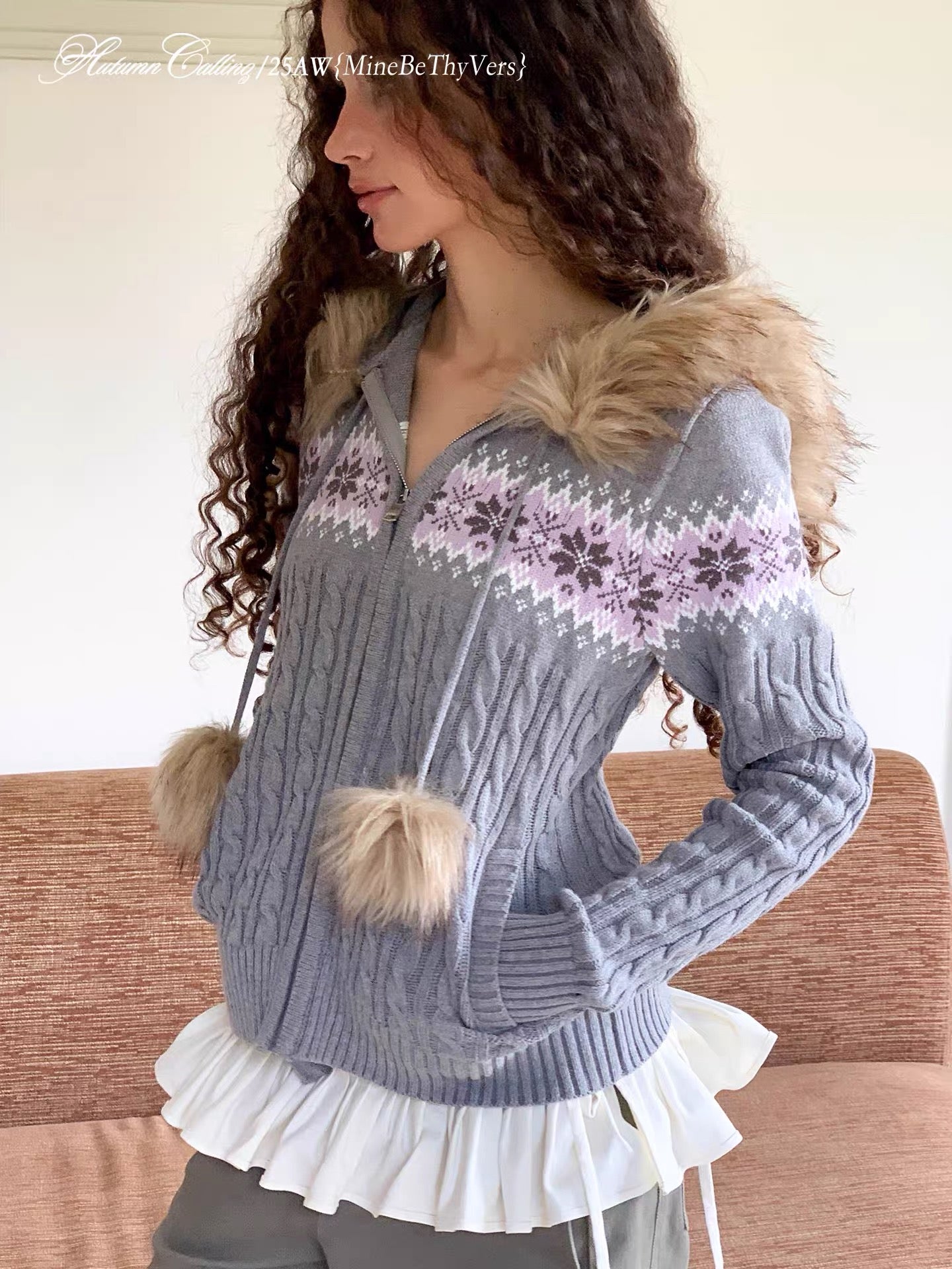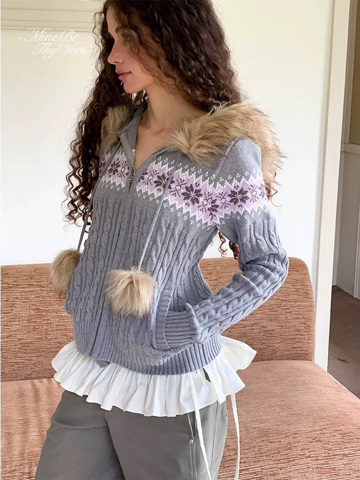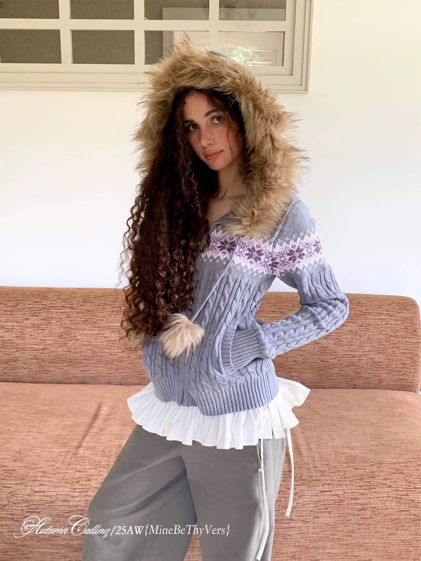 MineBeThyVers Winter Tale Fair Isle Knit Hoodie Faux Fur