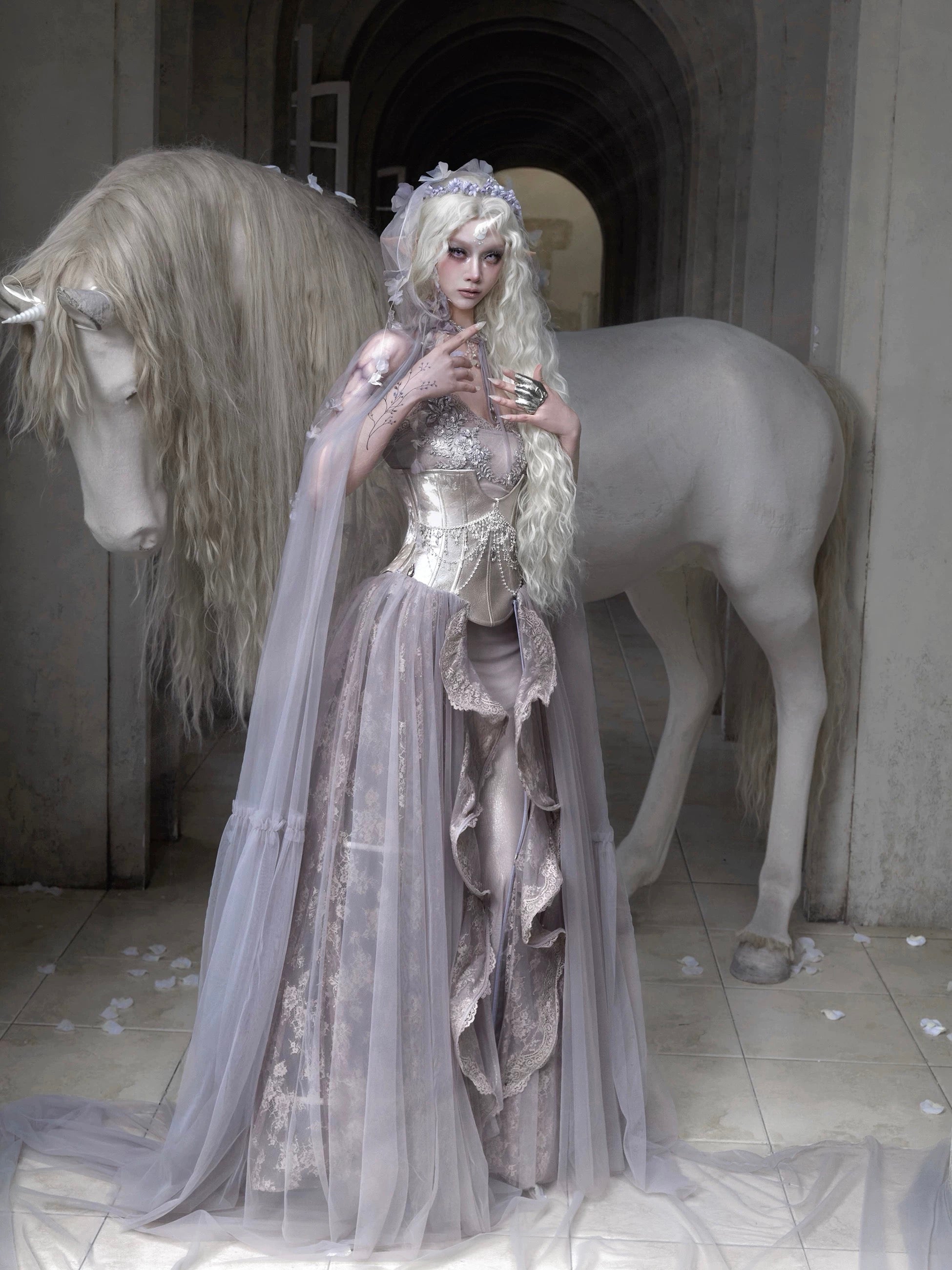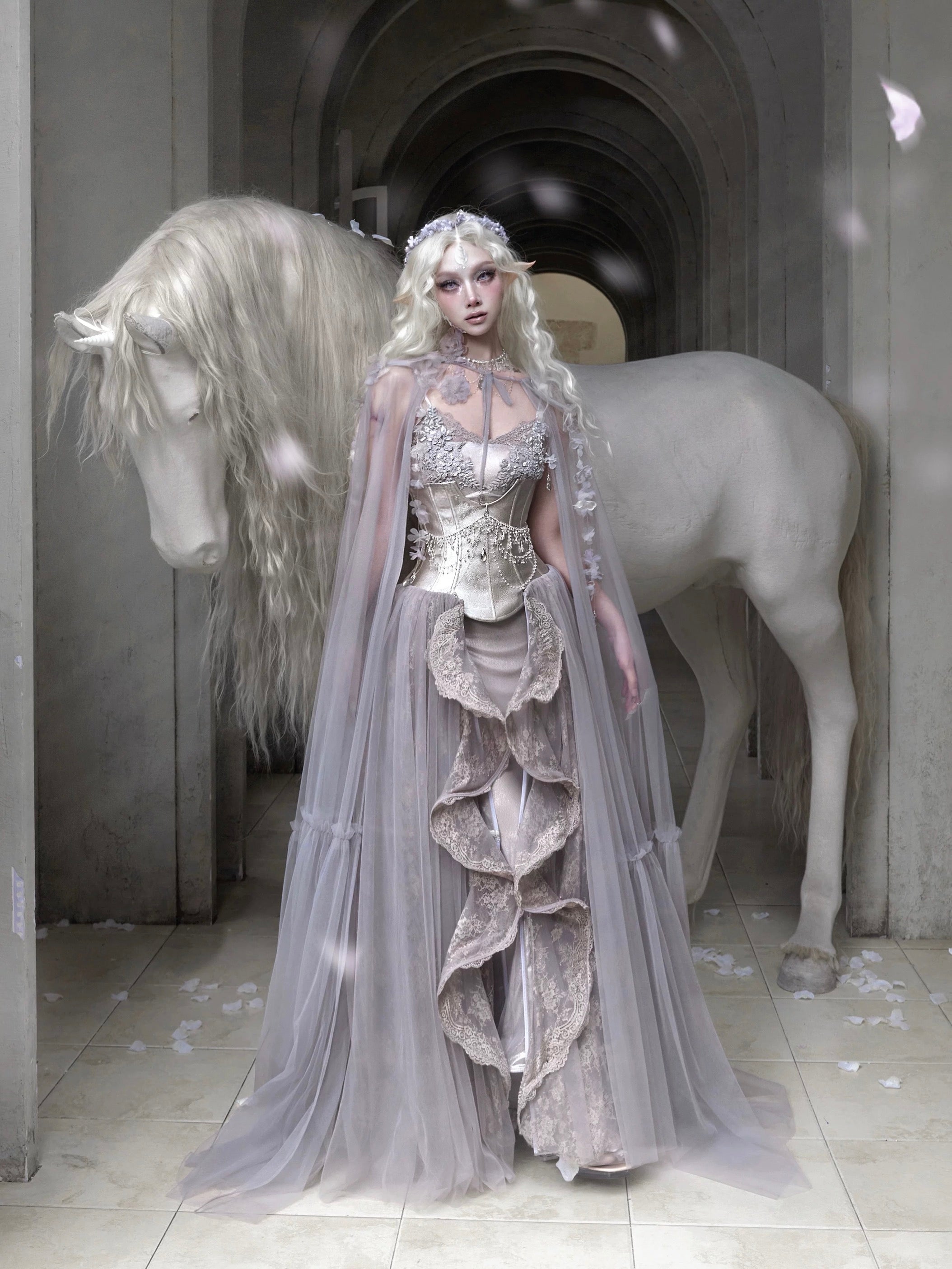 A design that blends gothic fantasy with elven grace.