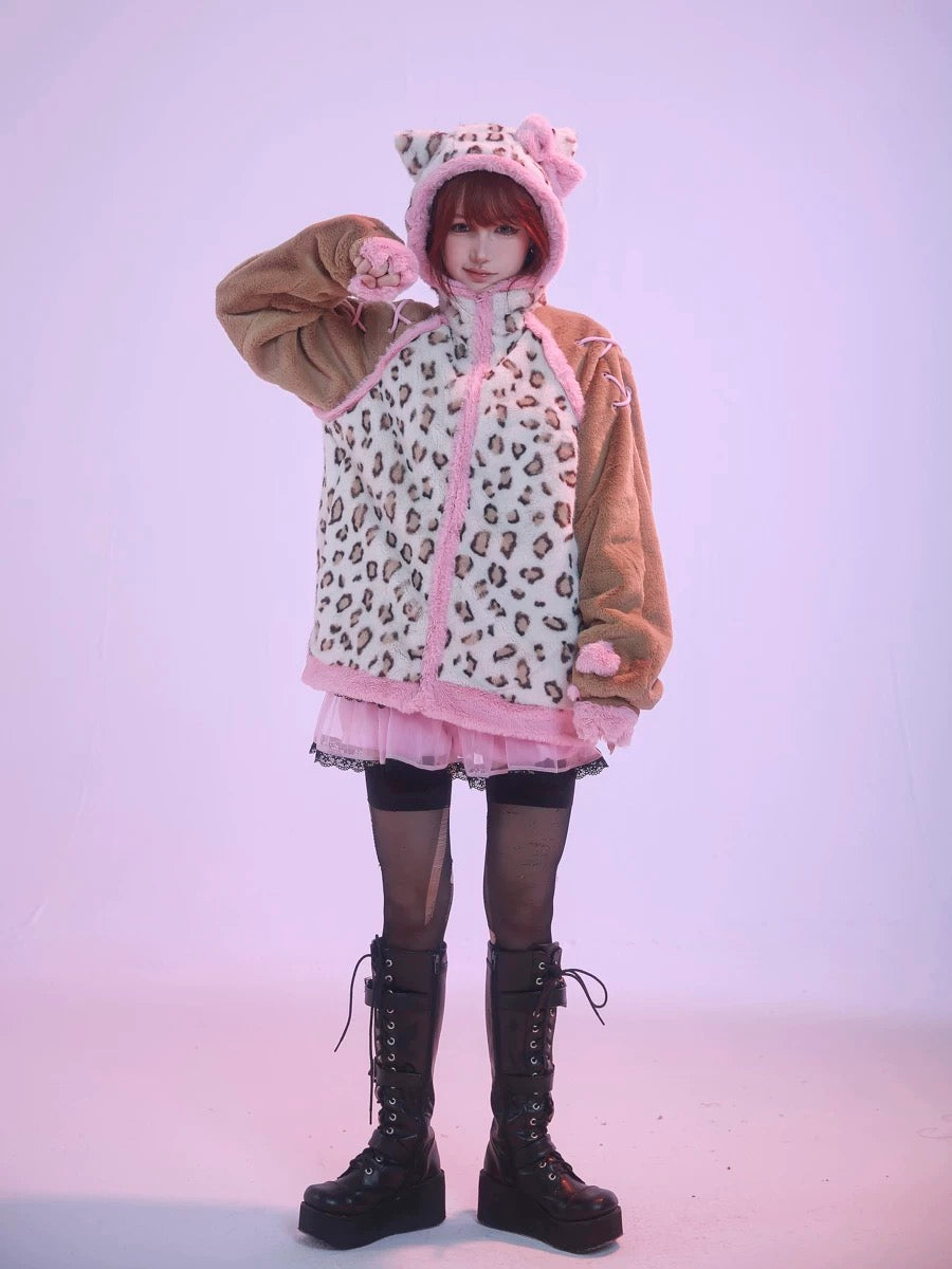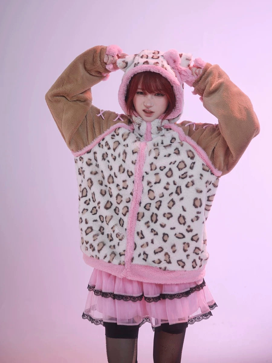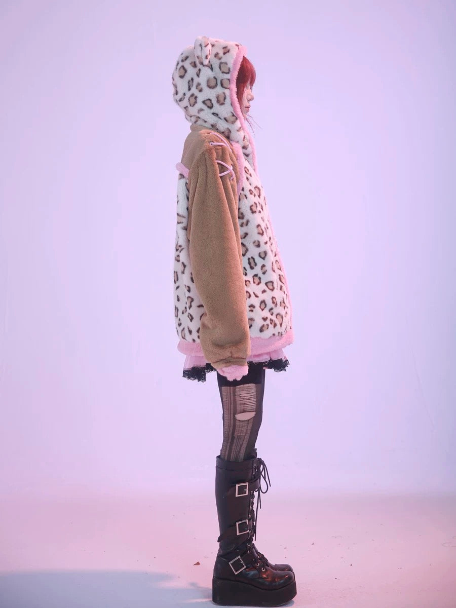 Snuggle up in this kawaii oversized fleece hoodie, perfect for coquette-core lovers! With a soft leopard print, pastel pink details, and cute ear accents, this hoodie blends cozy warmth with dreamy girly charm. Ideal for chilly days, it’s a must-have for adding playful, kawaii vibes to your wardrobe.