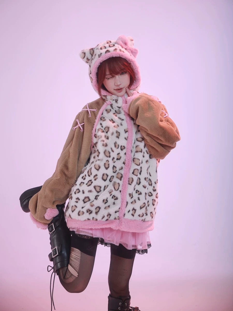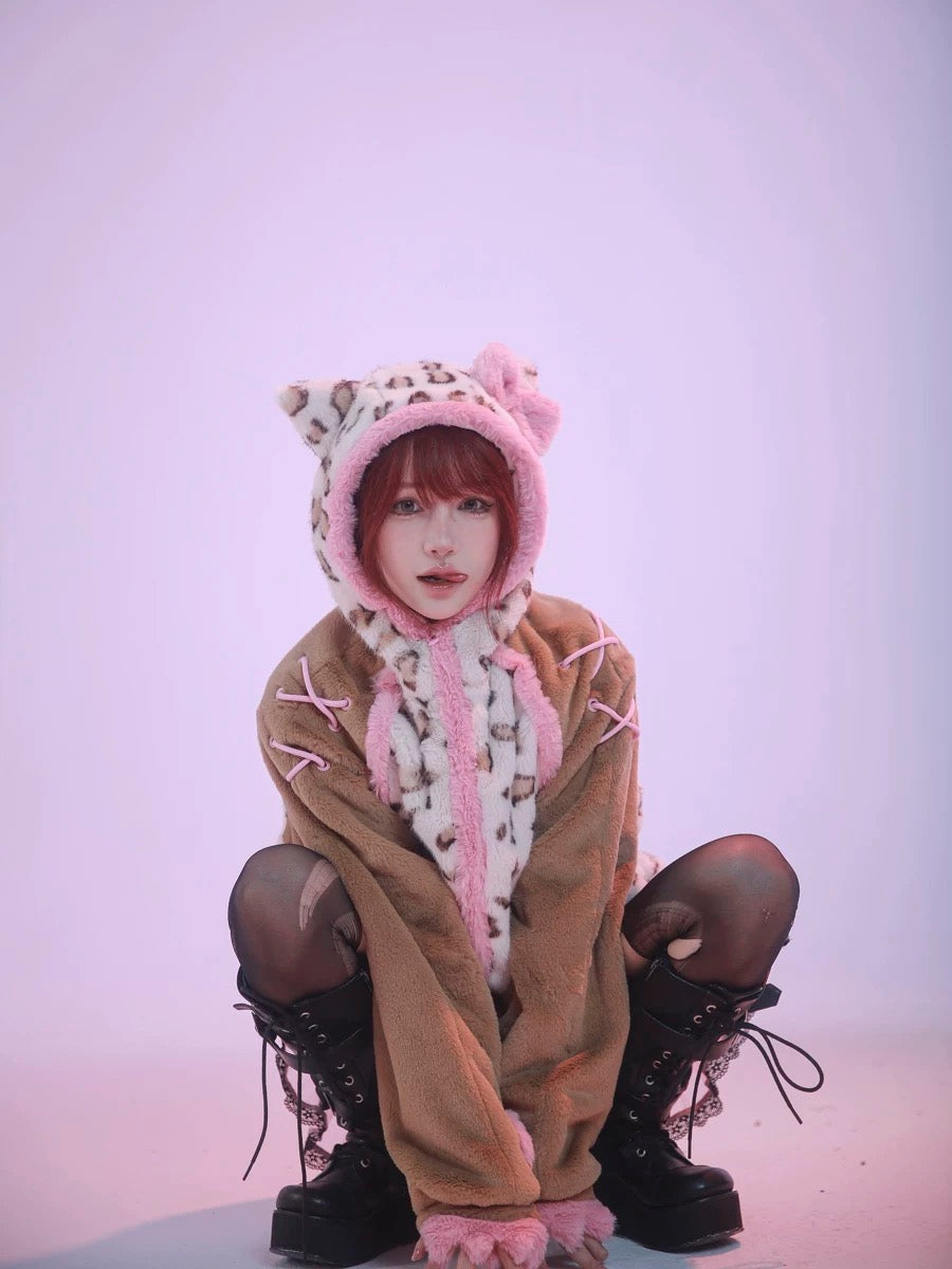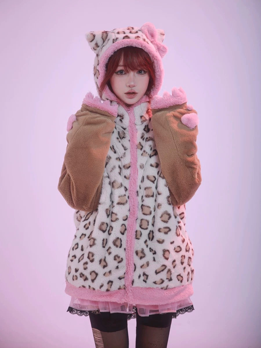 Snuggle up in this kawaii oversized fleece hoodie, perfect for coquette-core lovers! With a soft leopard print, pastel pink details, and cute ear accents, this hoodie blends cozy warmth with dreamy girly charm. Ideal for chilly days, it’s a must-have for adding playful, kawaii vibes to your wardrobe.