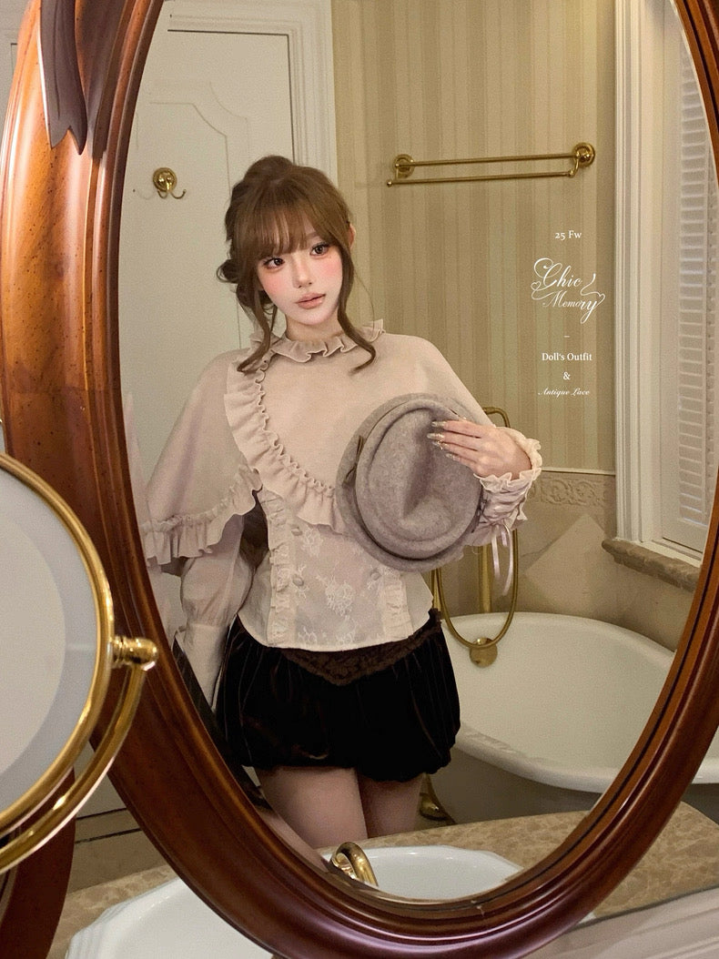 A dainty ruffle-collared cape inspired by vintage princess stories and winter afternoon teas ♡
