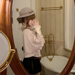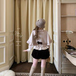 The asymmetric ruffle trim and satin bow on the back add a sweet yet elegant charm — perfect for pairing with lace blouses, puff skirts, or velvet shorts for a dreamy, doll-like look.