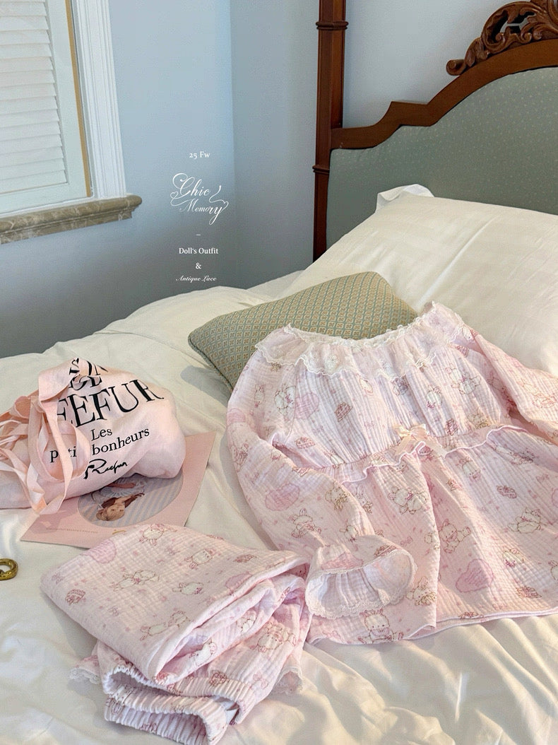Original Pattern design collaboration with the artist. Made from 100% cotton with a triple-gauze weave, this set feels fluffy, breathable, and gently warm — perfect for cozy mornings or slow evenings at home.
