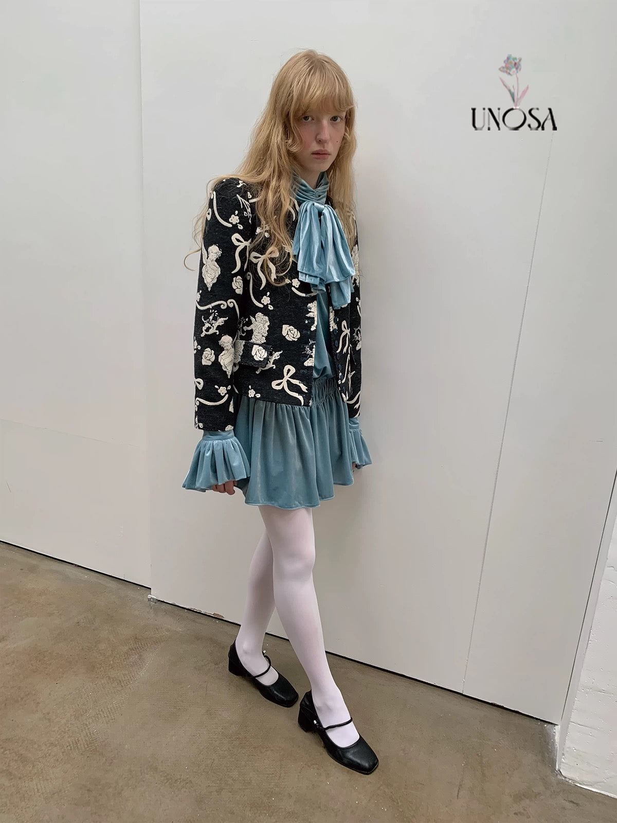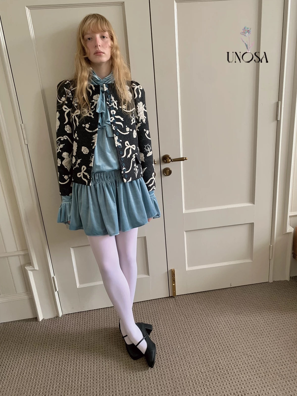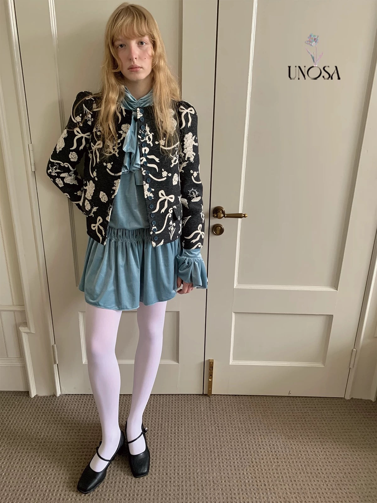 Perfect for layering over pastel dresses or skirts, it captures the spirit of a dreamer wandering through an old castle garden.