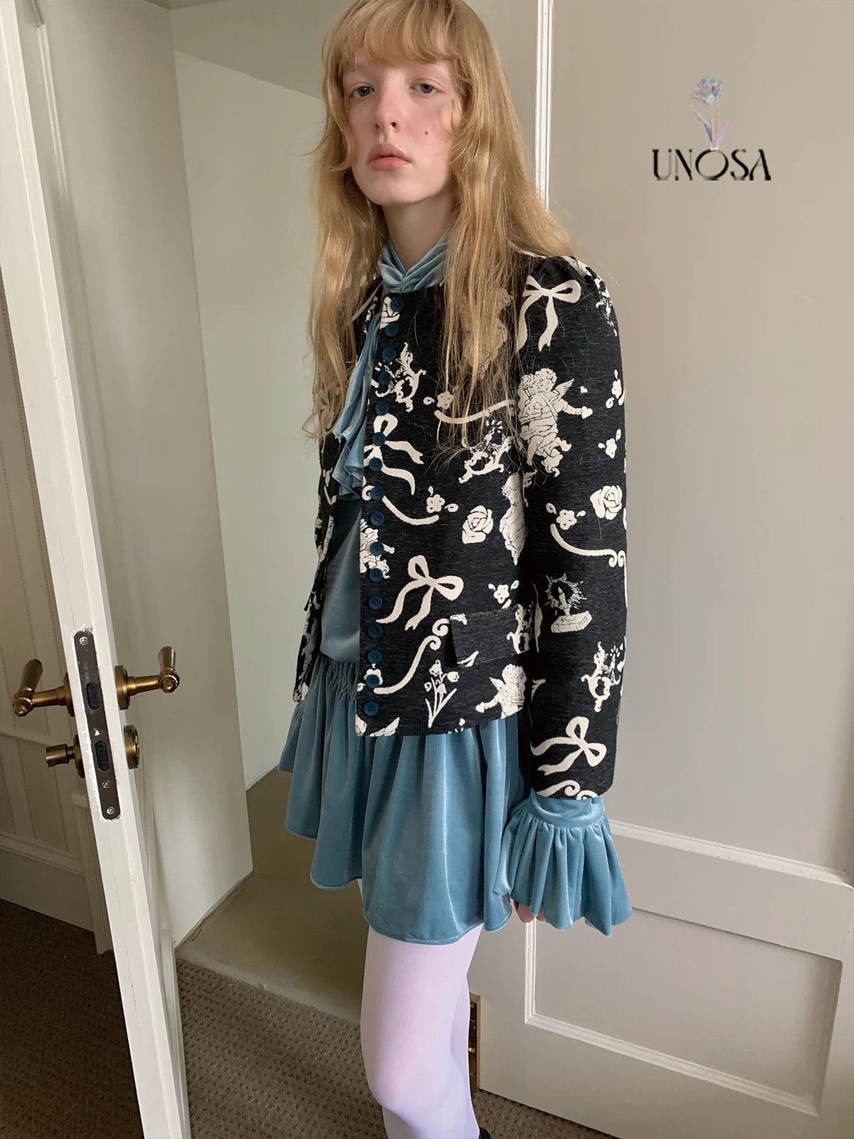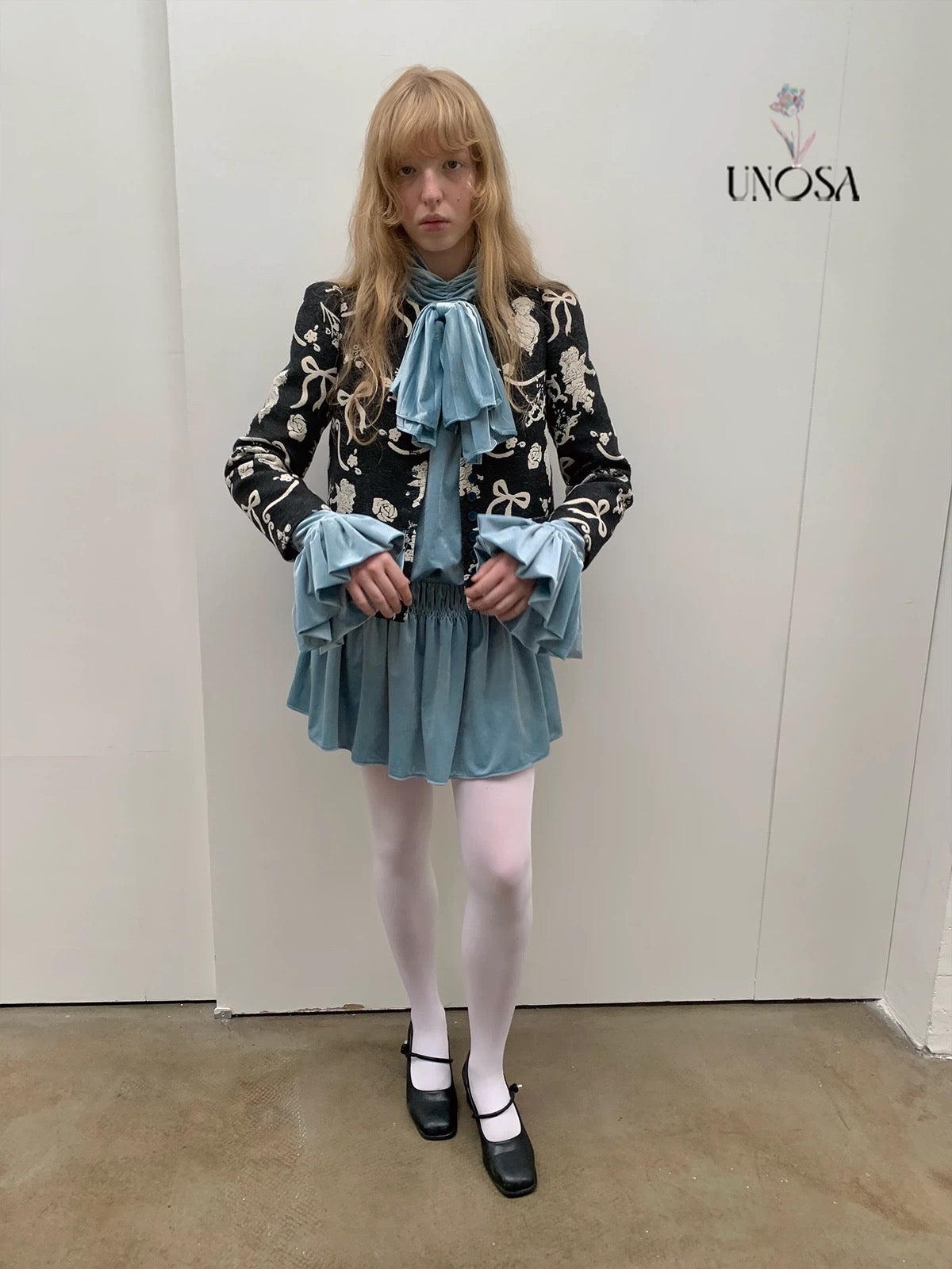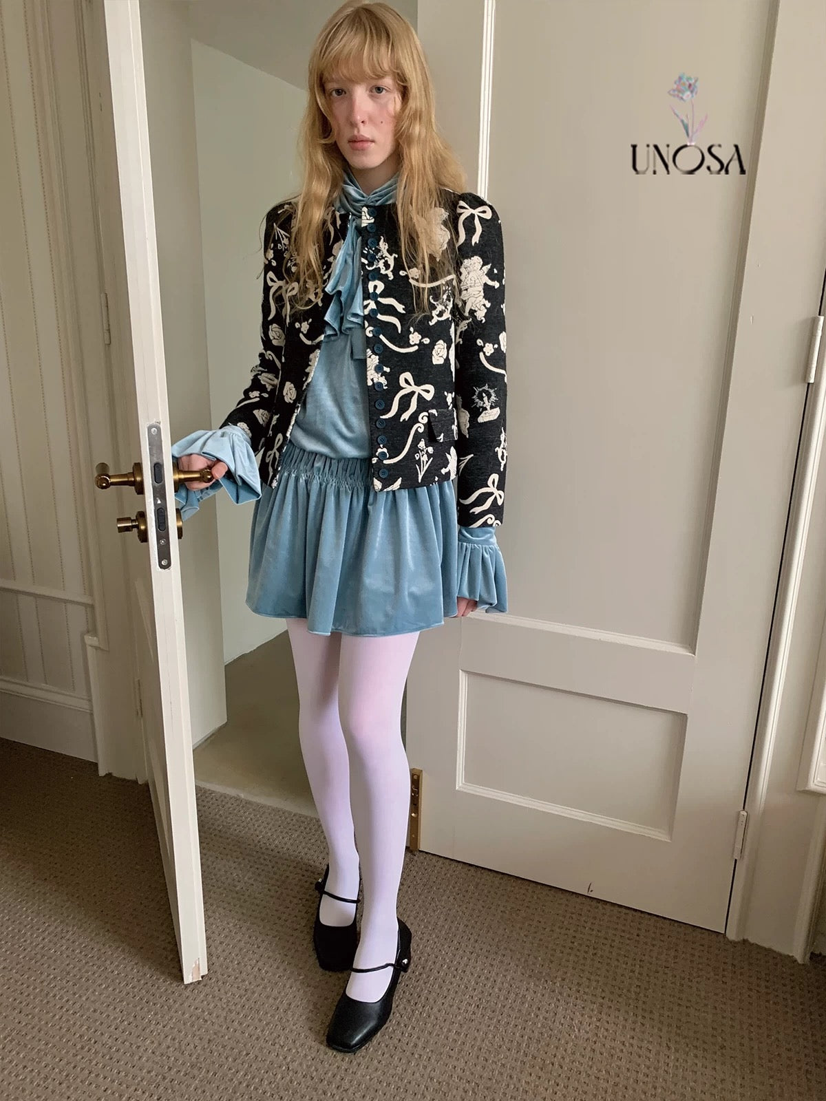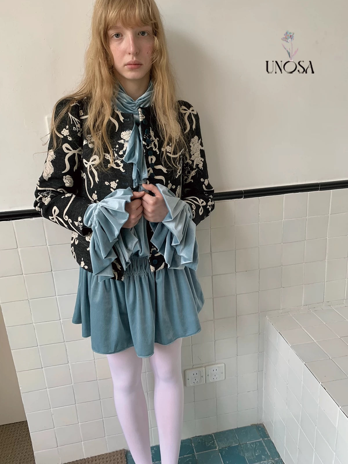 Perfect for layering over pastel dresses or skirts, it captures the spirit of a dreamer wandering through an old castle garden.
