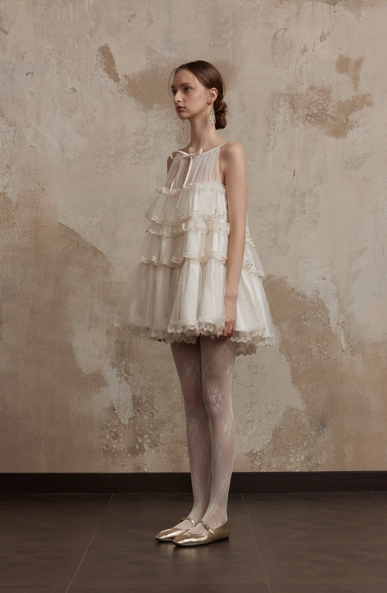 Fa Sogno White Mélodie de Tulle Bellet Ruffle Dress