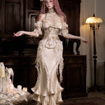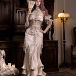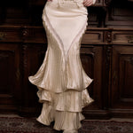 This mermaid-style skirt is crafted in a gentle ivory hue, blending classical elegance with romantic volume. Flowing pleats cascade down in layered waves, echoing the curves of antique sculpture.