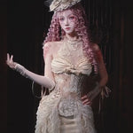 Featuring intricate sheer lace inserts on both sides and a soft satin base, it captures the warmth of Venus’ glow. The upper waist is carefully tailored to highlight graceful proportions, while the layered lotus petal hem sways like a quiet melody with every step.