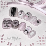 𖥔 ♡ Each nail is carefully designed, layered, and decorated with charms, lace, and hand-drawn motifs.