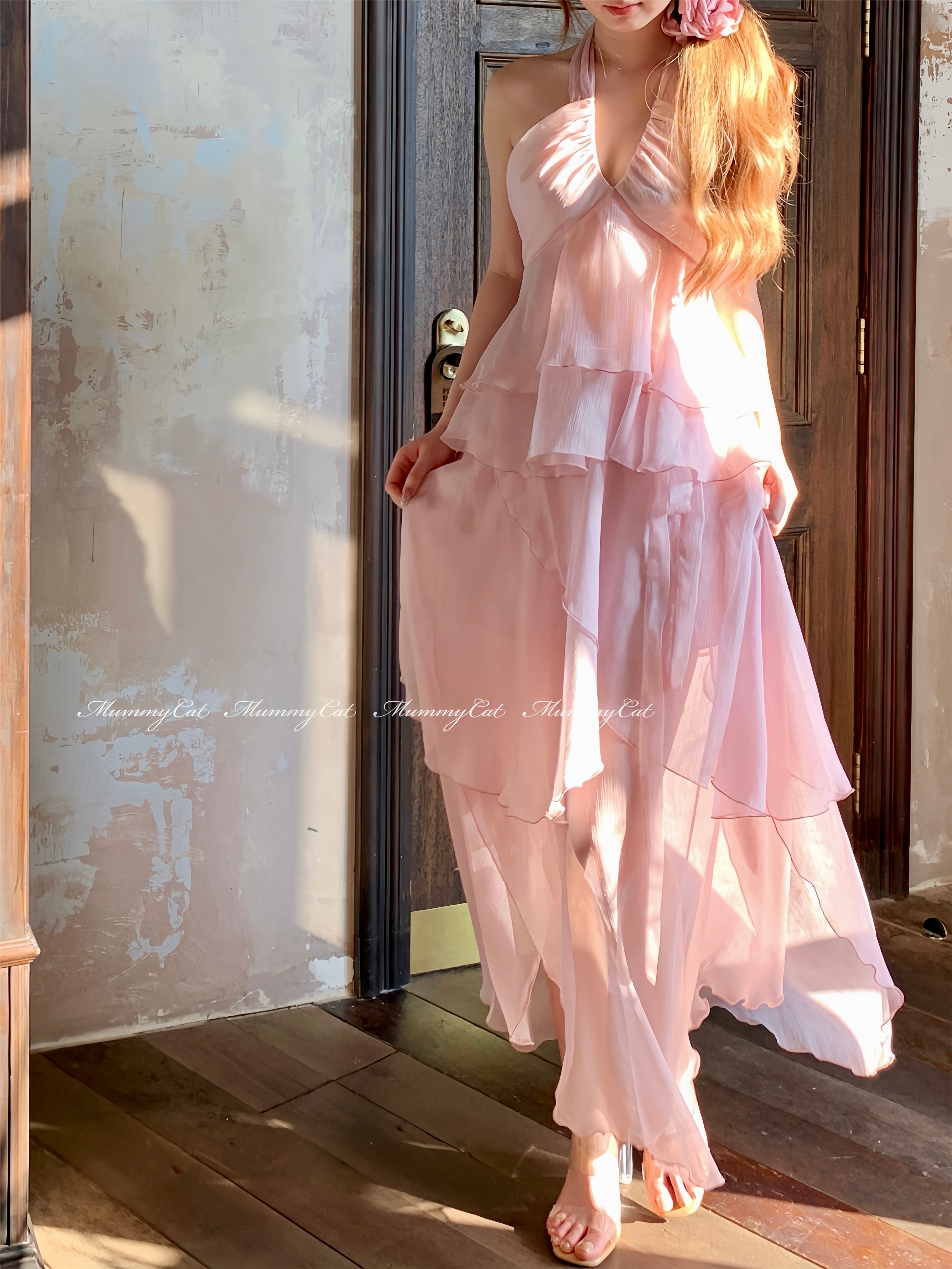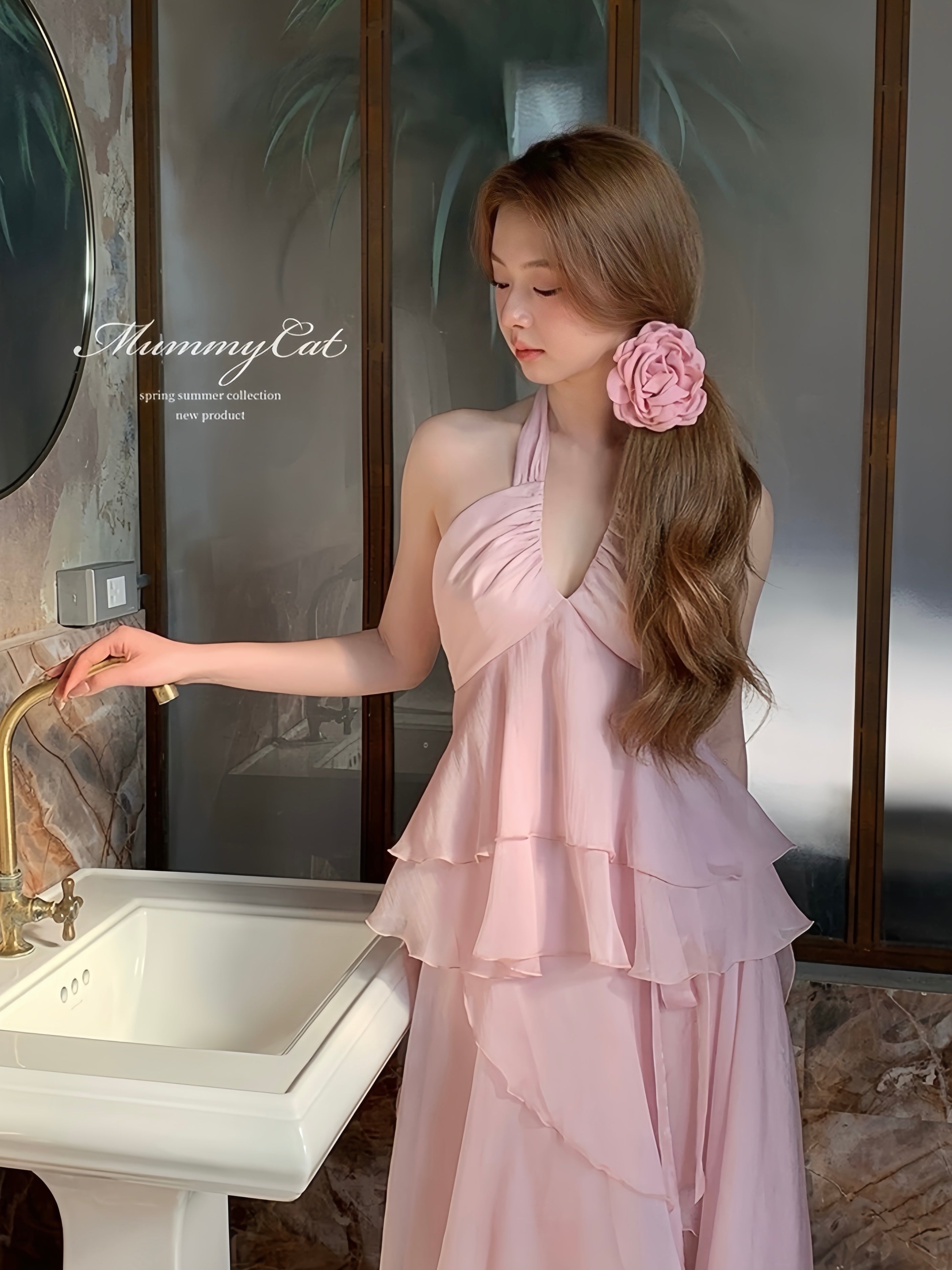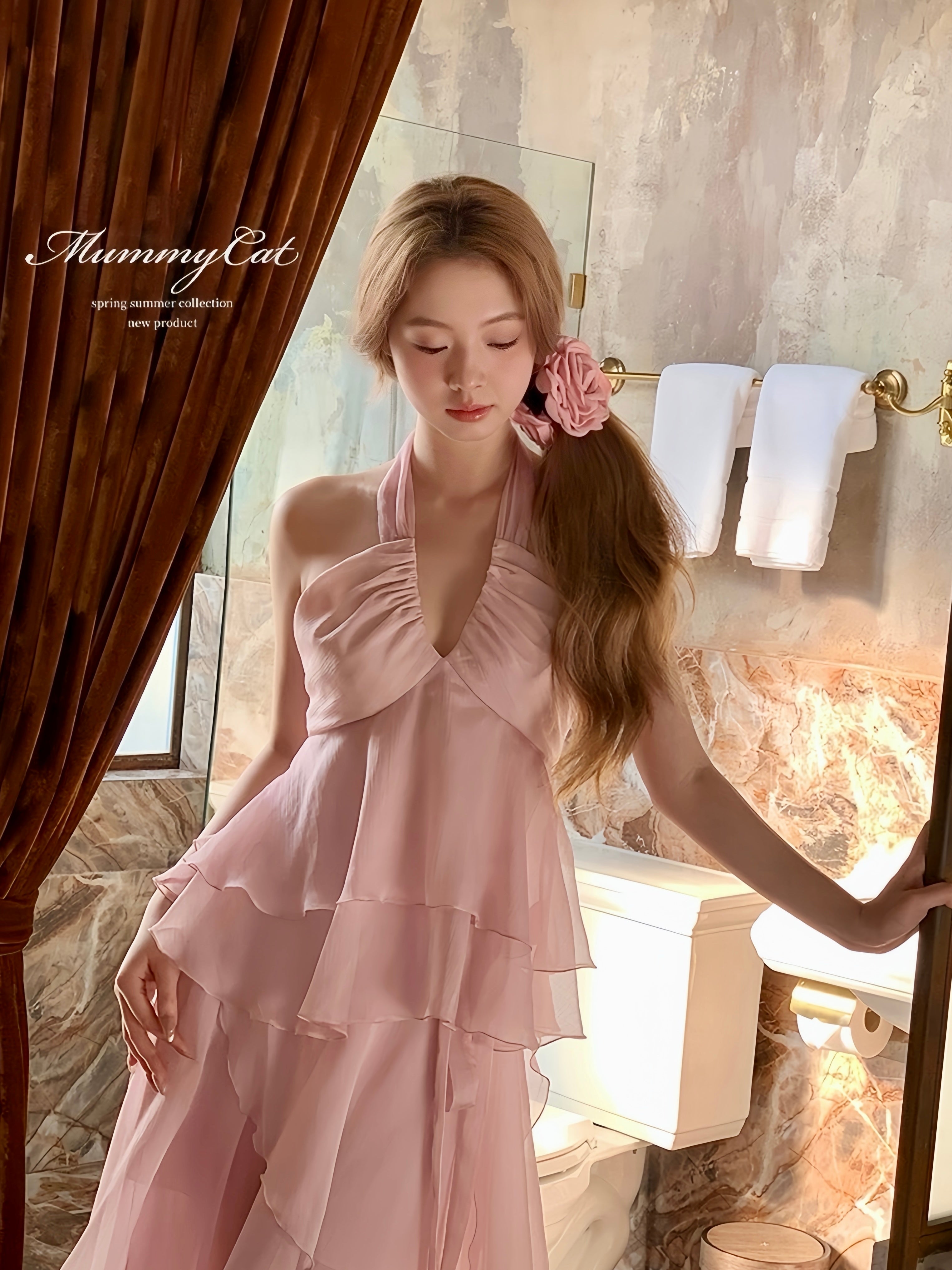 Experience the ethereal beauty of spring with the [Mummy Cat] Spring Sakura Romantic Dress Set. Lightweight and breathable, this two-piece set allows the Sakura petal layers to gracefully sway as you move. In a stunning soft Sakura pink, it's perfect for spring wear, a holiday look, or even a bridal dance for a truly enchanting and elegant joy.