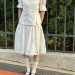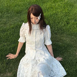 Made from a cotton-rich blend, it’s light and breathable—perfect for sunny afternoon strolls or tea dates with friends. Every pleat and lace trim whispers sweetness and nostalgia, just like a scene from a fairy tale.