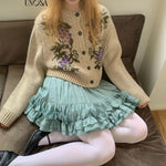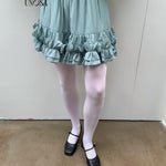 Style keywords: pastel mini skirt · soft girl aesthetic · romantic ruffle hem · coquette outfit · vintage pastel fashion