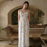 Ses motifs floraux délicats, encadrés de fins carreaux pastel, se marient à des fleurs cousues main comme des boutons de rose au réveil. Elle évoque les jardins paisibles et les terrasses baignées de lumière.