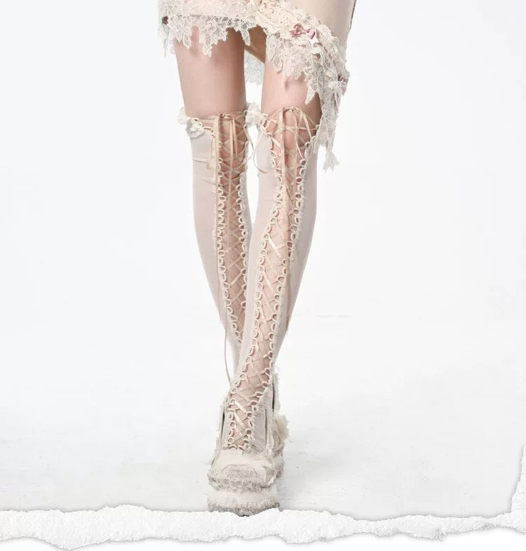 [Blood Supply] Venus Lace-up Sheer Over Knee stockings