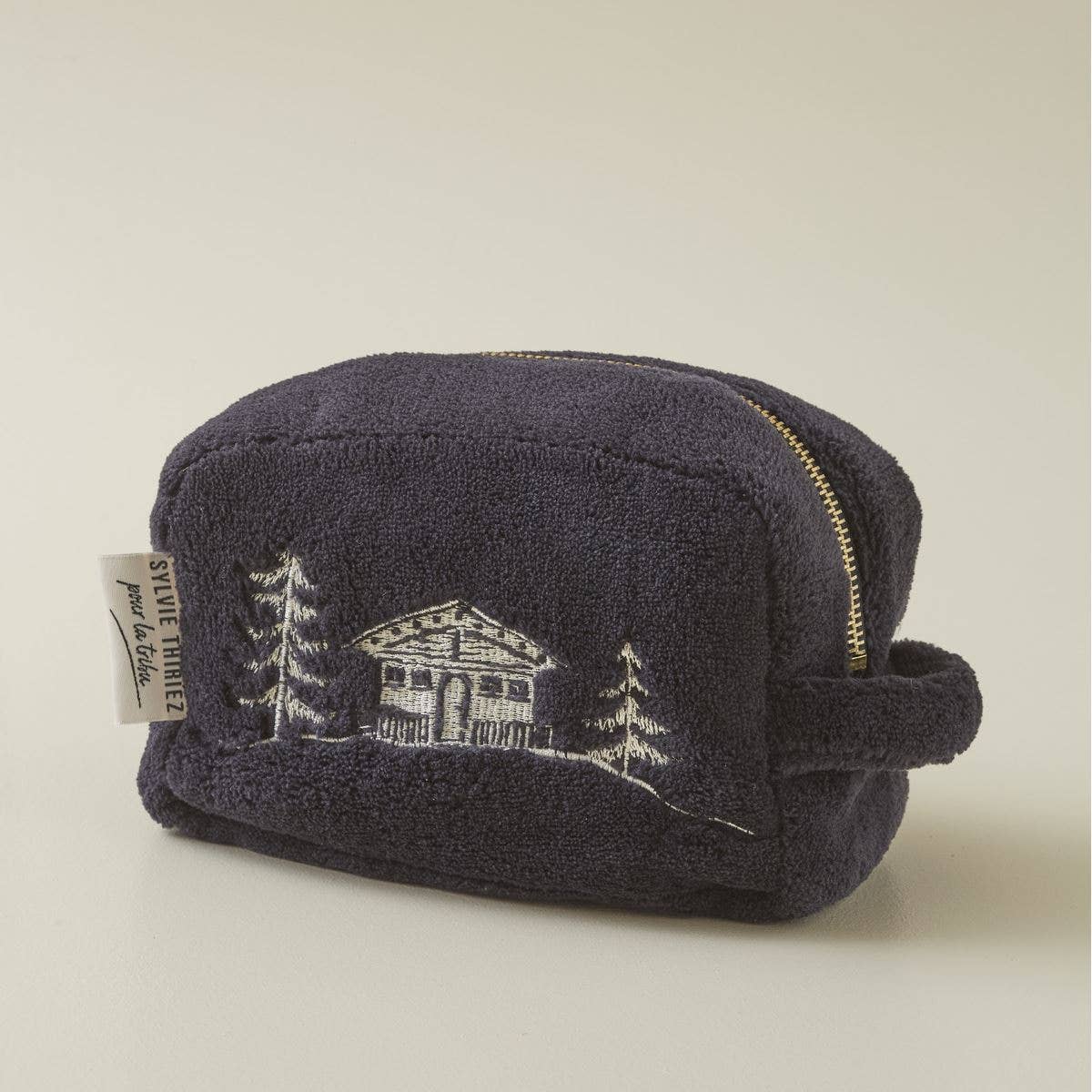 “Chalet d’alpage” Black Velvet Fleece Pouch with Zipper and Handle Perfect for use as a toiletry bag or a pencil case.